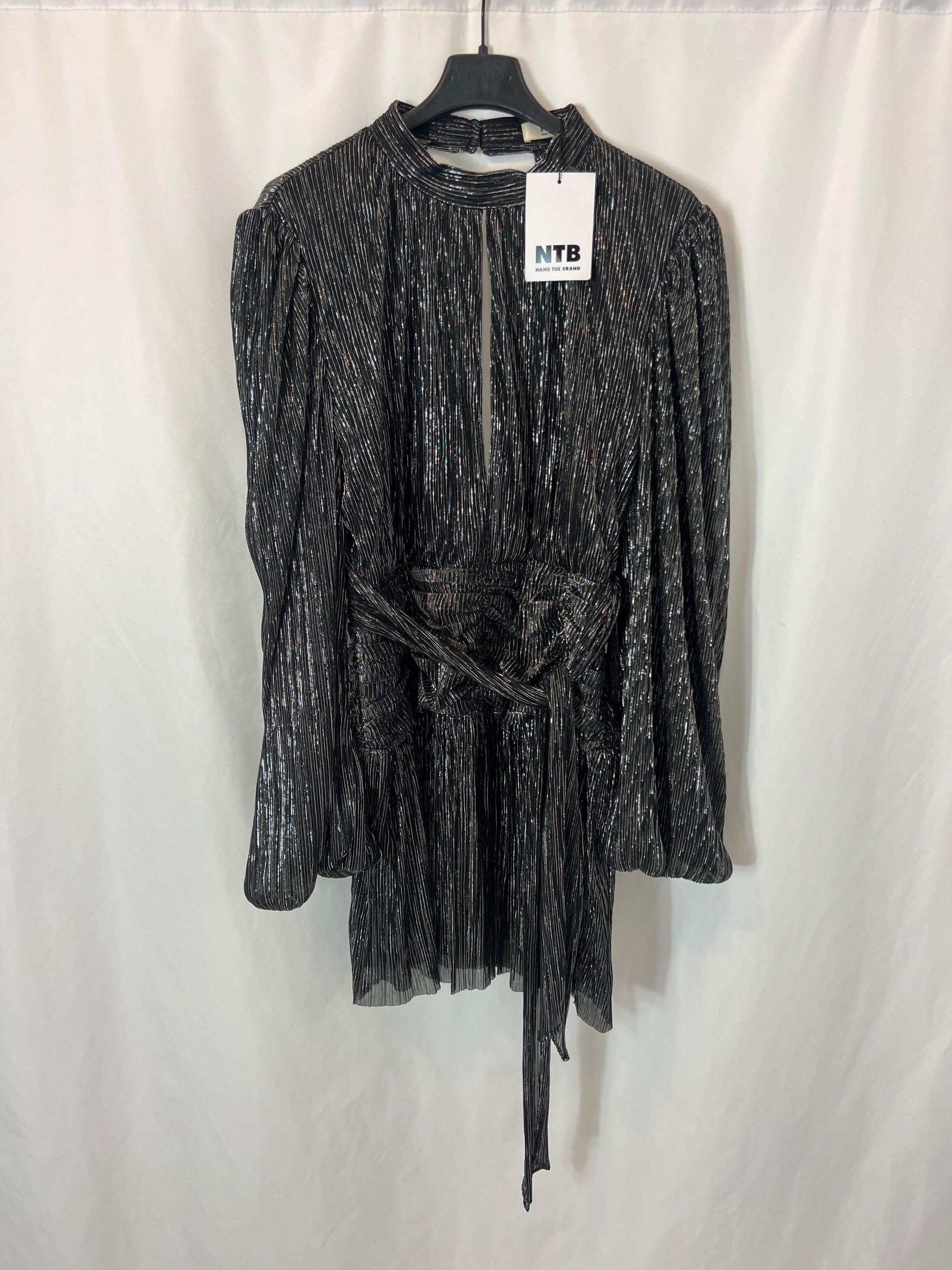 NEW WITH TAG. Short pleated dress with shiny threads.