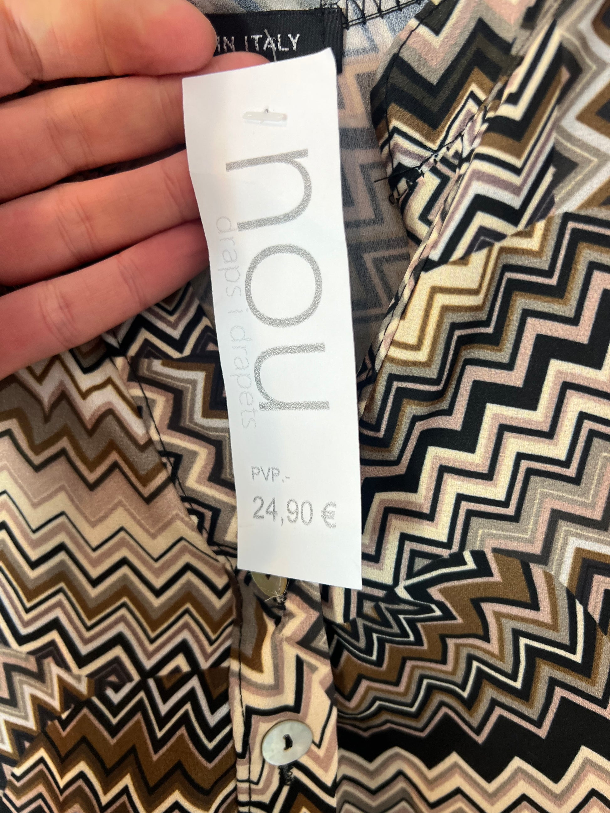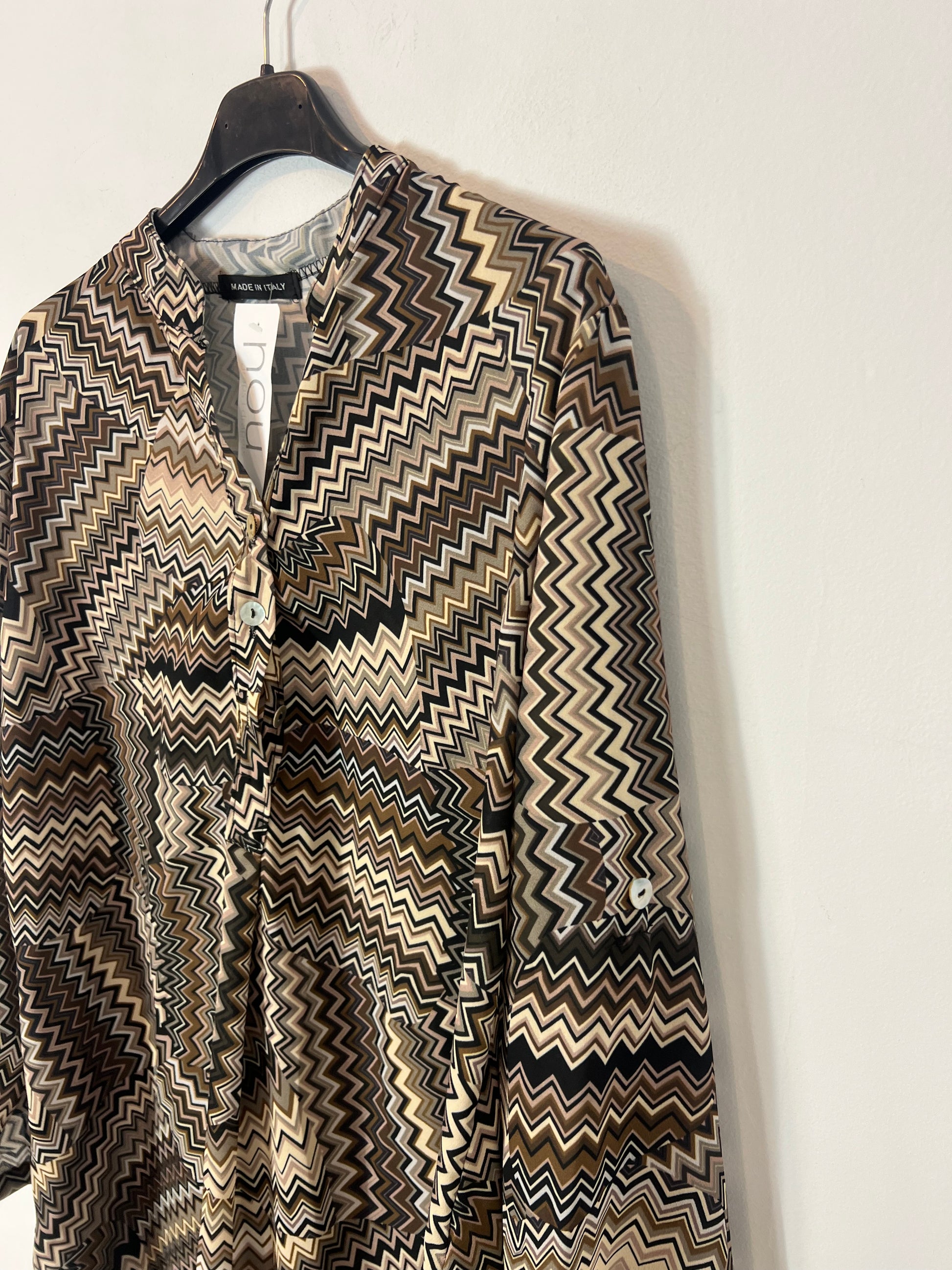 NEW WITH TAG. Flowy brown print blouse. Length 74 cm.