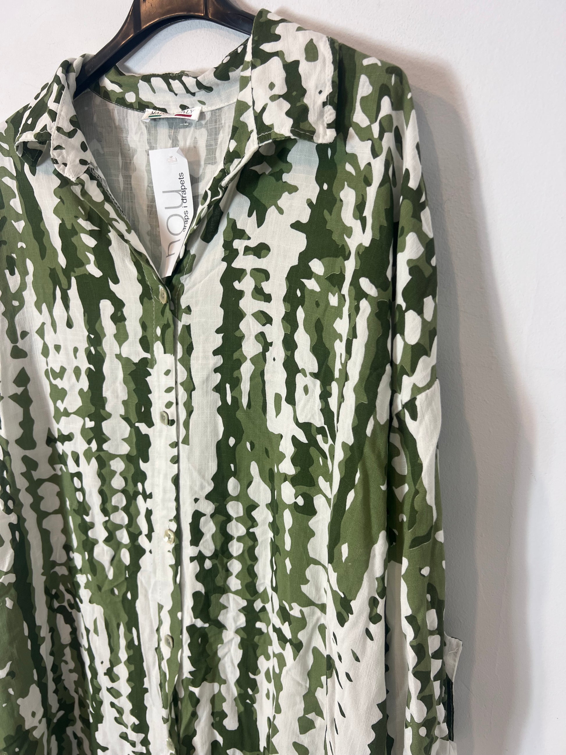 NEW WITH TAG. Green printed shirt dress. Length 109 cm.
