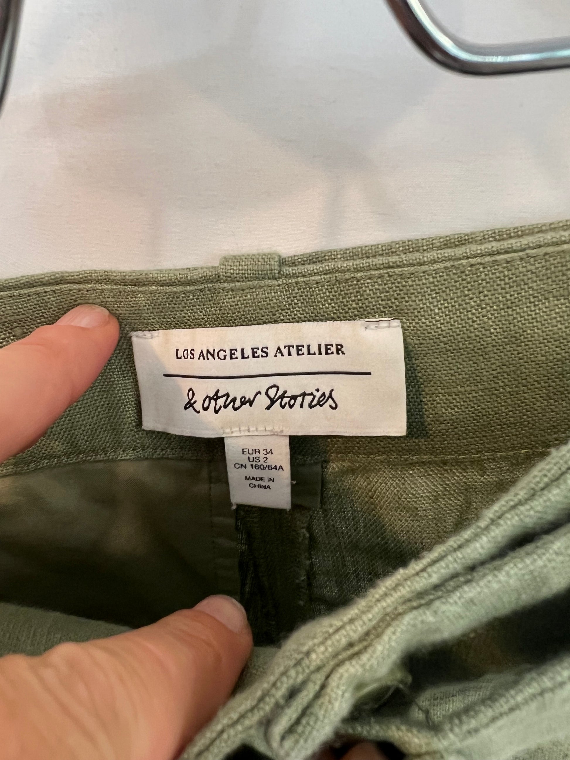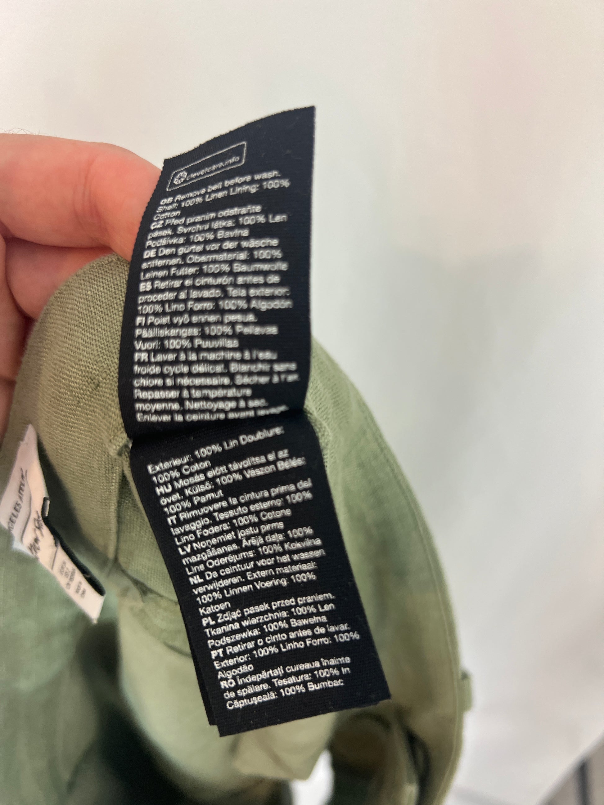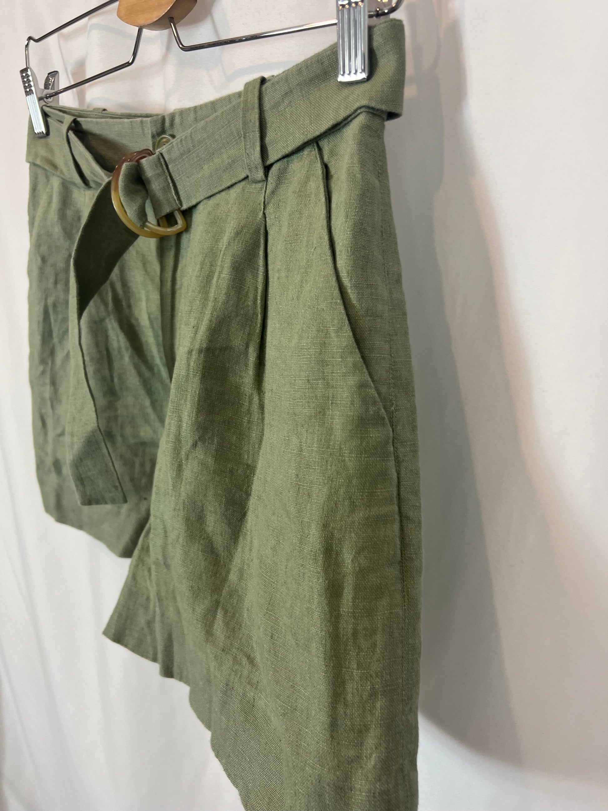 Bermuda verde lino con cinturón. Cibtura 35cm, largo 41cm