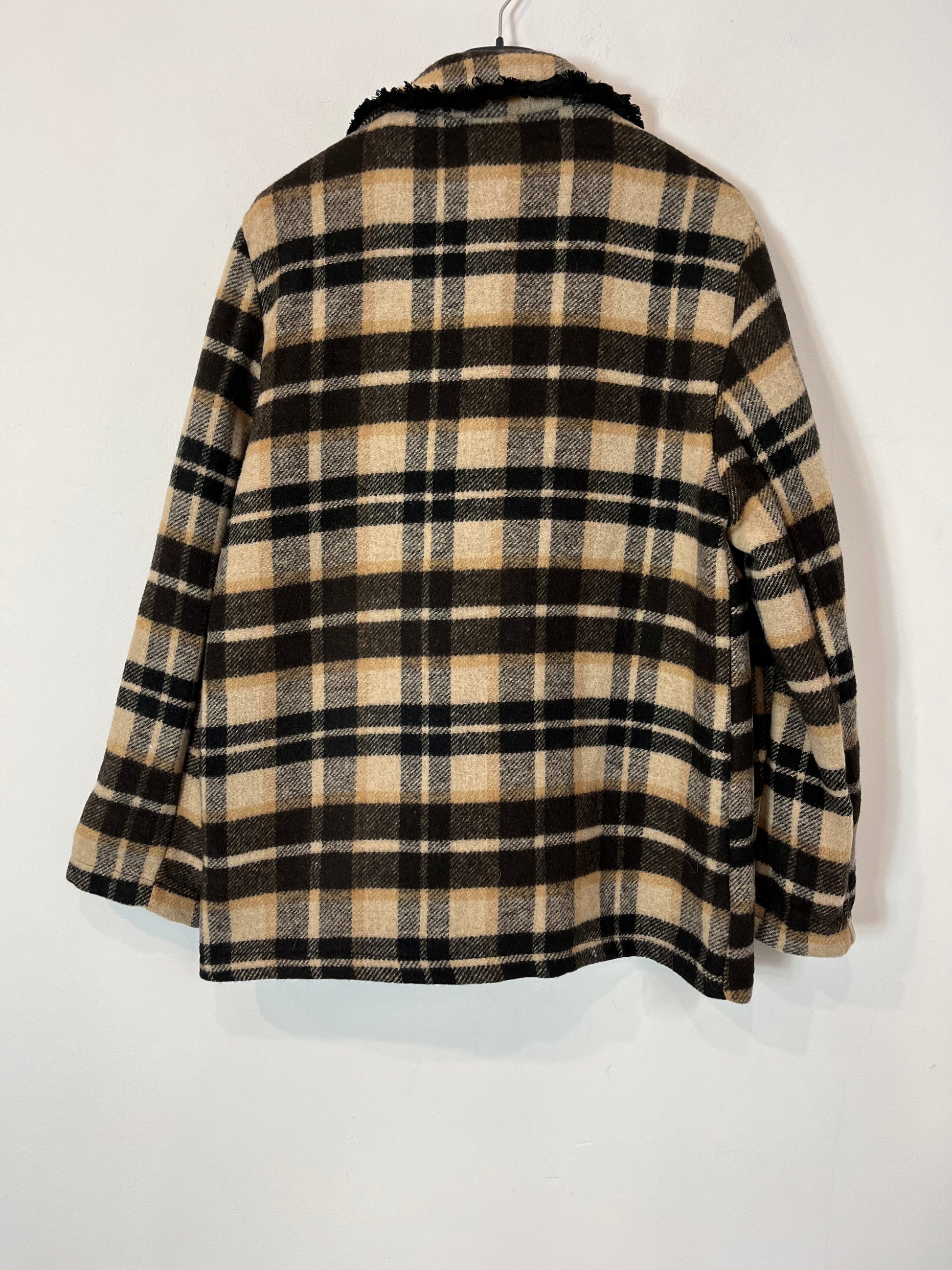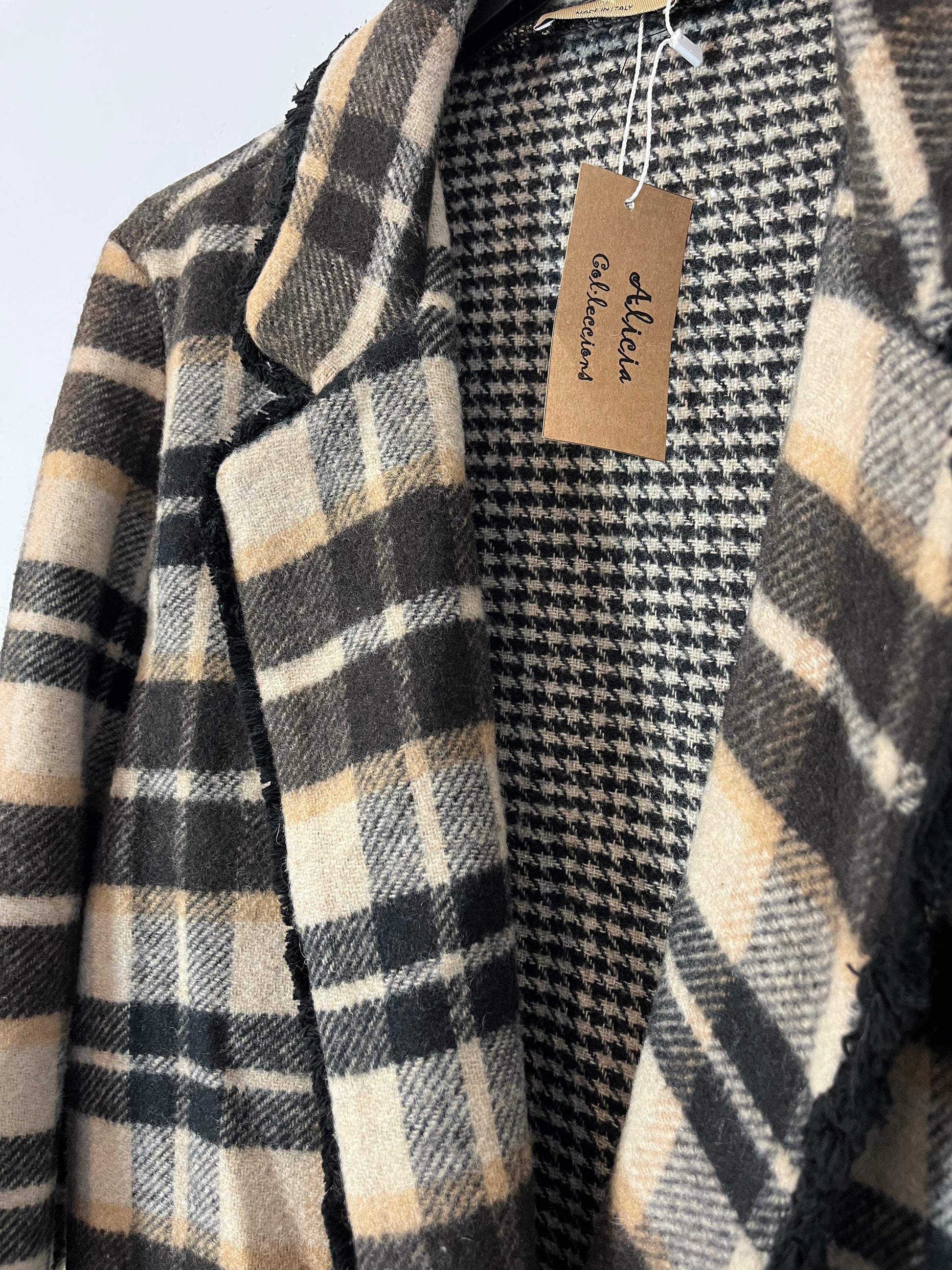 NUEVO CON ETIQUETA.OTRAS. Blazer cuadros con lana marones. Largo cm.
