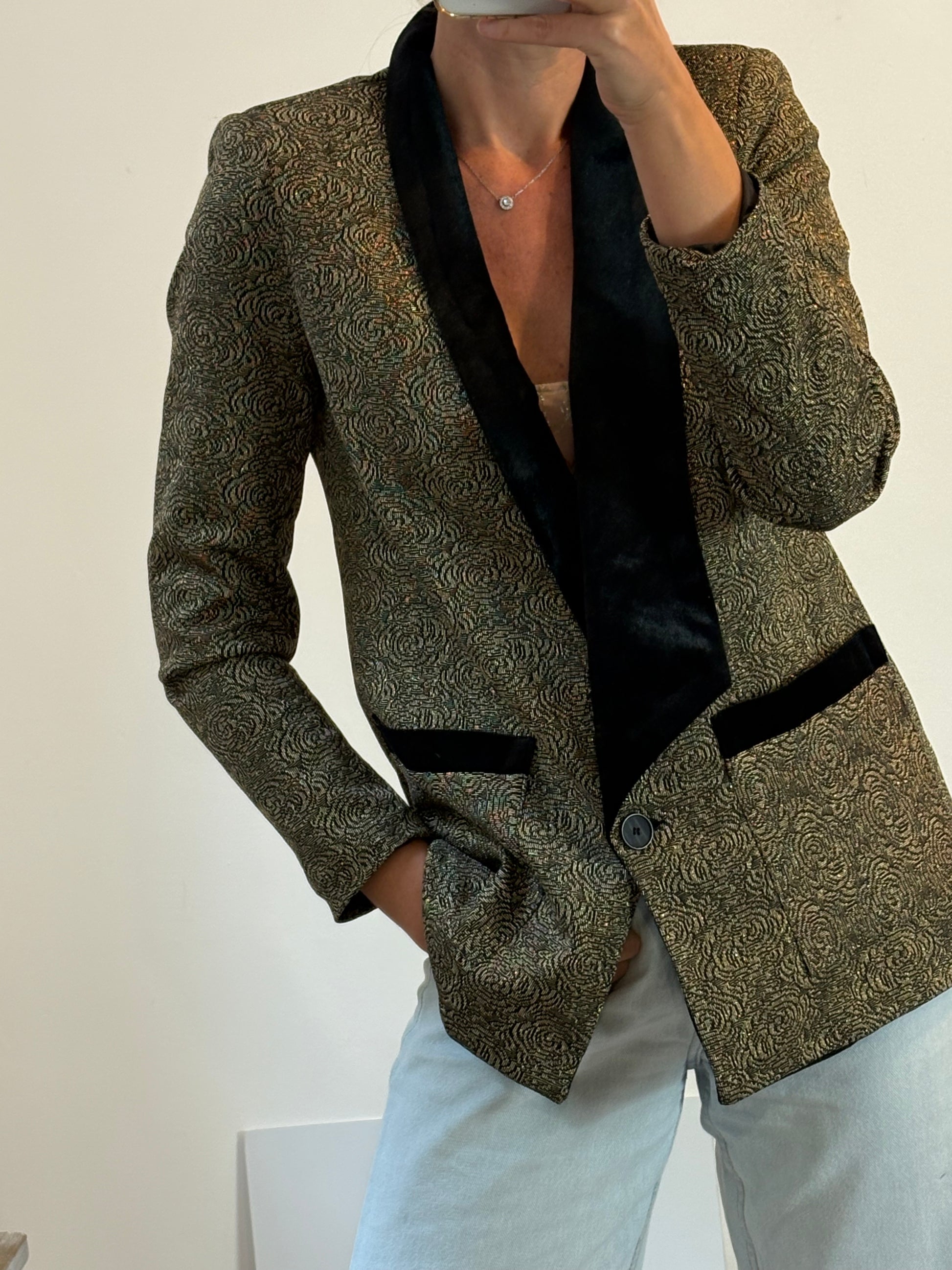 Blazer hilos dorados solapa en terciopelo.Espalda 52 cm, largo 73 cm/solapas asimétricas
