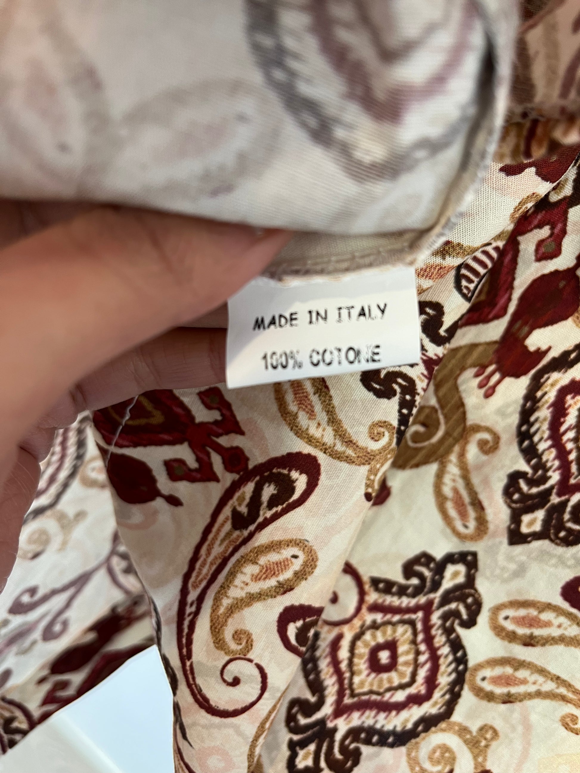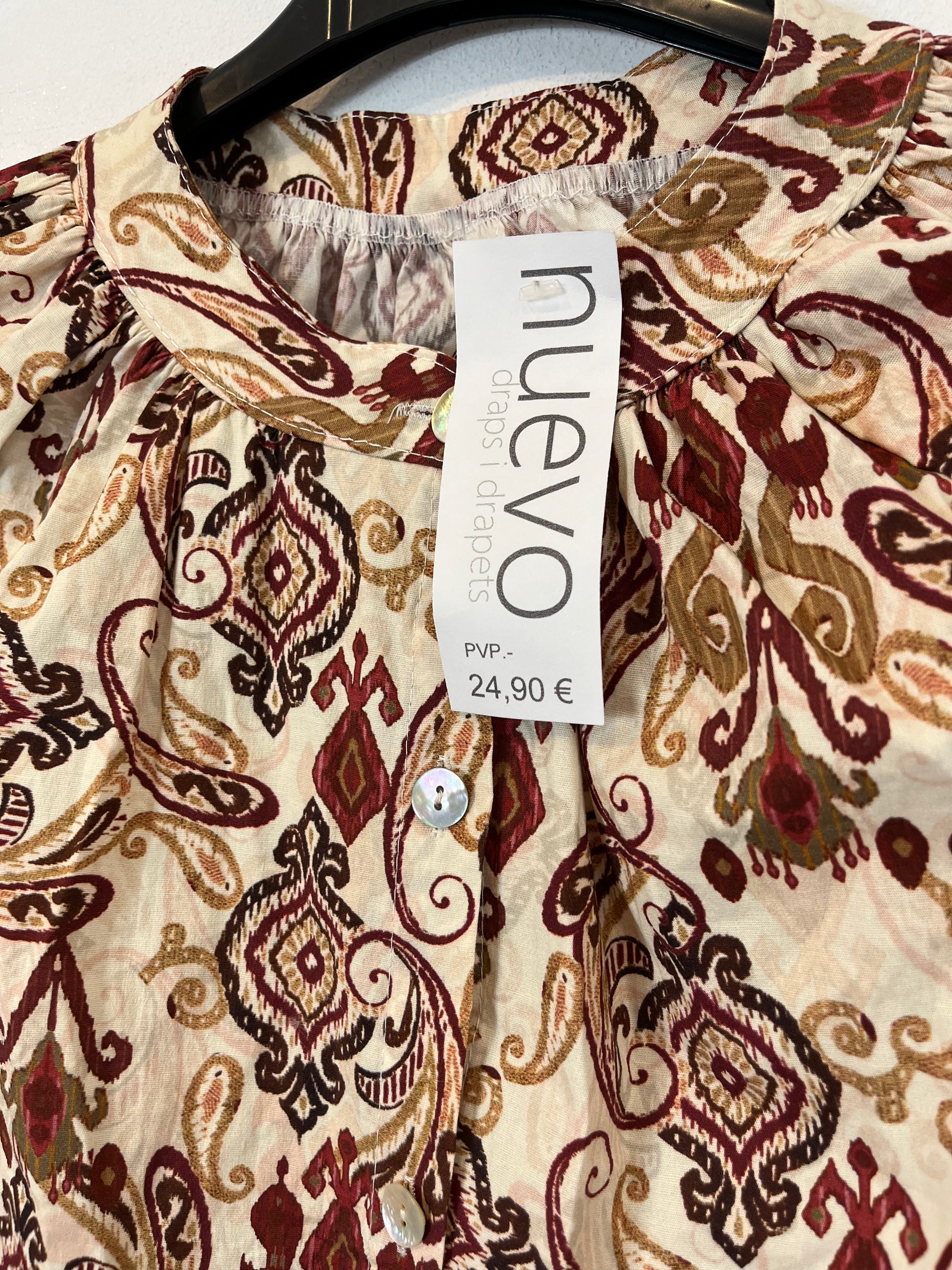 NUEVO CON ETIQUETA. Blusa estampada cuello mao. Largo 66 cm. No elástica