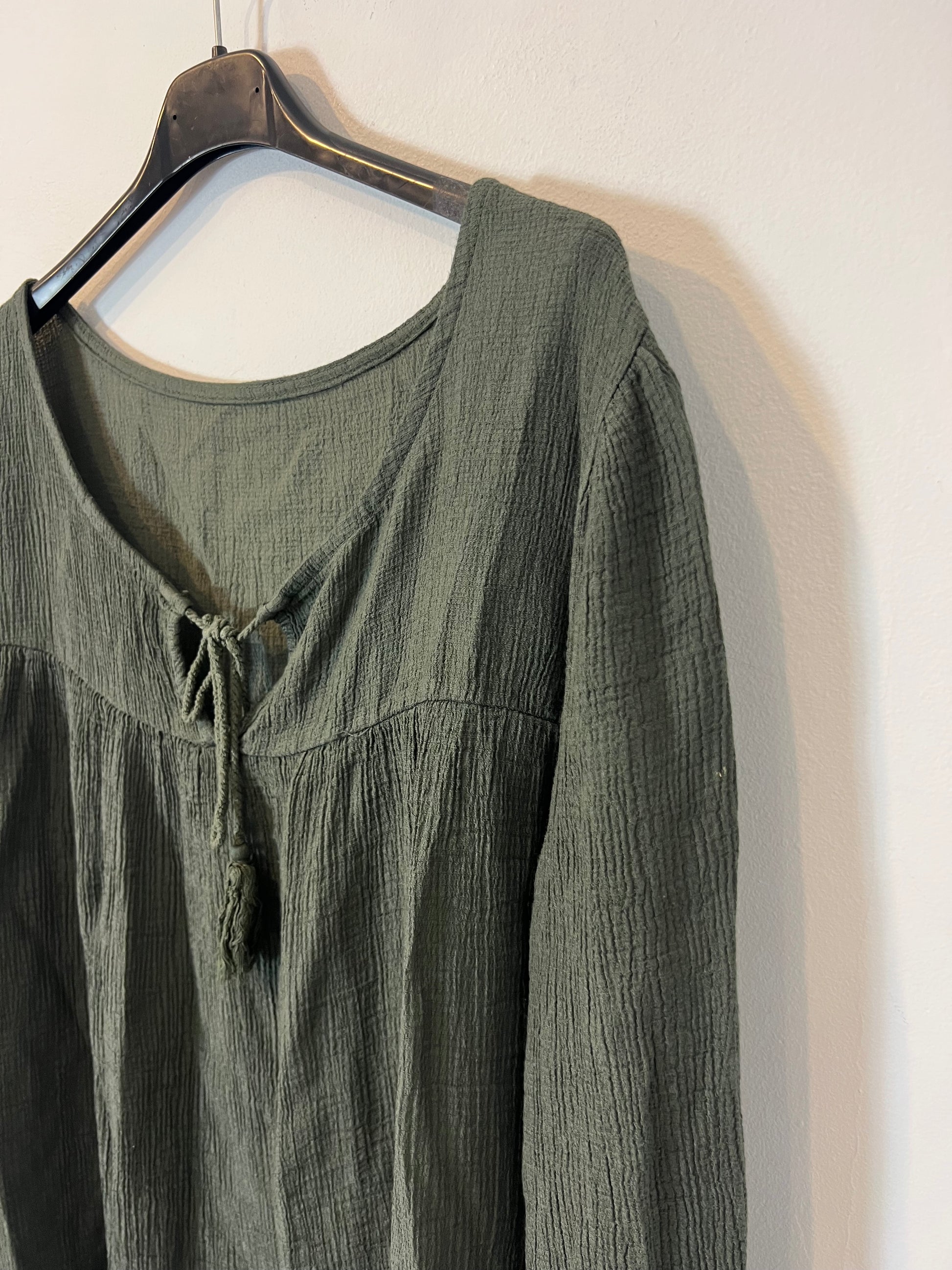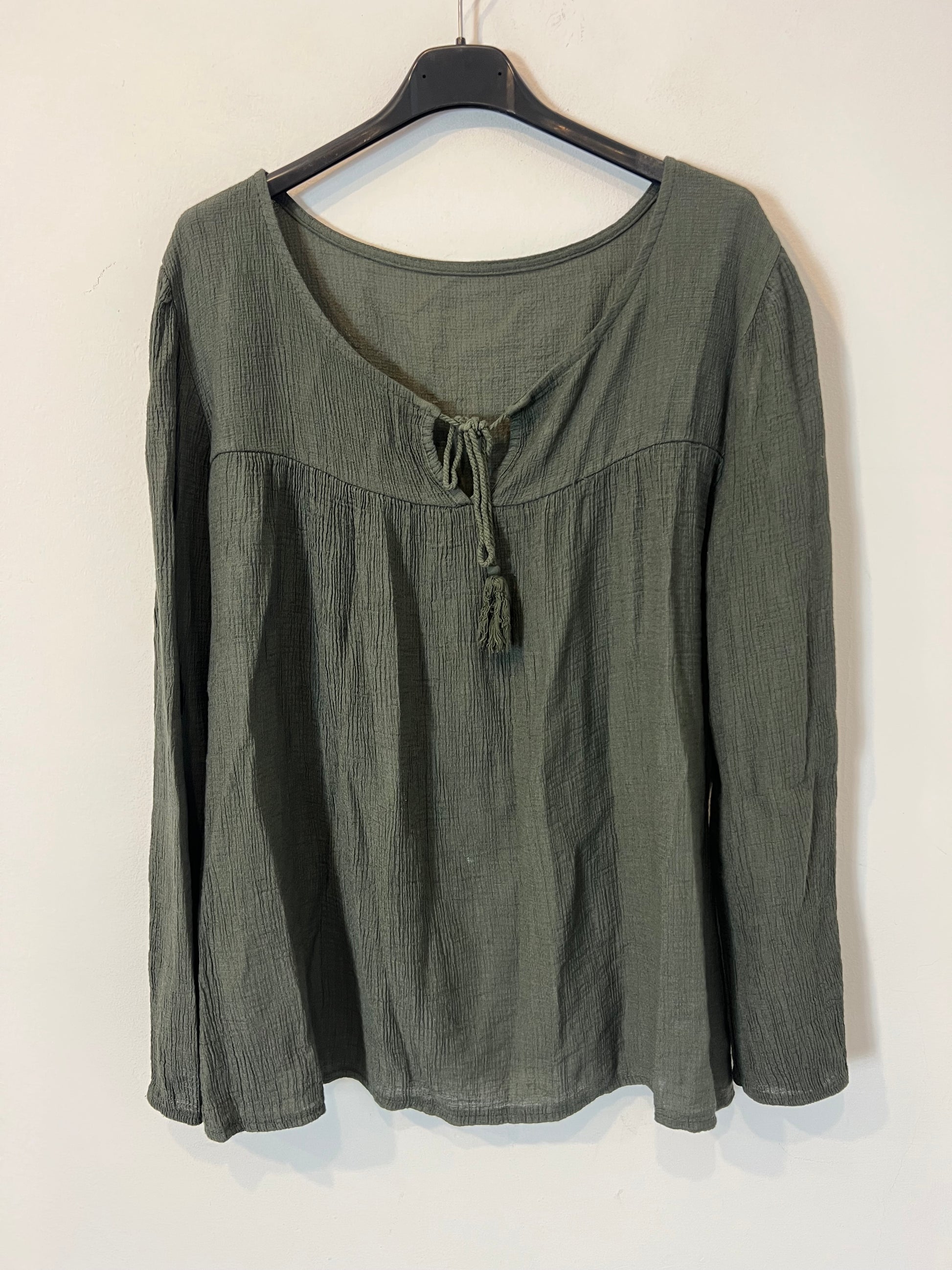 Dark green textured blouse. Back 49 cm, length 61 cm.