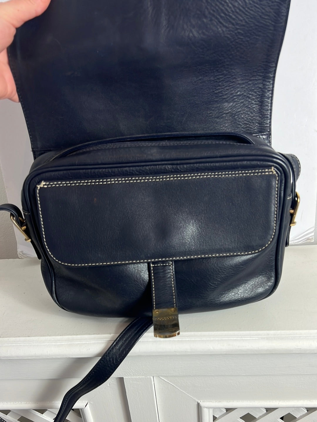 Vintage blue leather bag. Length 26 cm, height 18 cm.