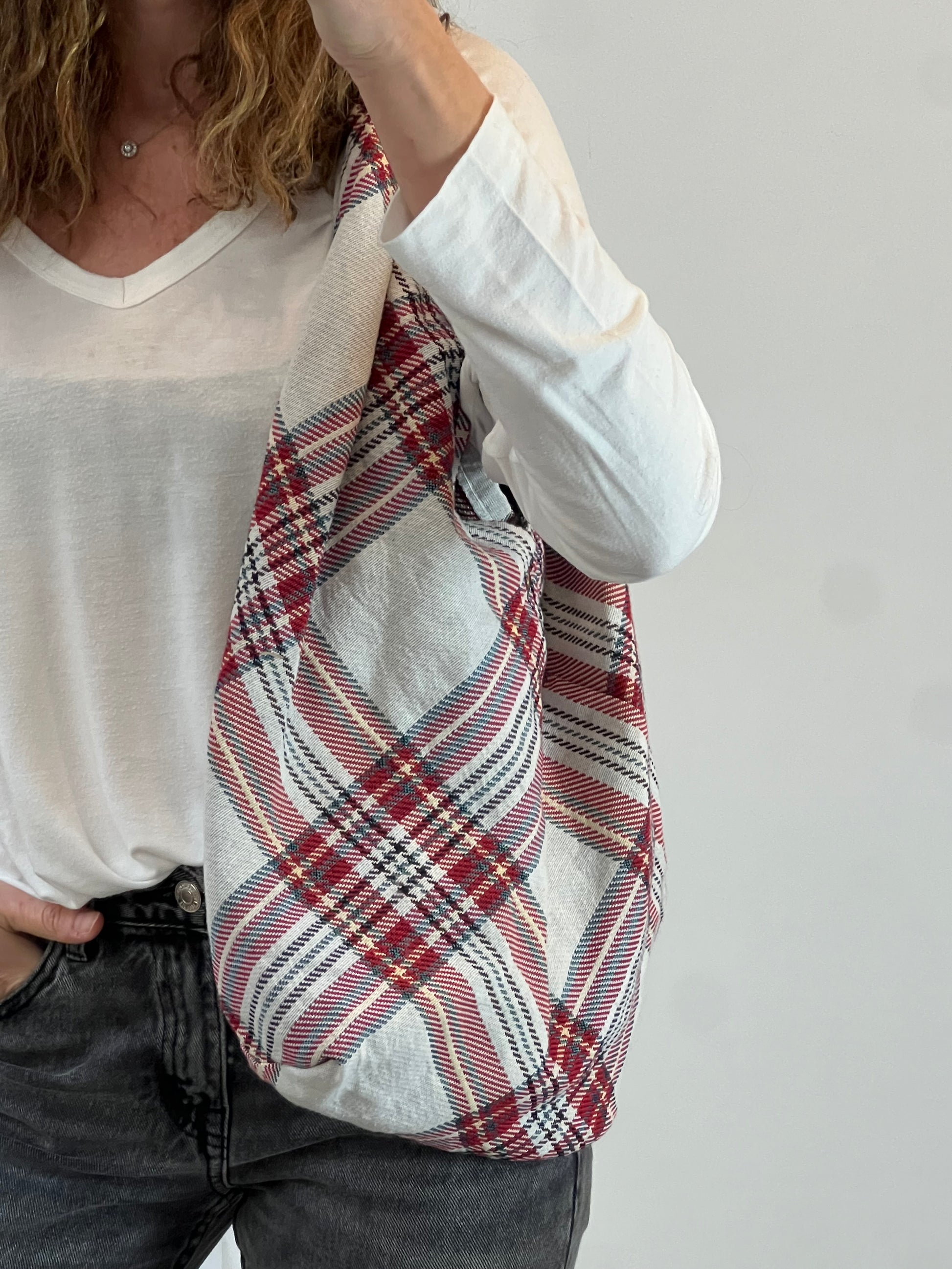 bolso shopper estilo saco de cuadros. 100% algodón