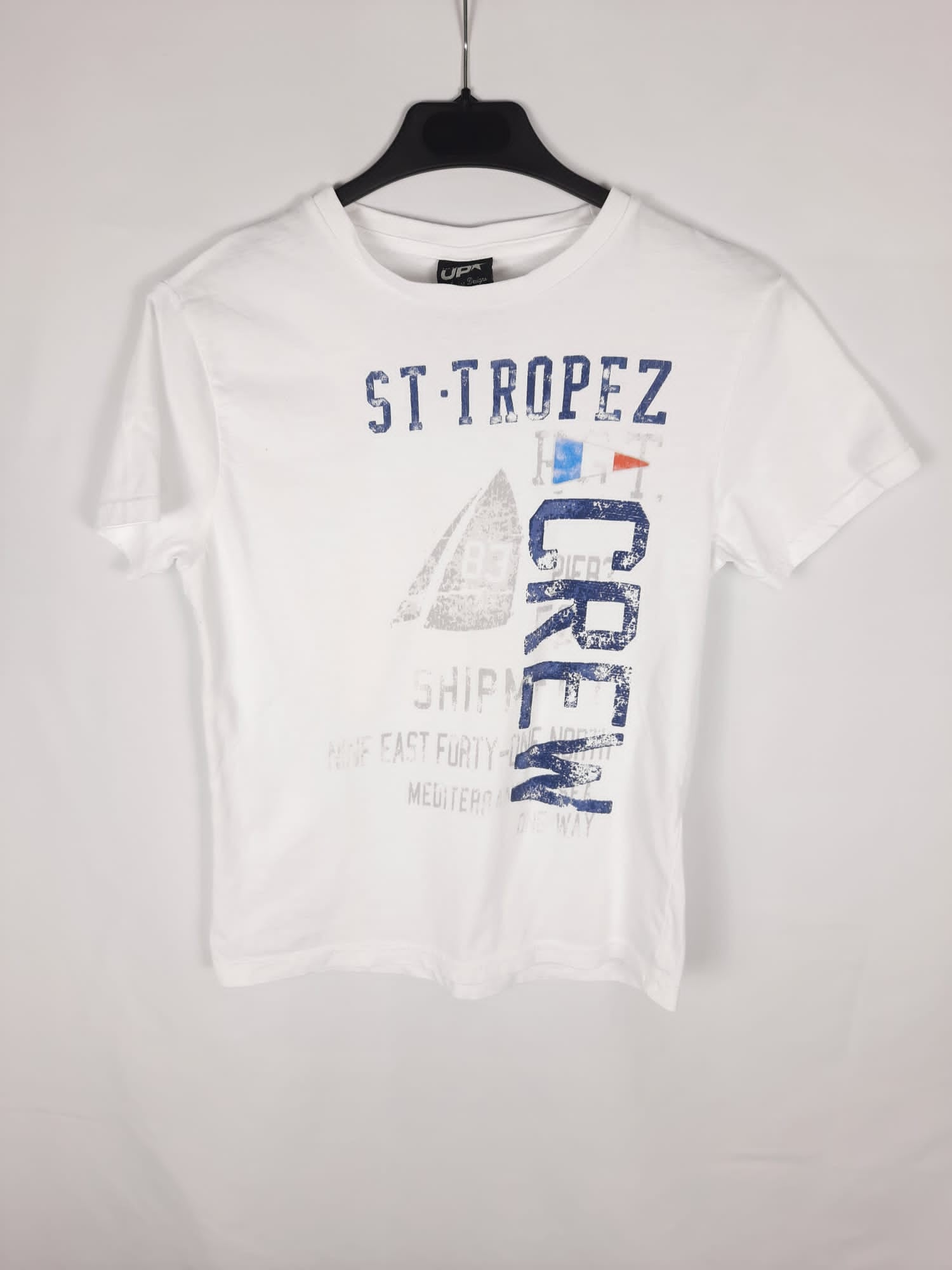 Basic white T-shirt with a drawing. Length 57 cm.