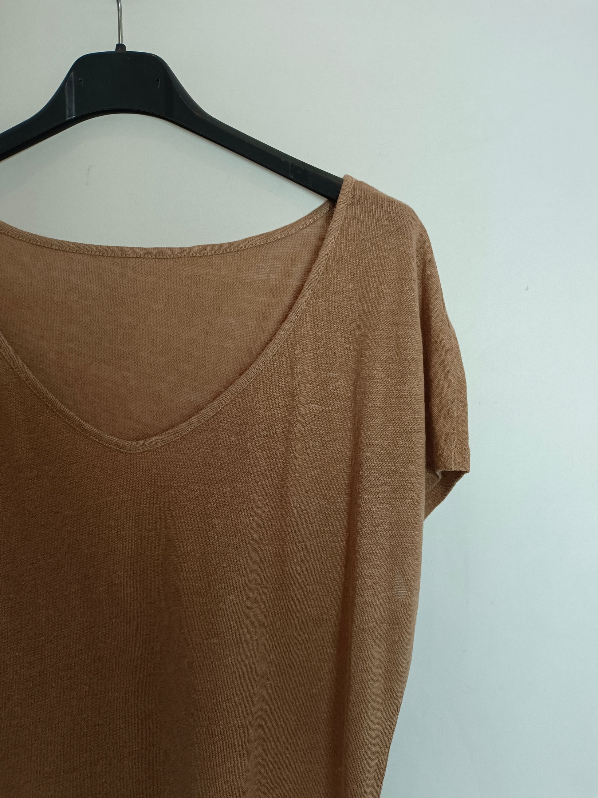 nude pink linen-effect fabric T-shirt