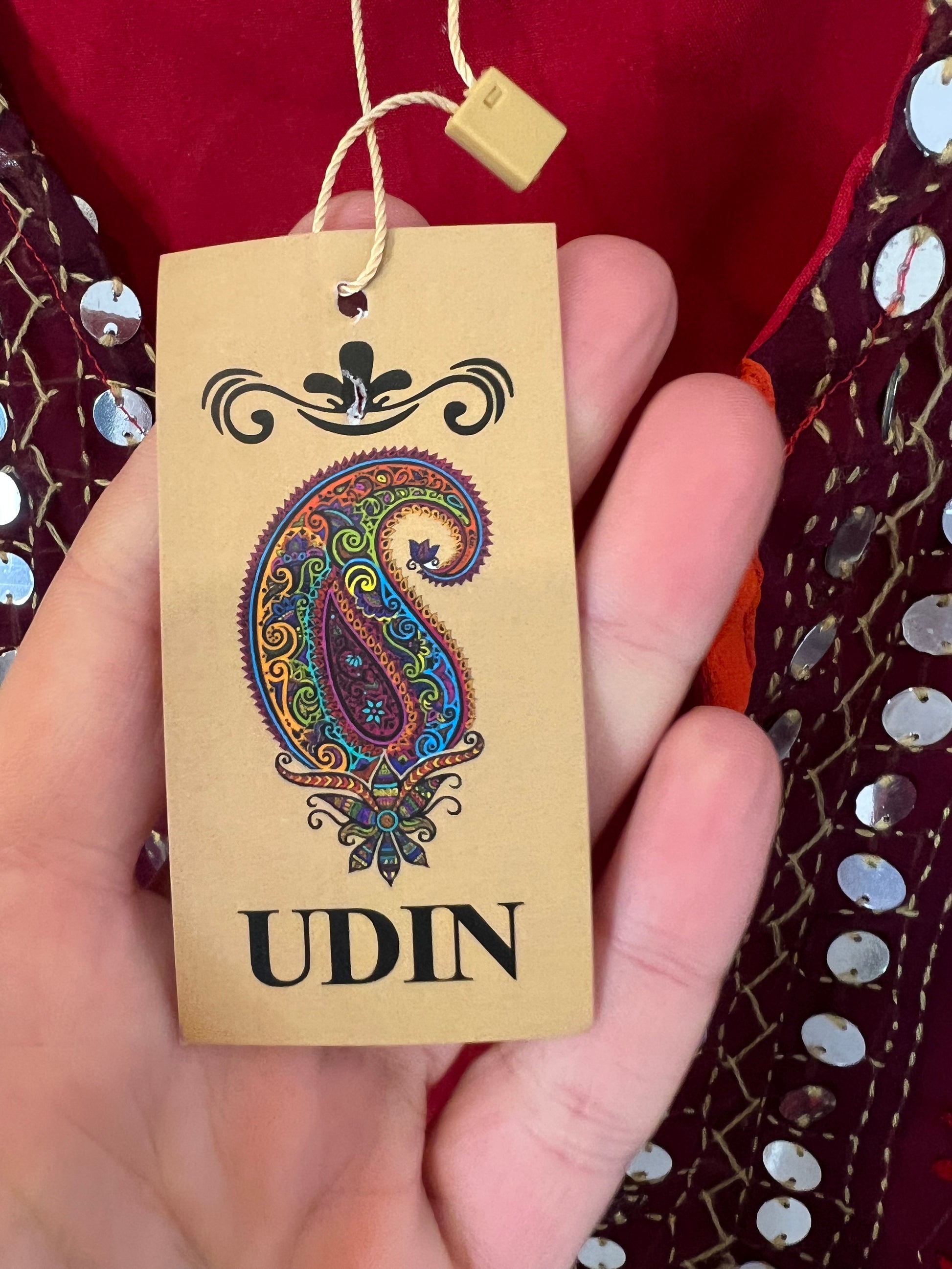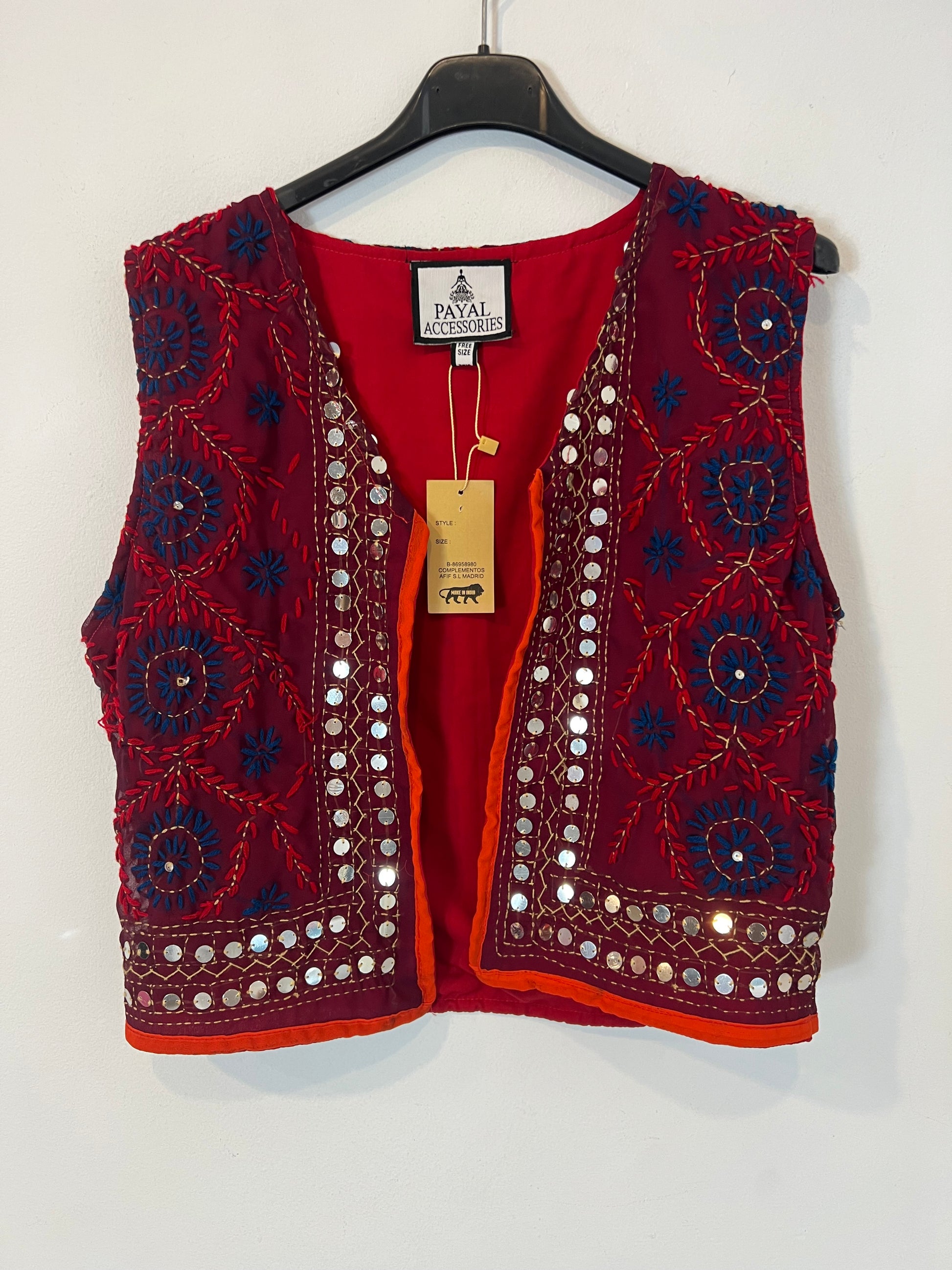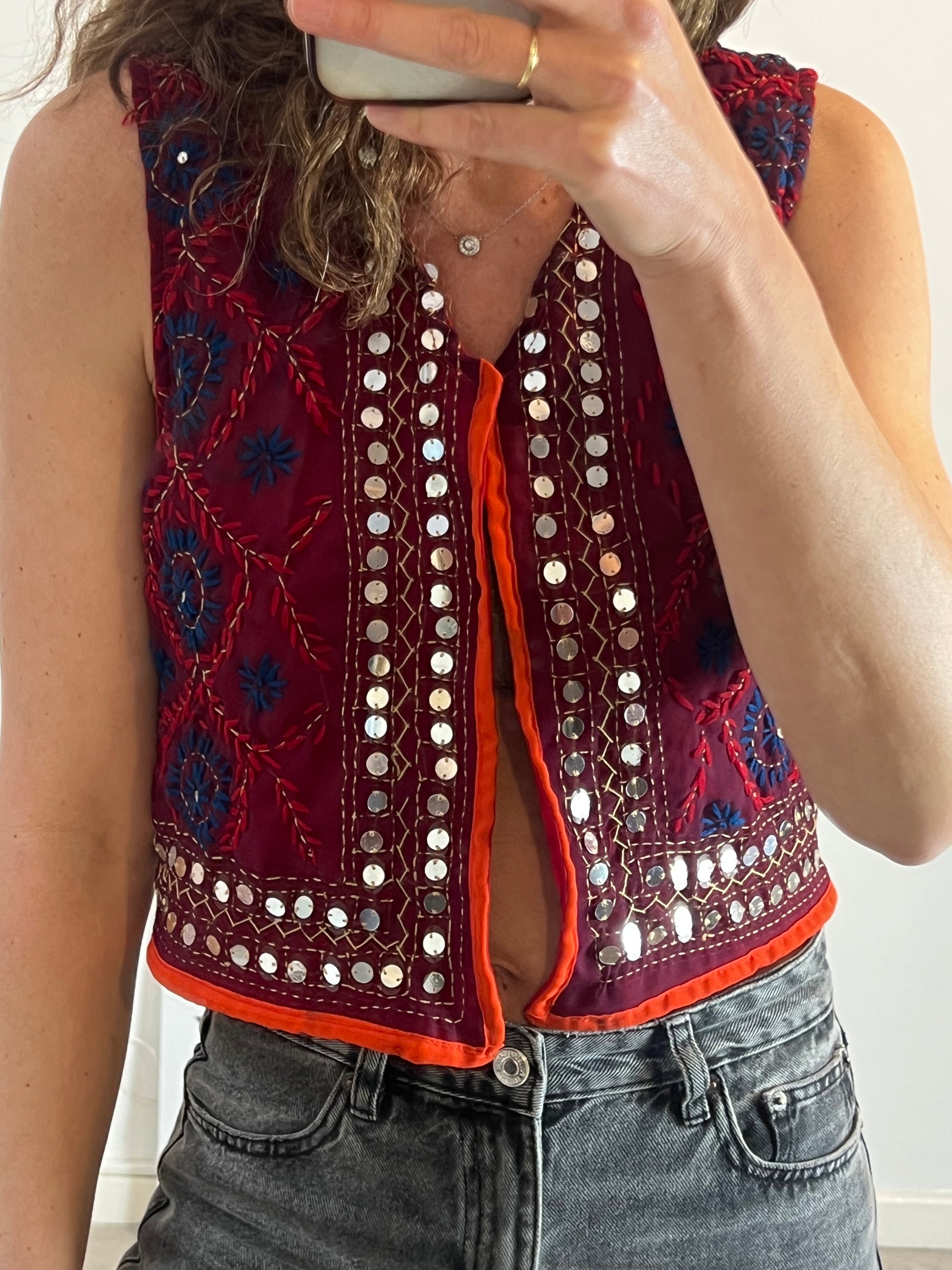 OTRAS. Chaleco bordados tonos rojos. T S/M