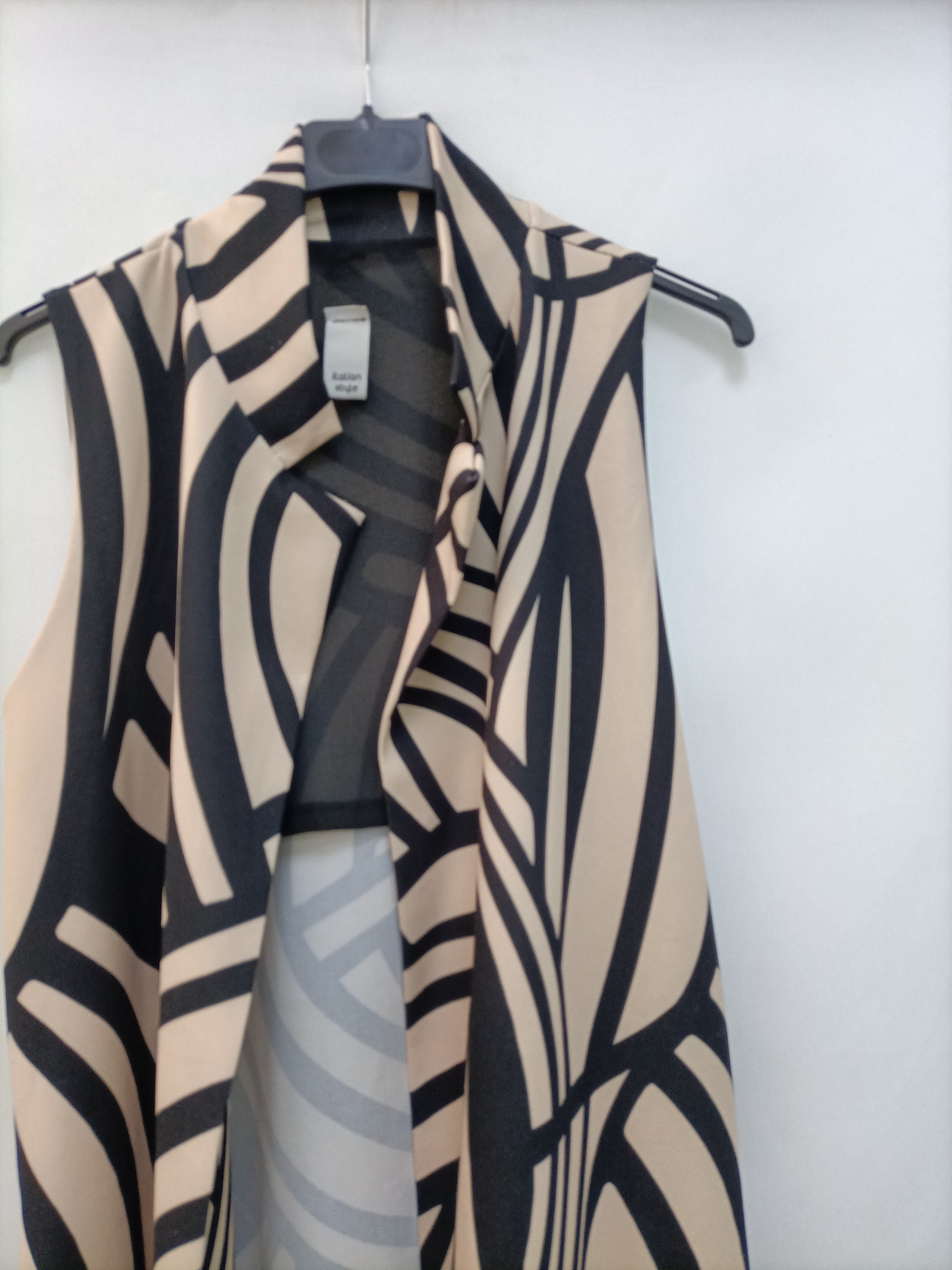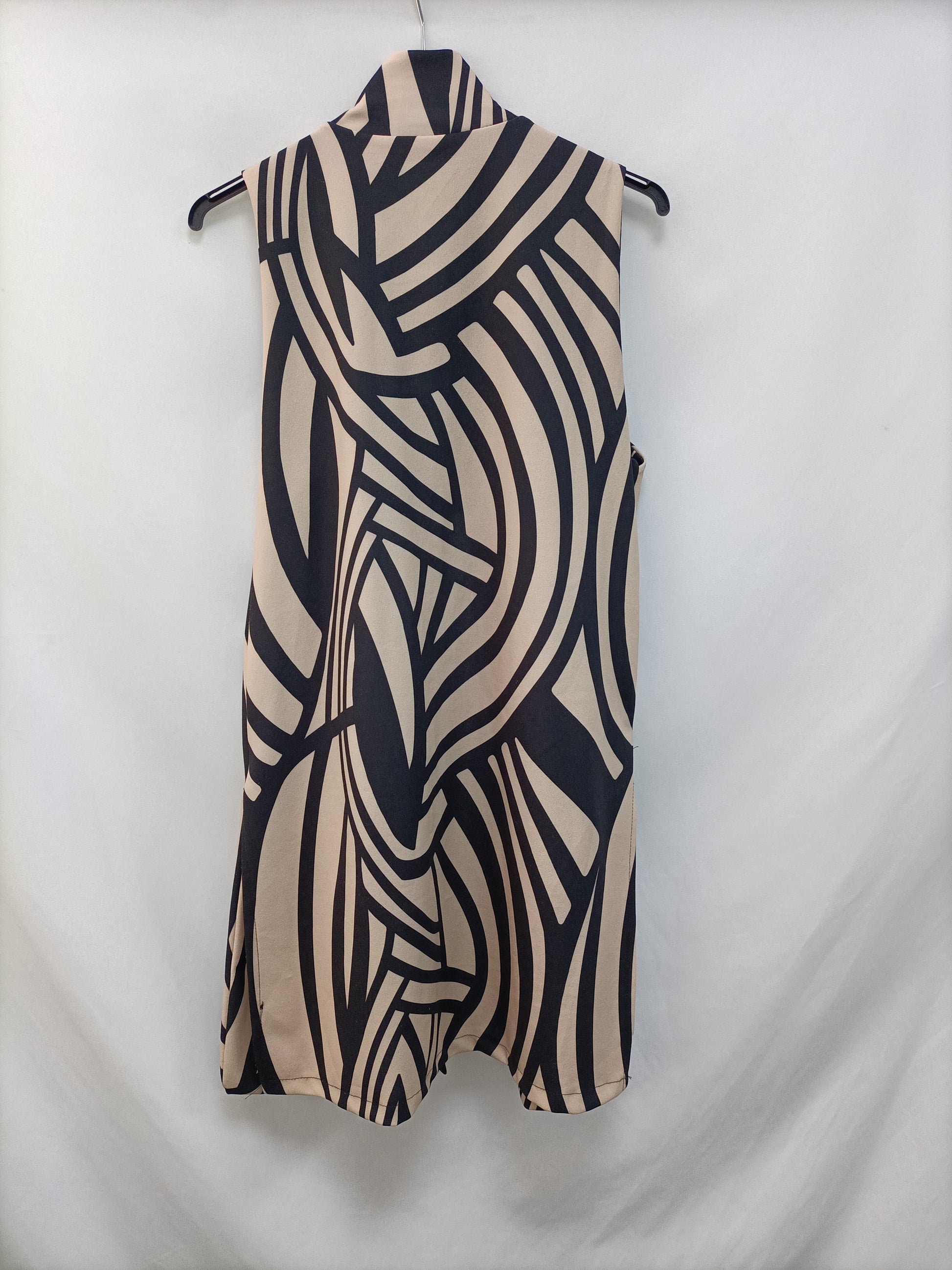 chaleco de rayas negro y beige elástico. no se abrocha. largo 82 cm
