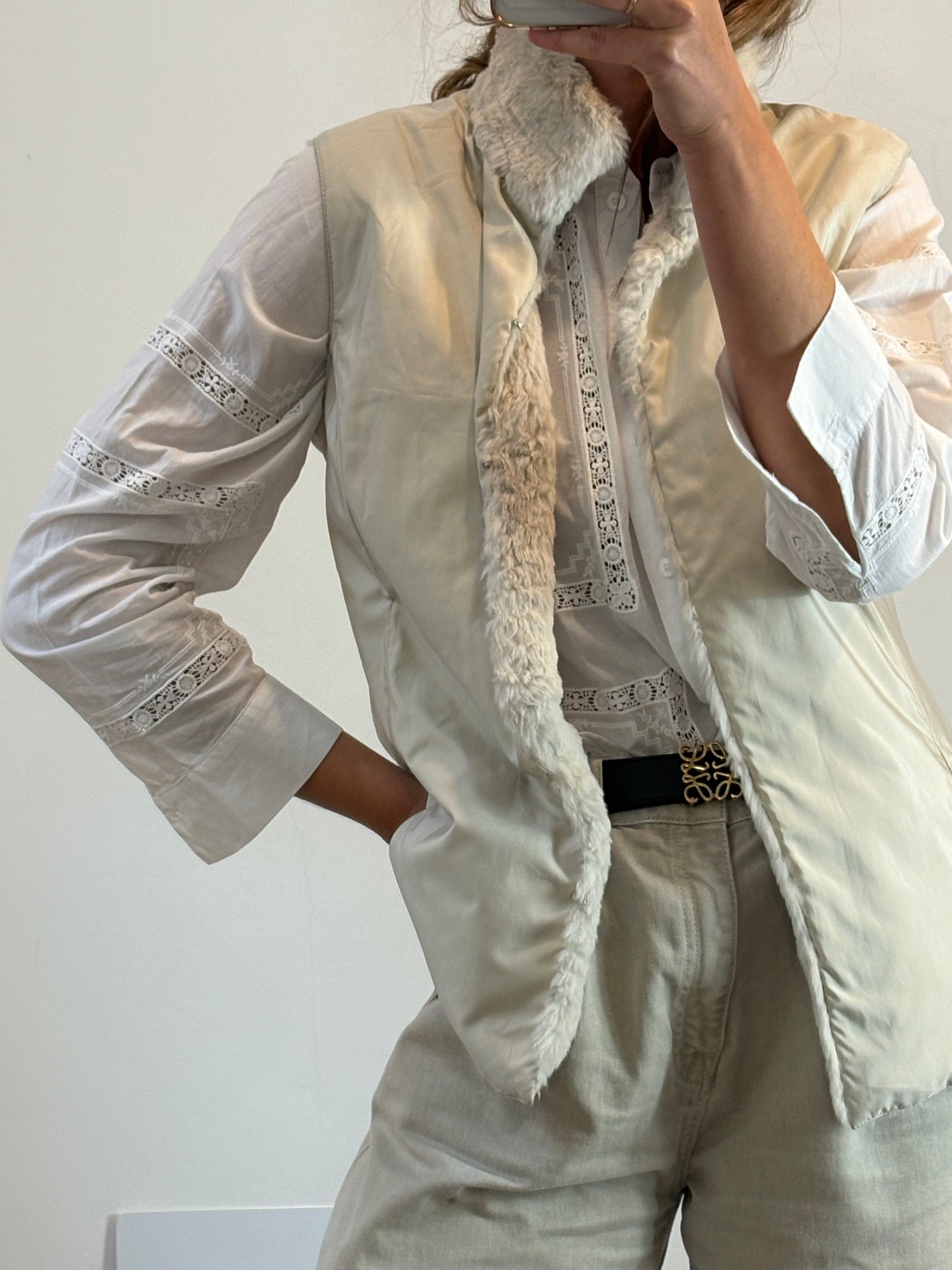 LAURÈL. Chaleco reversible pelo NATURAL