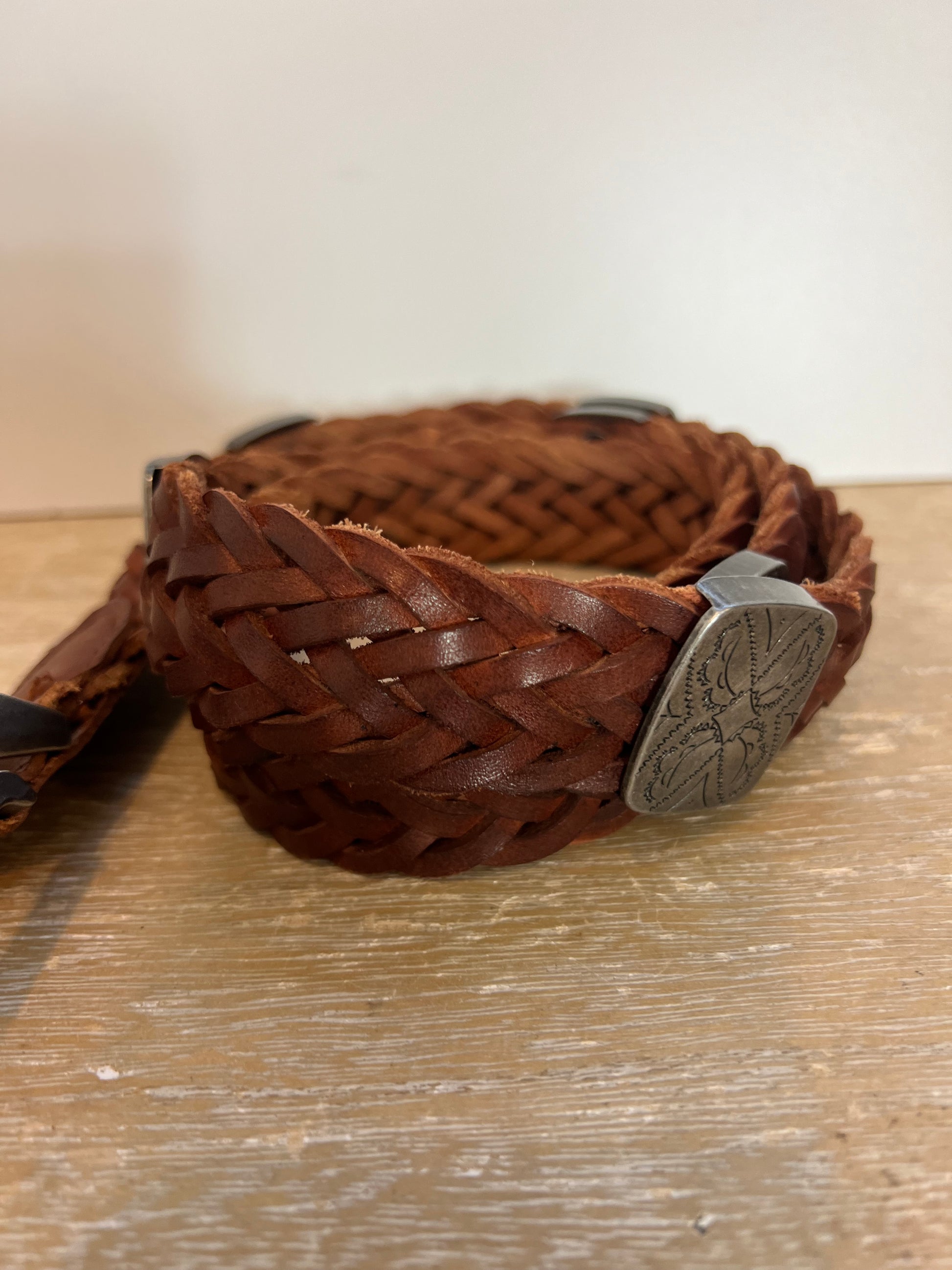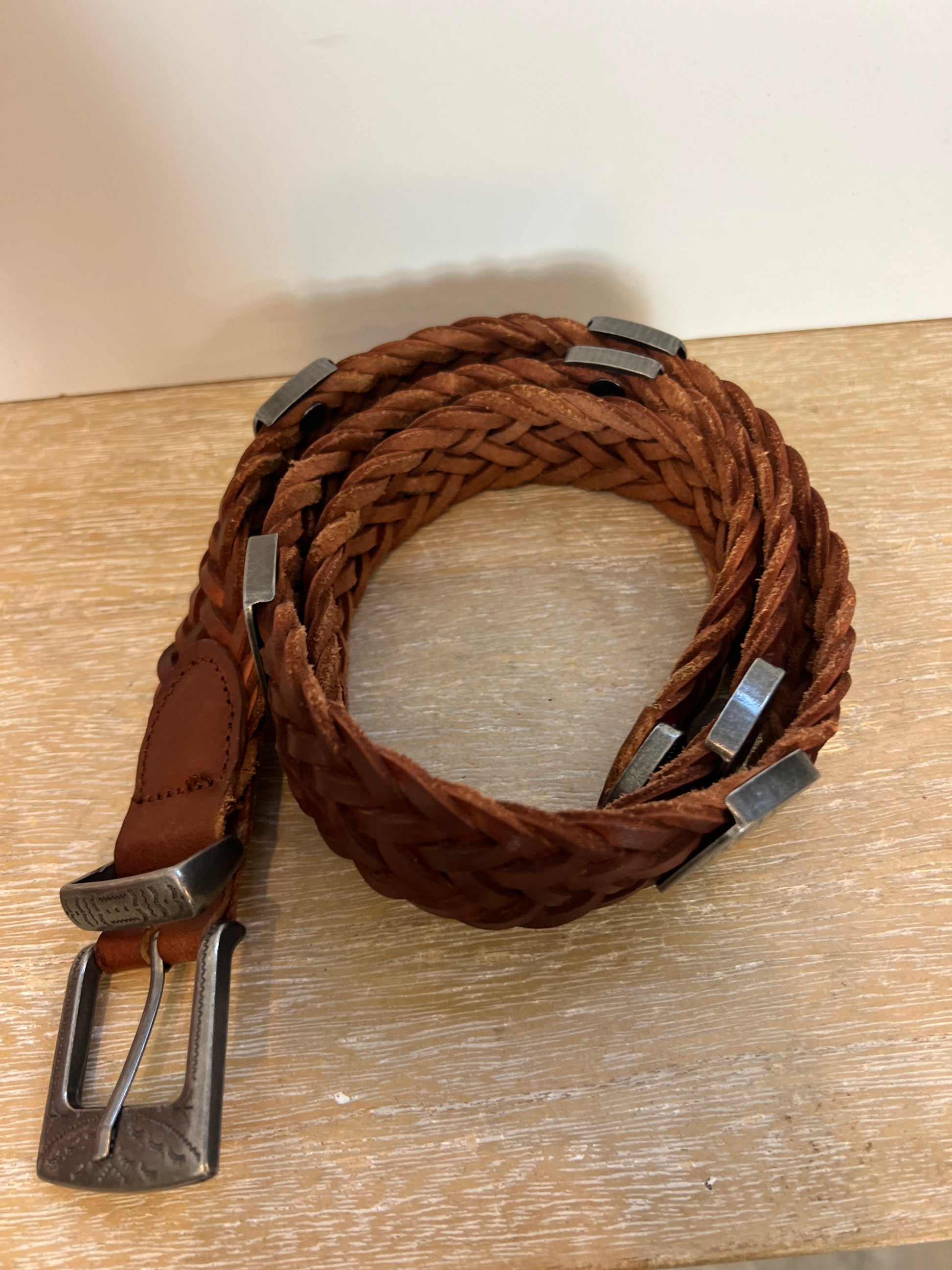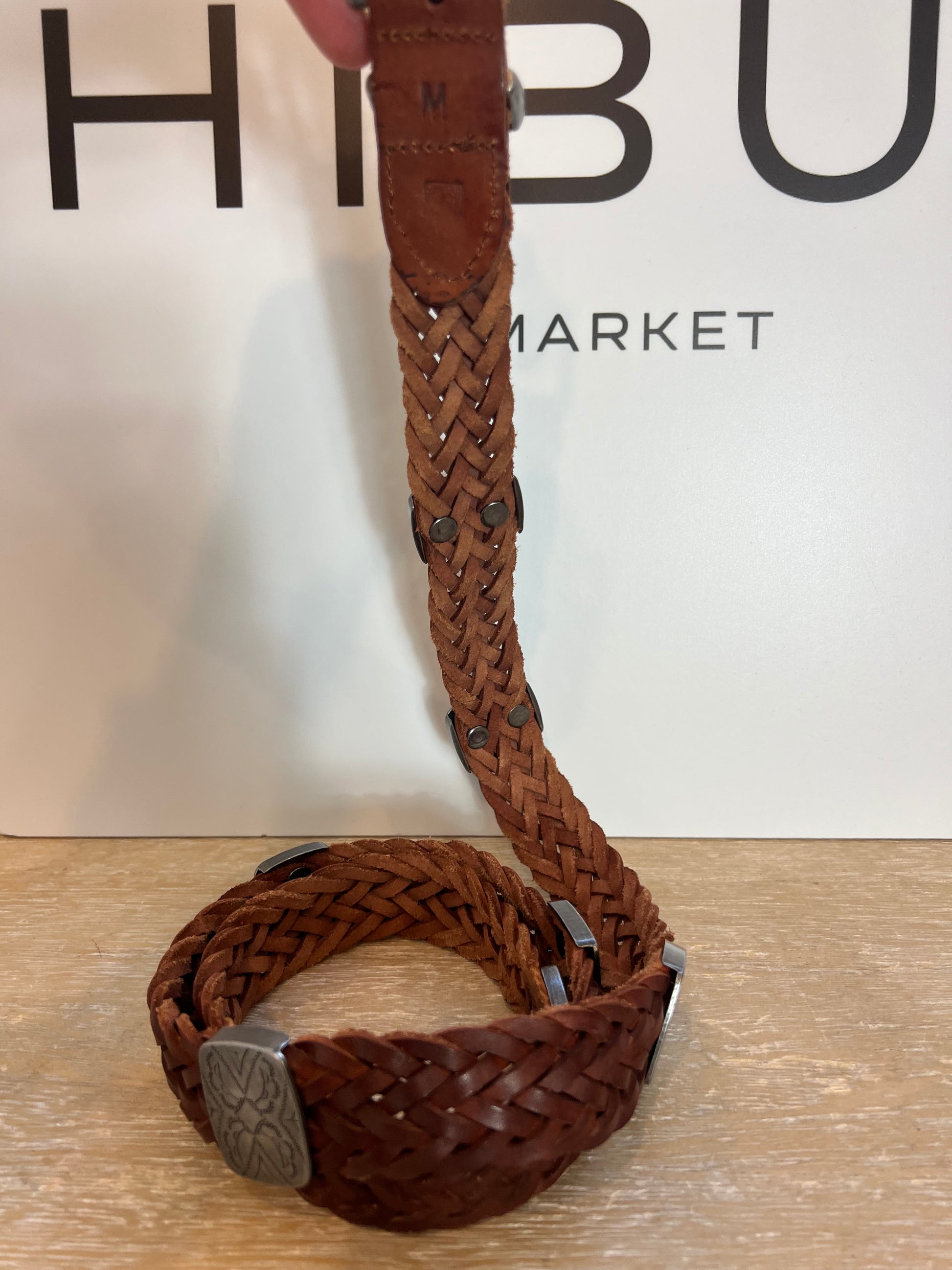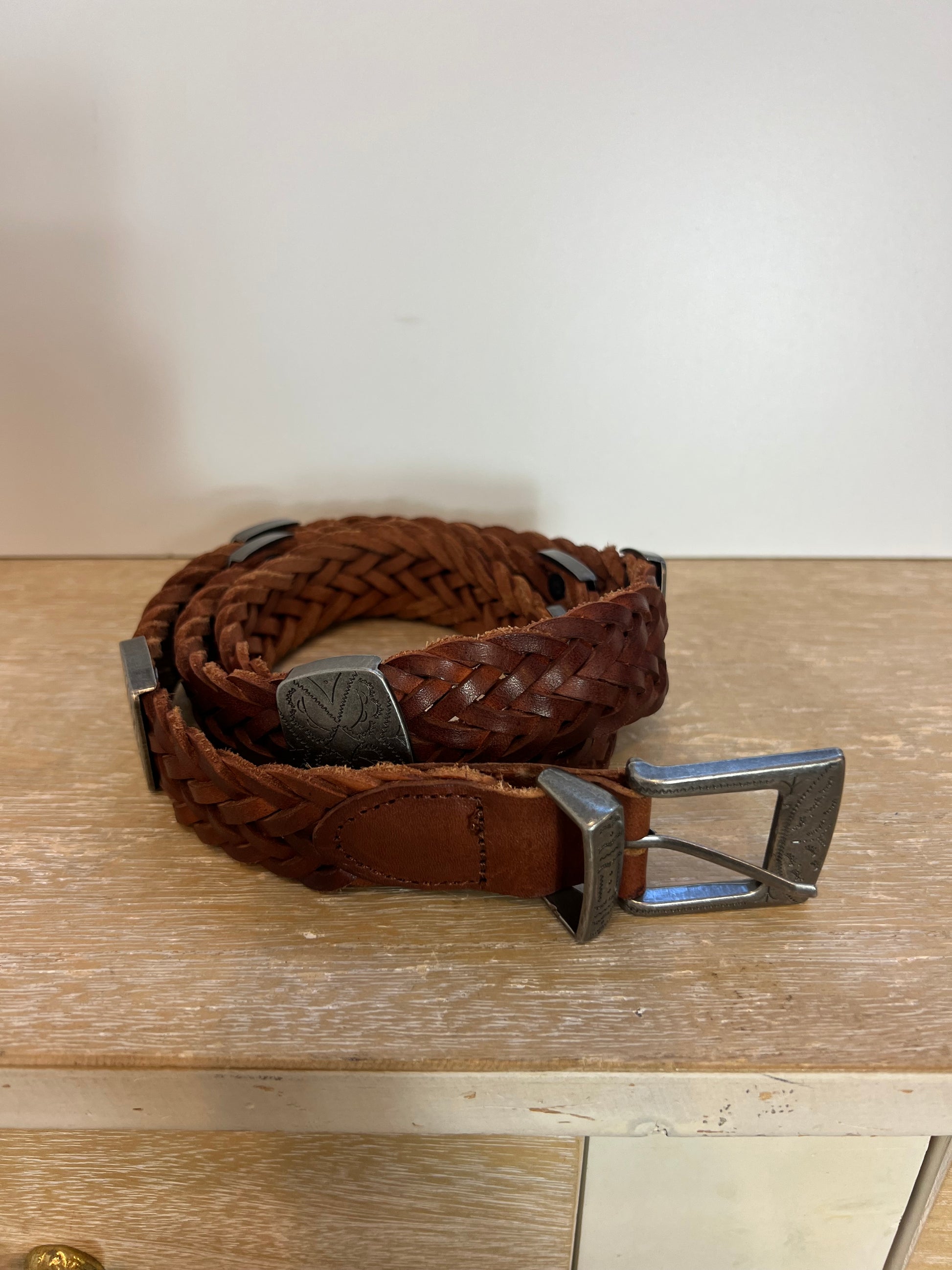 Cinturón negro trenado con detalle de tachuelas plateadas.