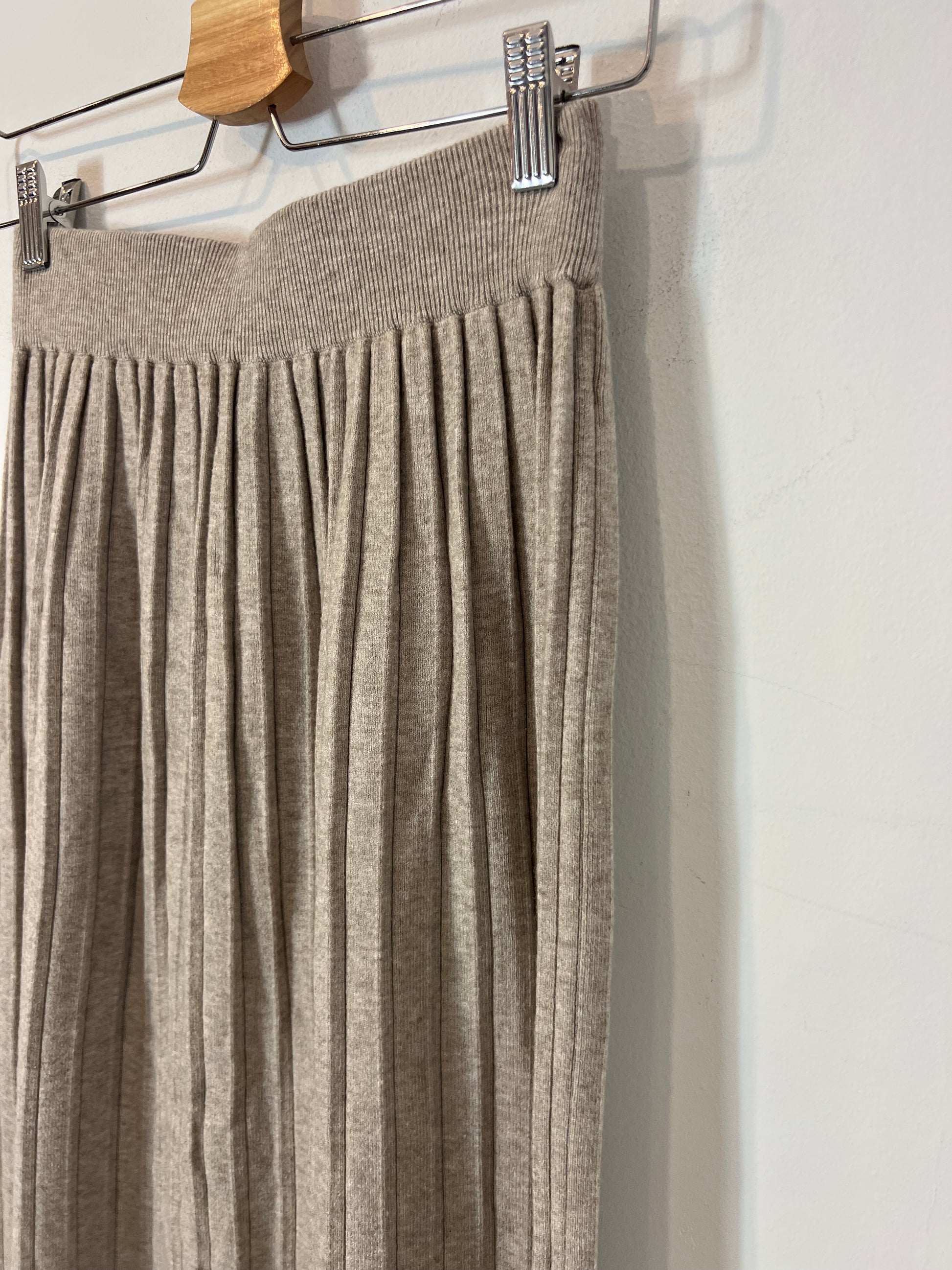 falda midi de punto beige elástica de canalé. Cintura 32cm , largo 83 cm