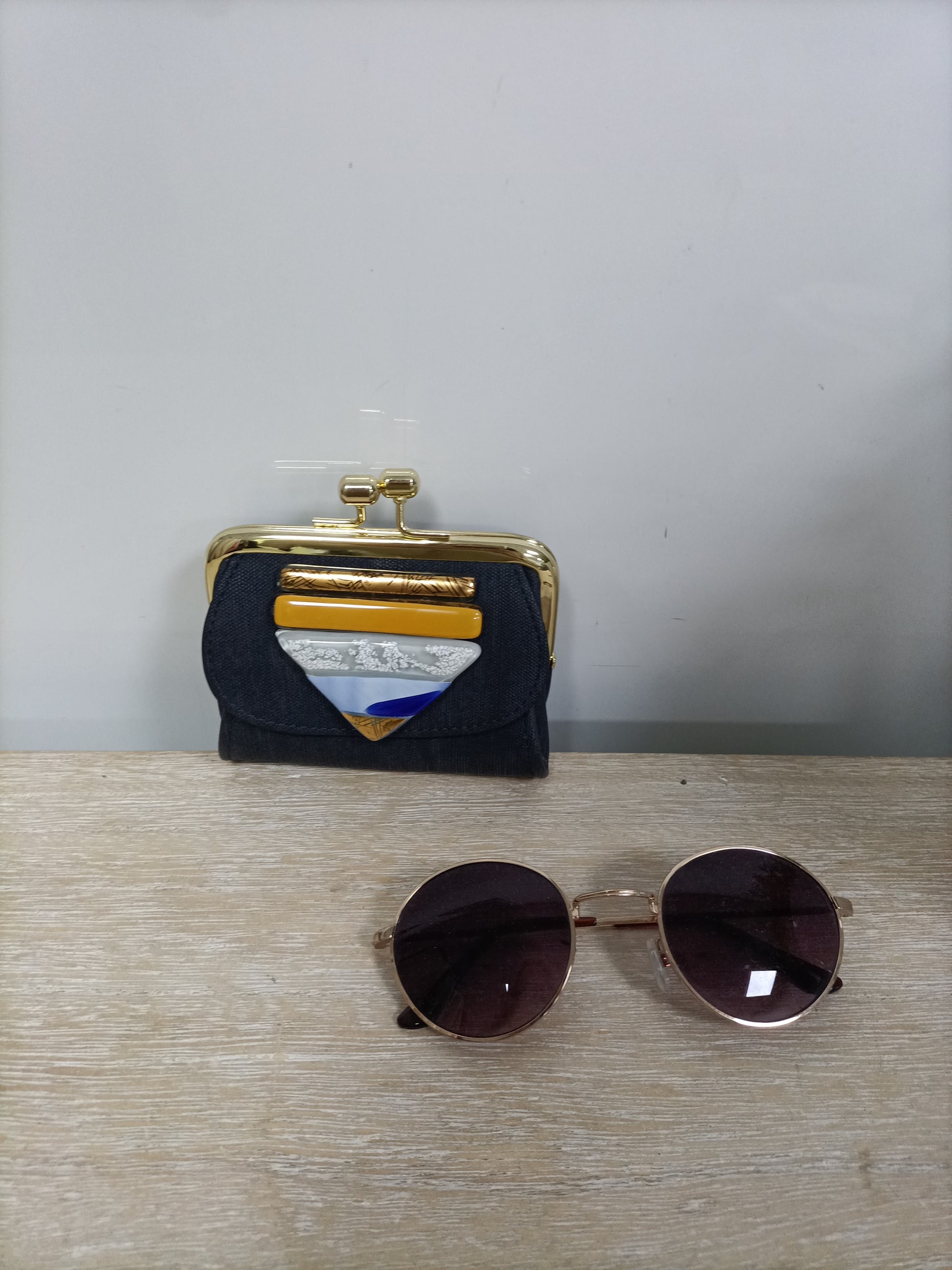 Monedero gris con detalles en nacar.