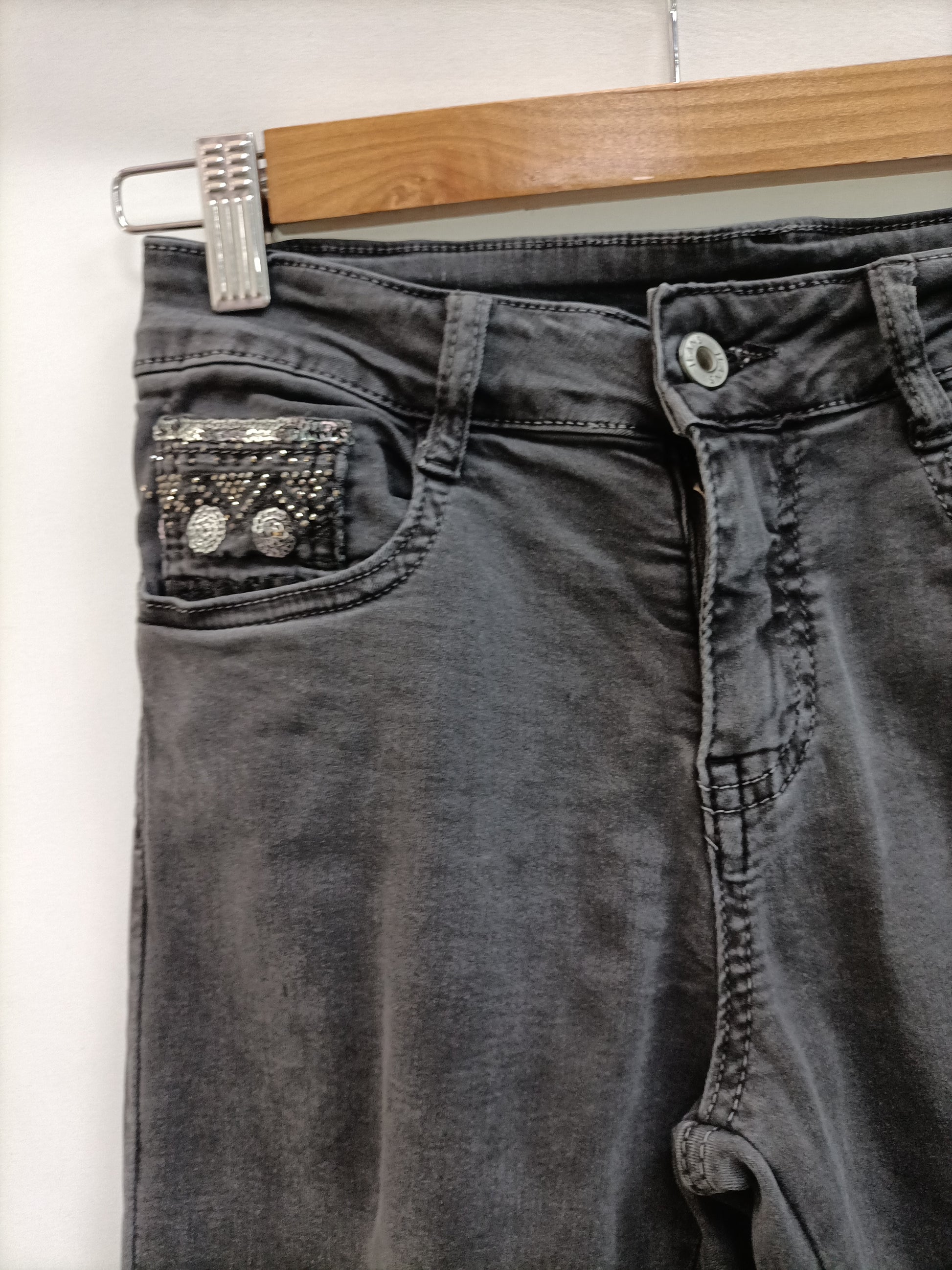 Gray denim pants with beaded legs. Waist 32 cm, length 88 cm.