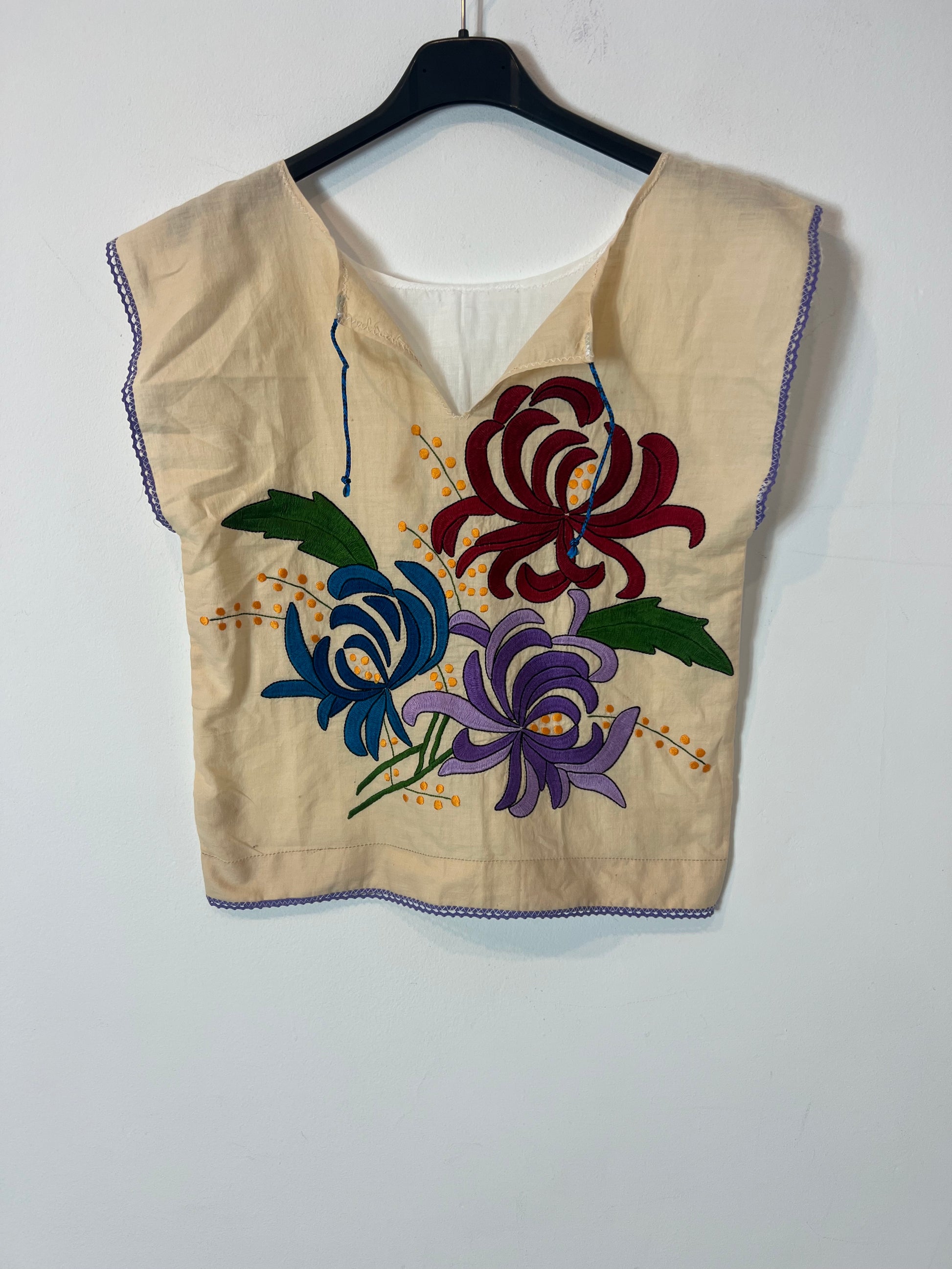 Top beige bordador colores. De sisa a siaa 49cm, largo 45cm ( en etiqueta marca 38cm)