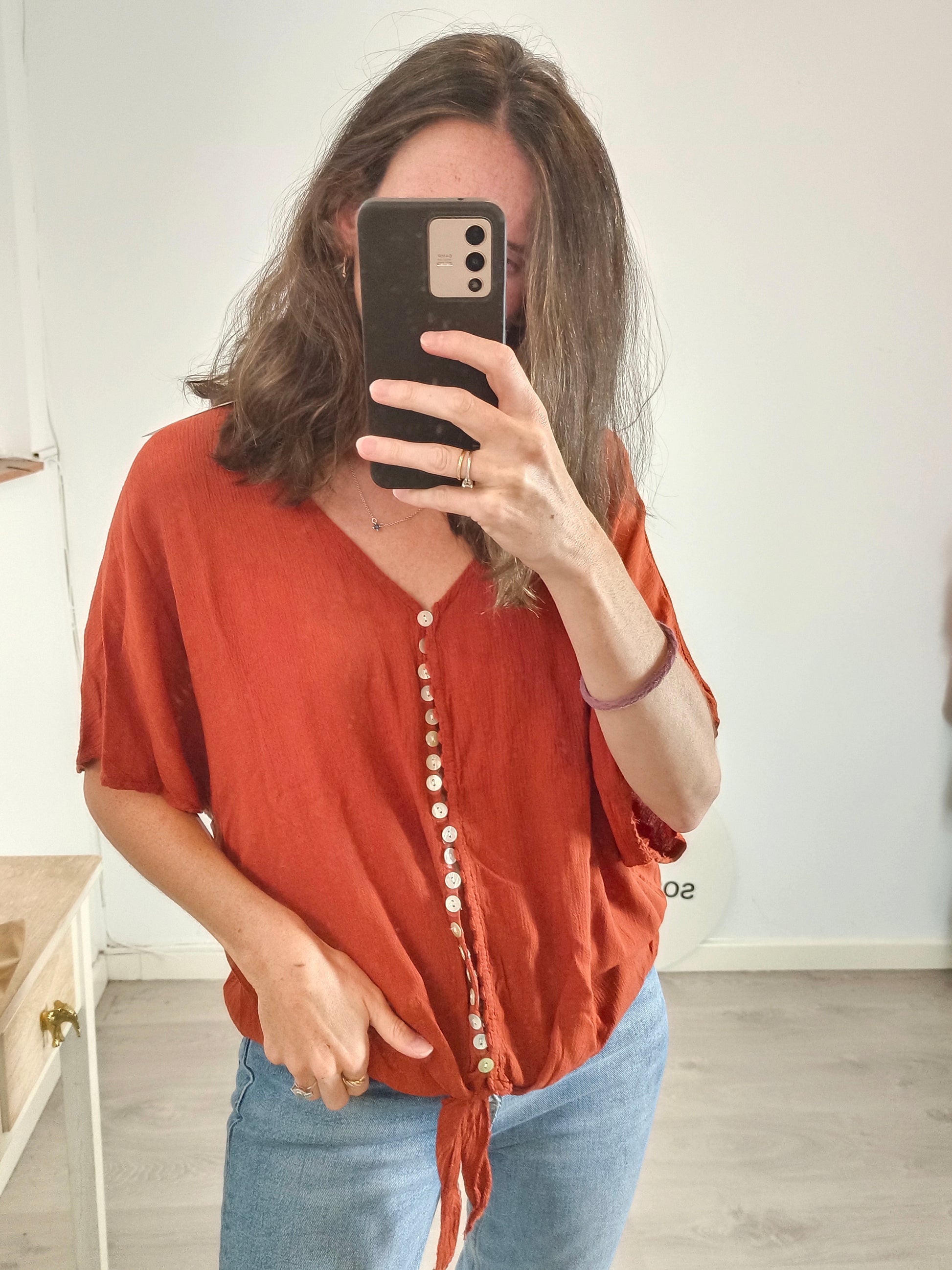 NUEVO CON ETIQUETA. Top teja abotonado con lazada
