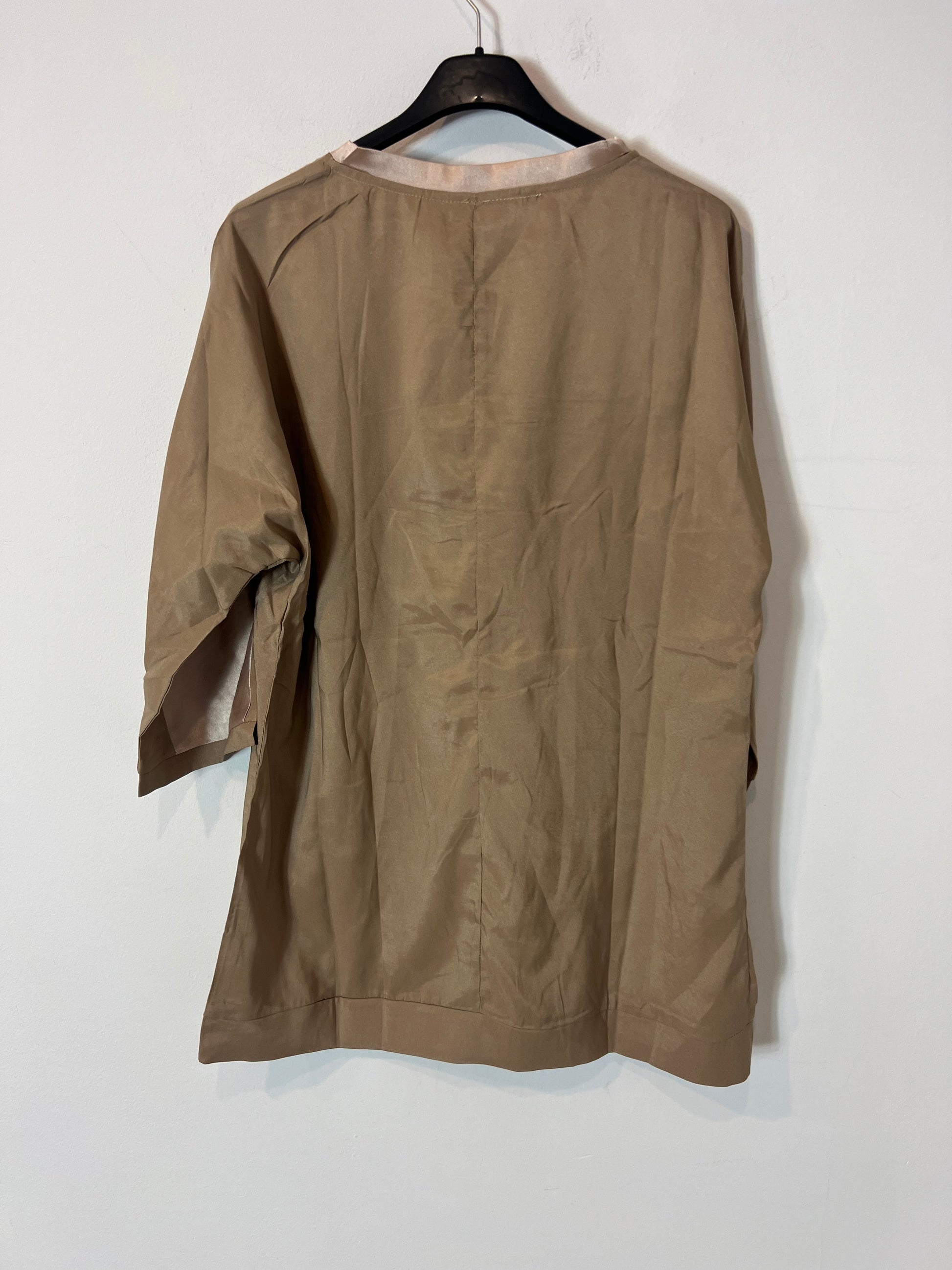 OTRAS. Total look top y pantalón beiges satinado. T L