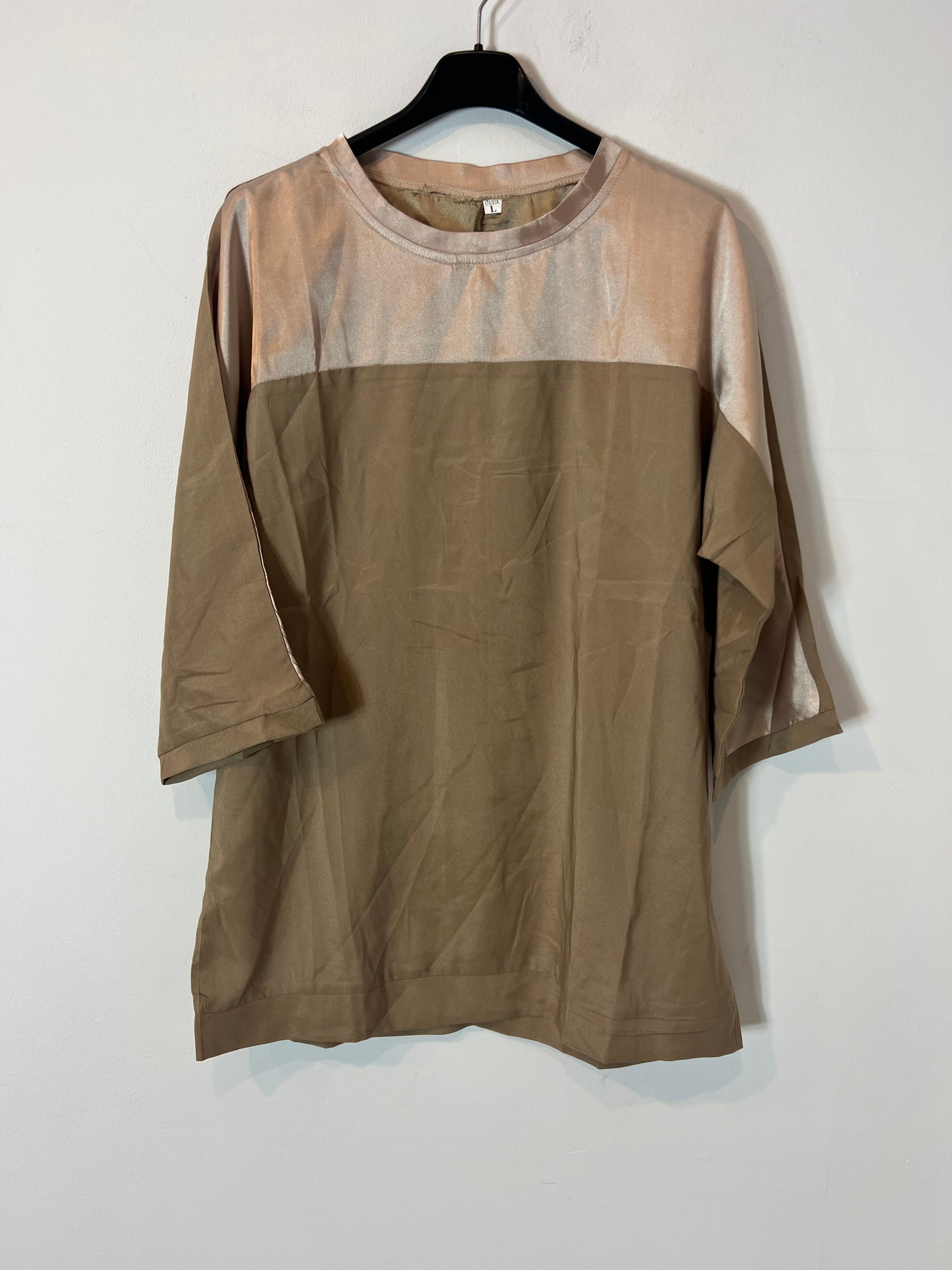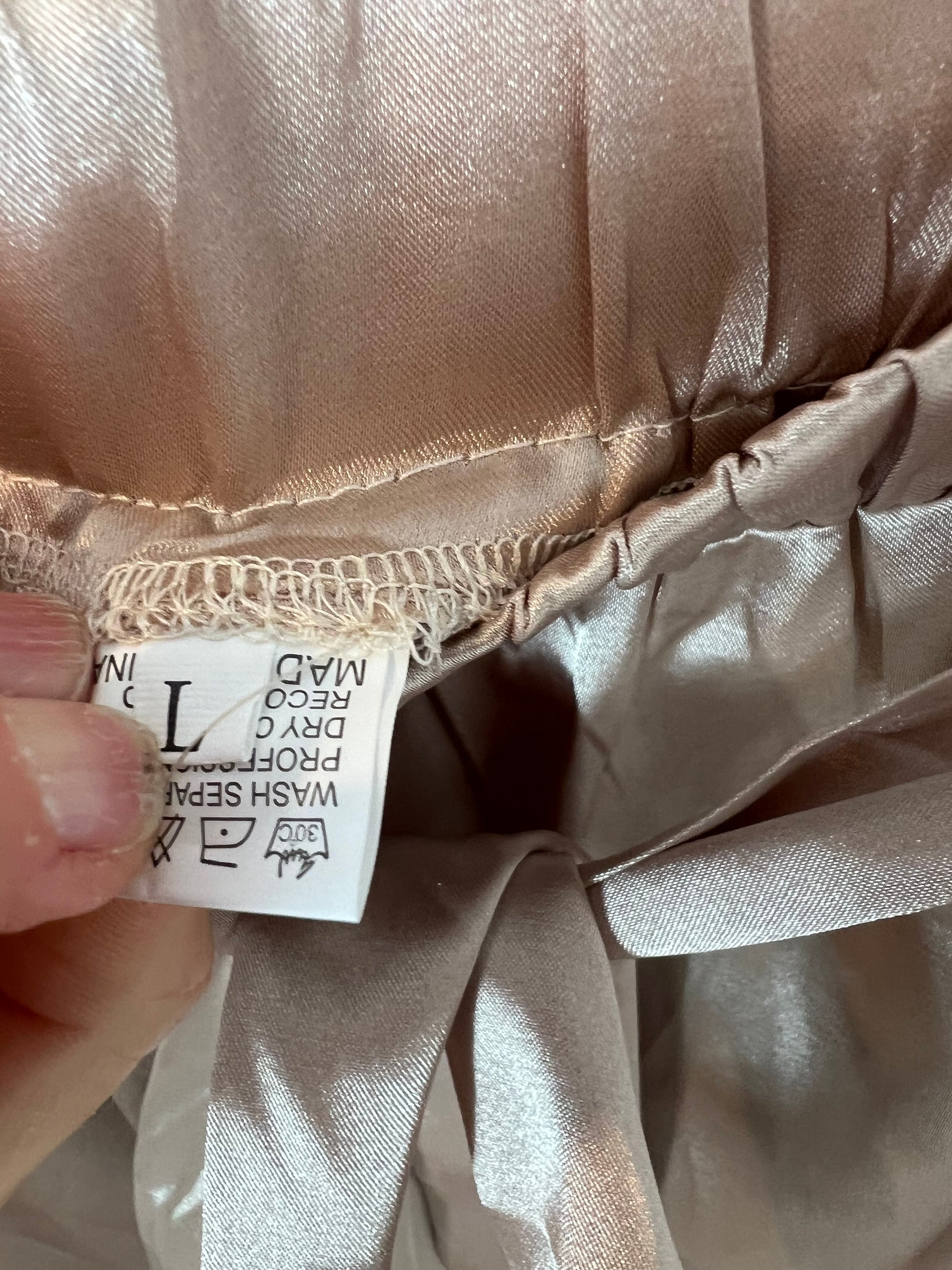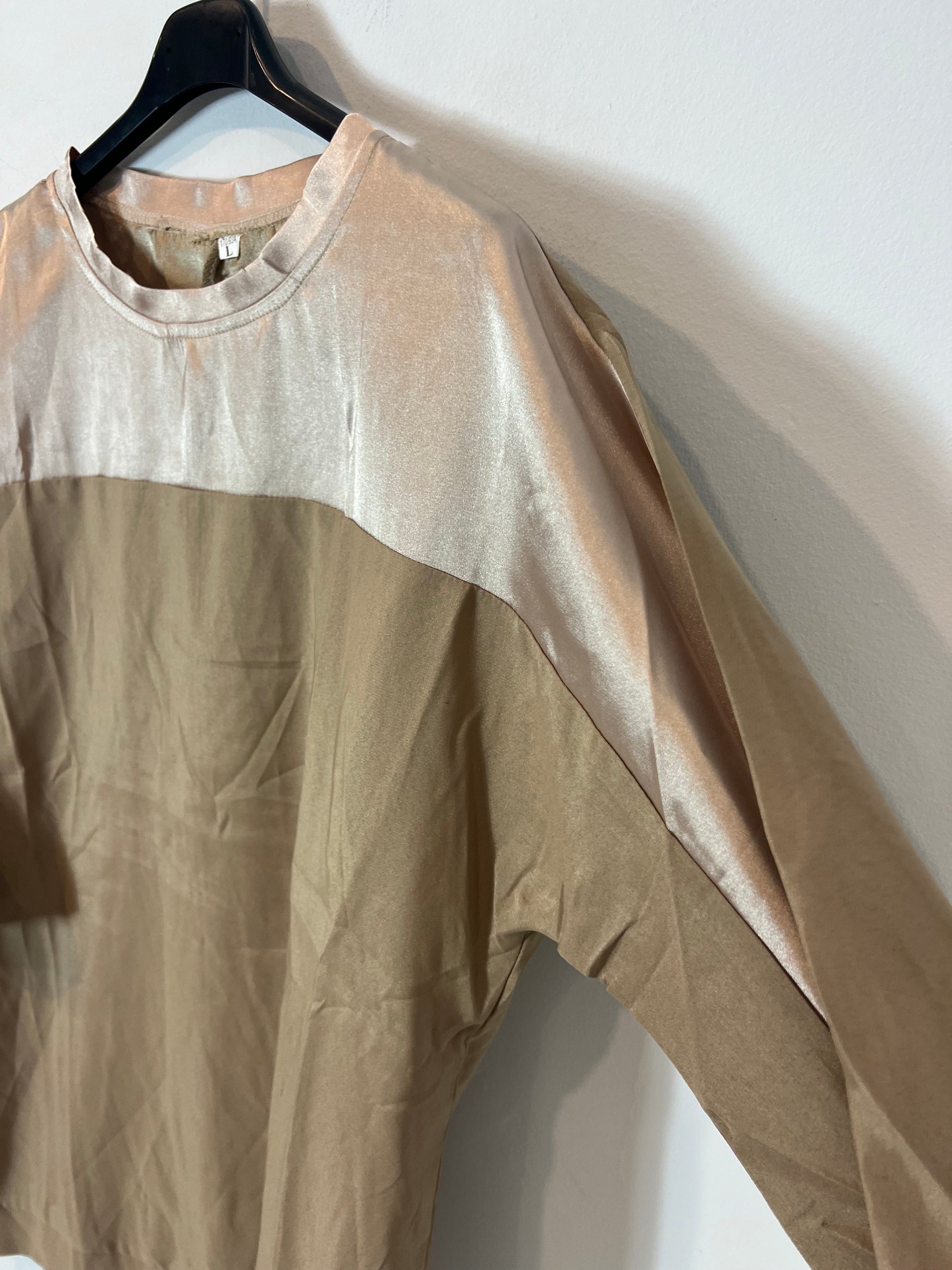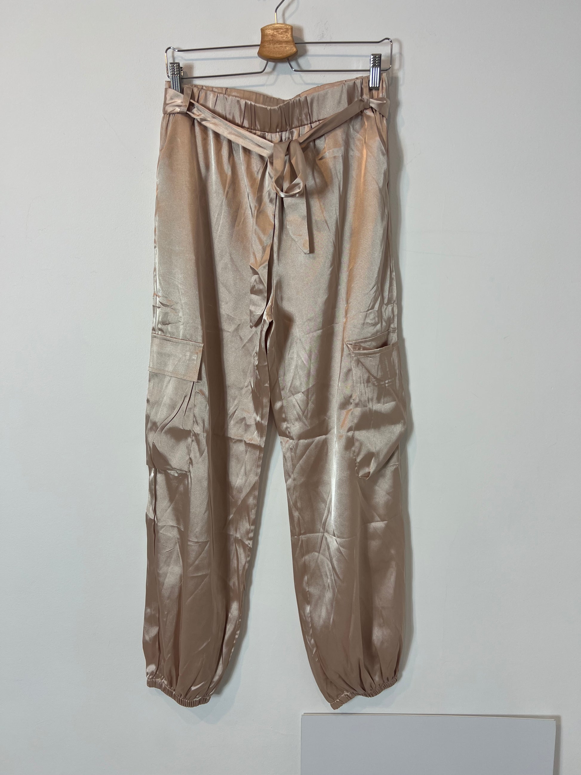 Total look top y pantalón beiges satinado con bolsillos. Cintura elástica. Talla como una M