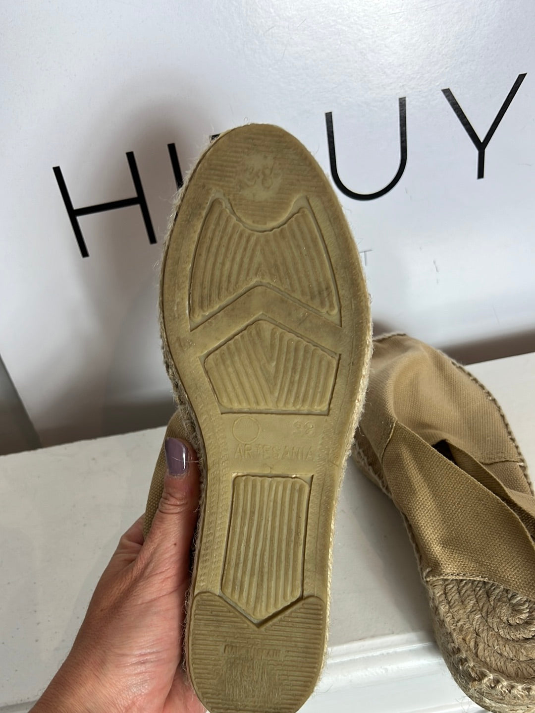 Zapatos esparto al tobillo. cintura 36cm, largo 40cm