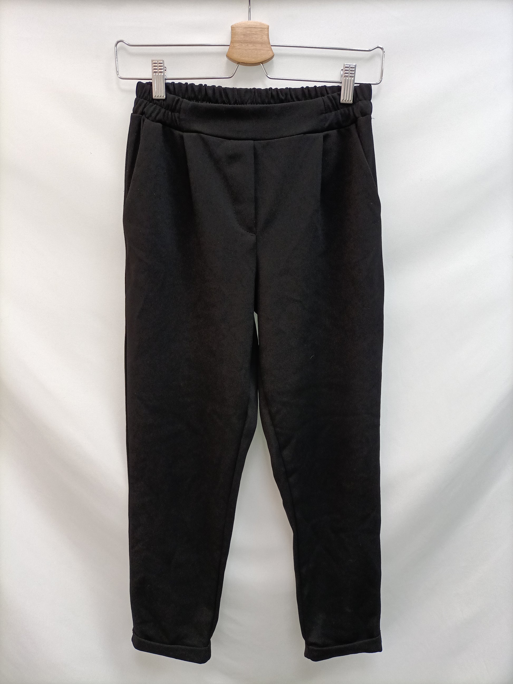 Black stretch fluid-style pants. Waist 36 cm, length 86 cm.