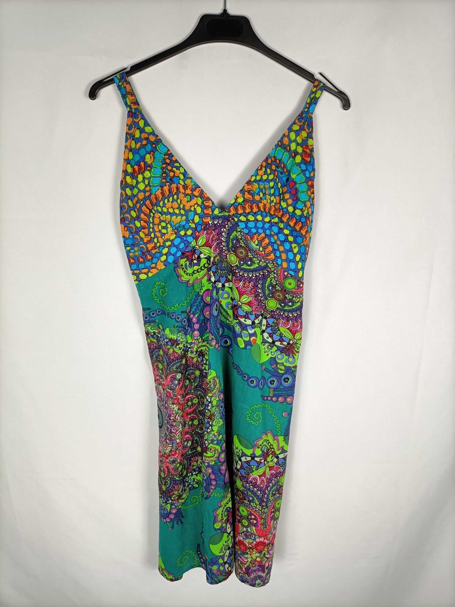 Others. Short multicolored dress with straps and a V-neckline. Adjustable straps and elastic back. Length 96 cm.