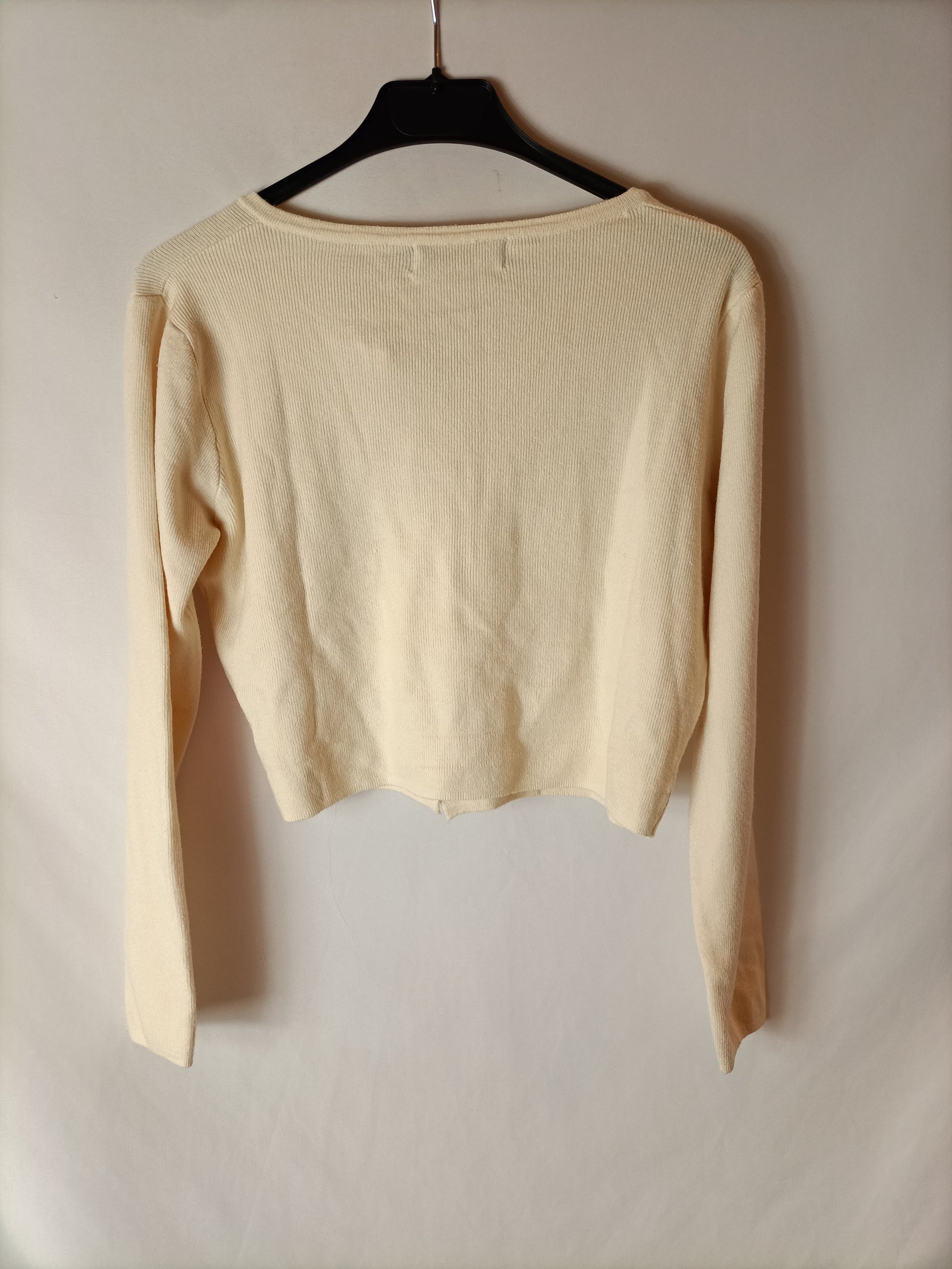 short beige buttoned sweater made of very soft fabric.