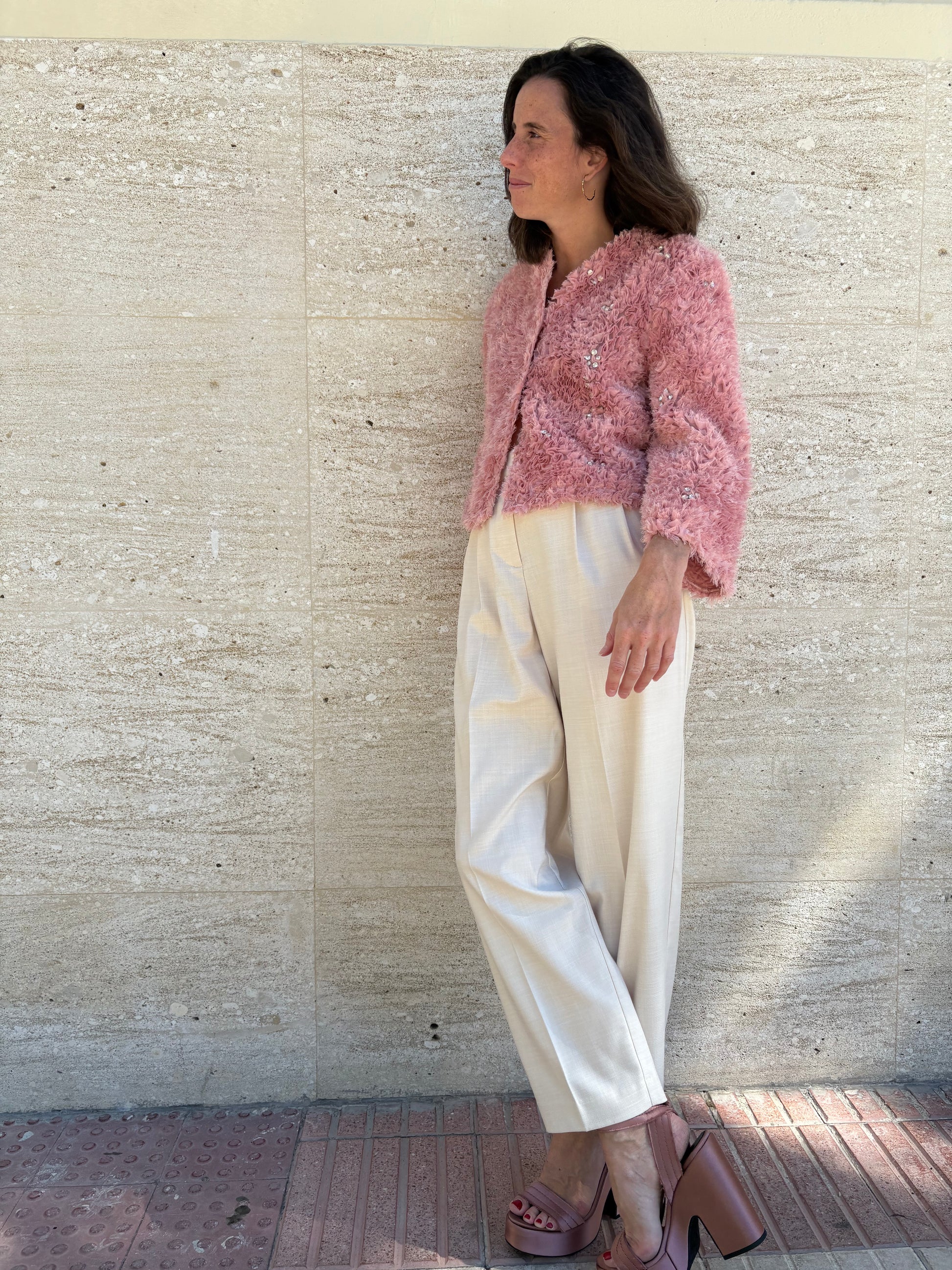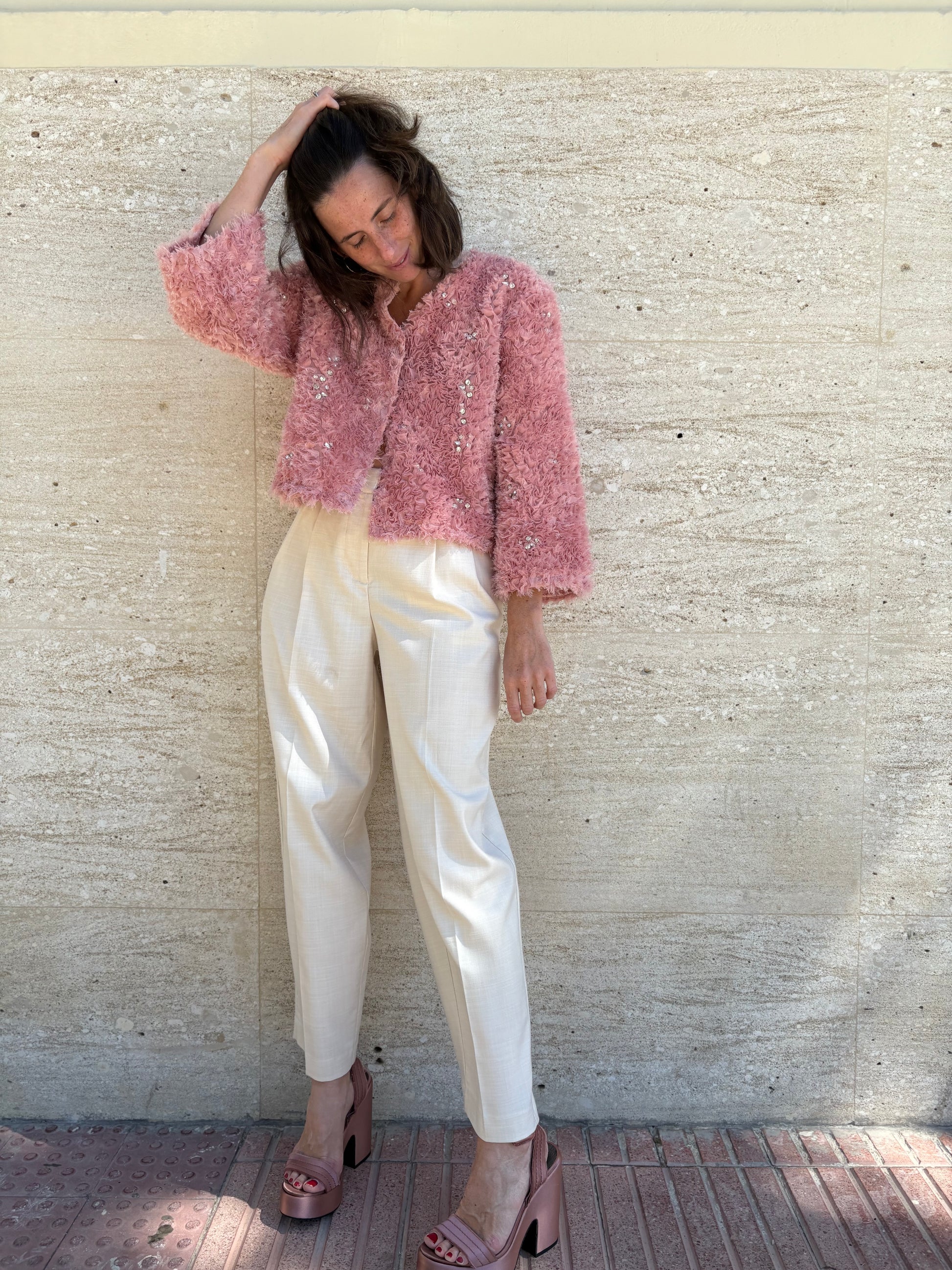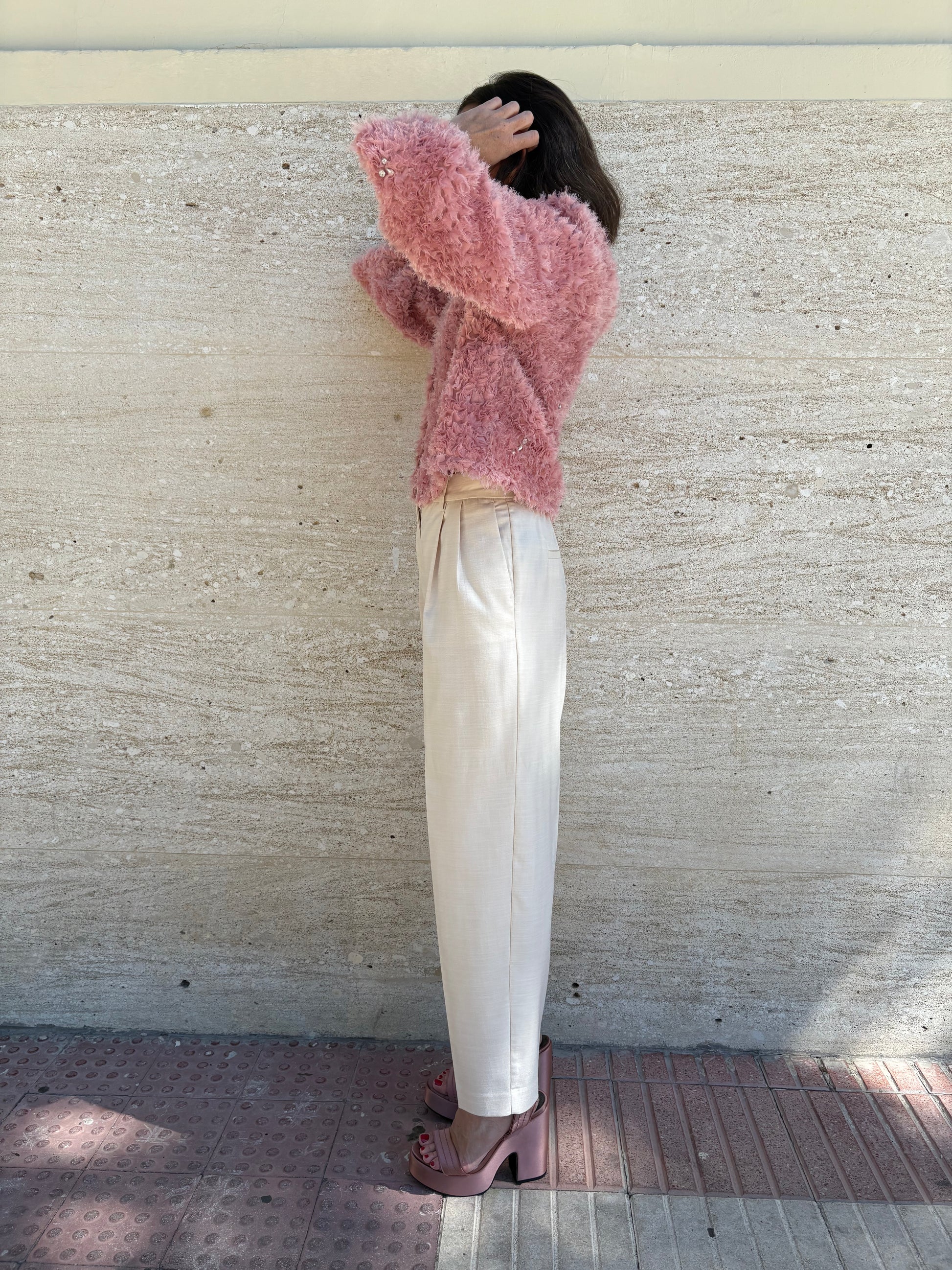 Pale pink satin platform sandal