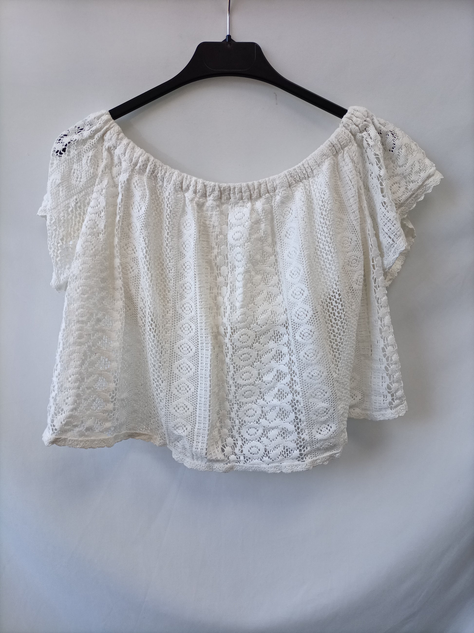 Oysho. M. White lace top. Elastic boat neck. Length 43 cm.
