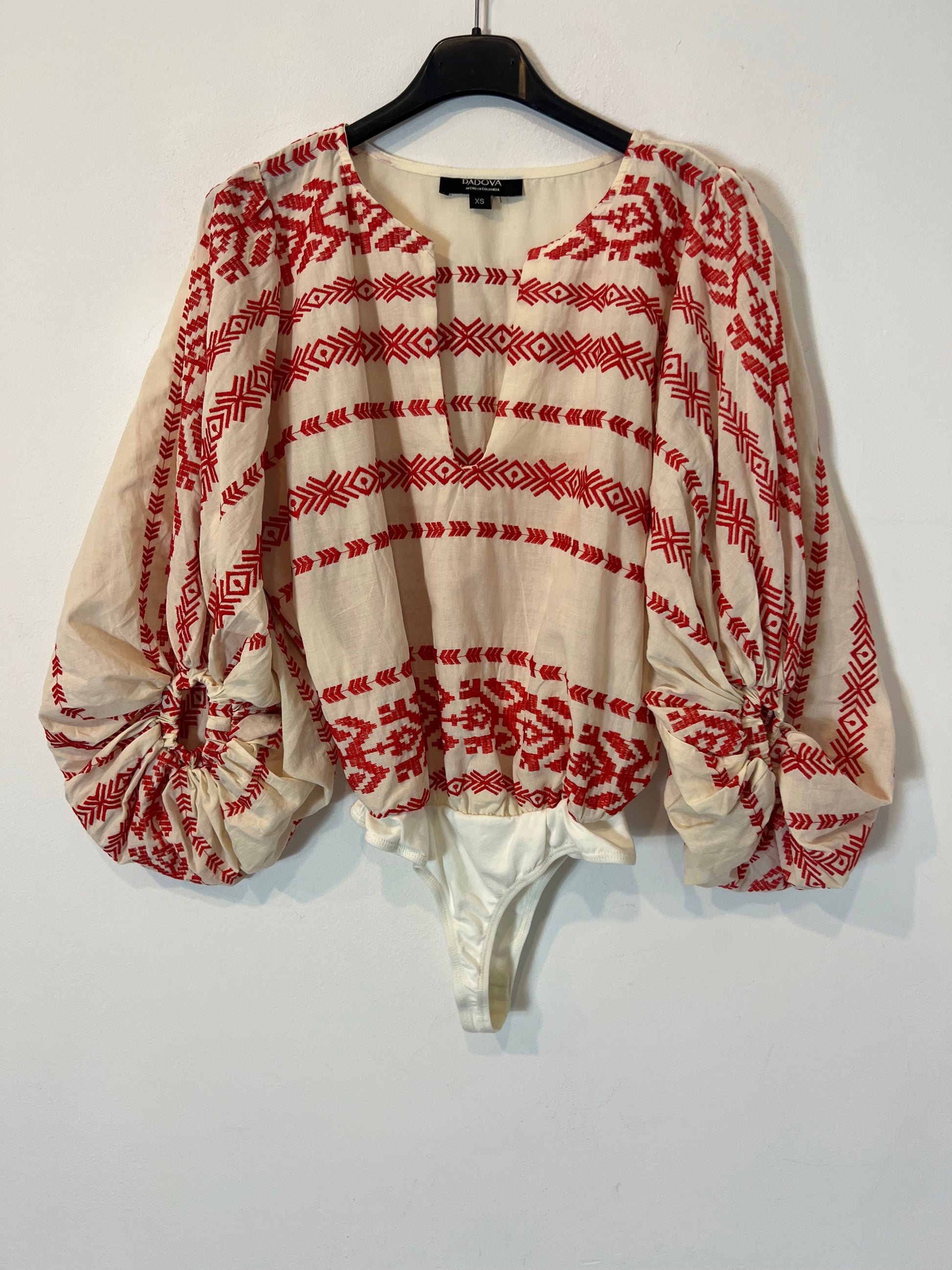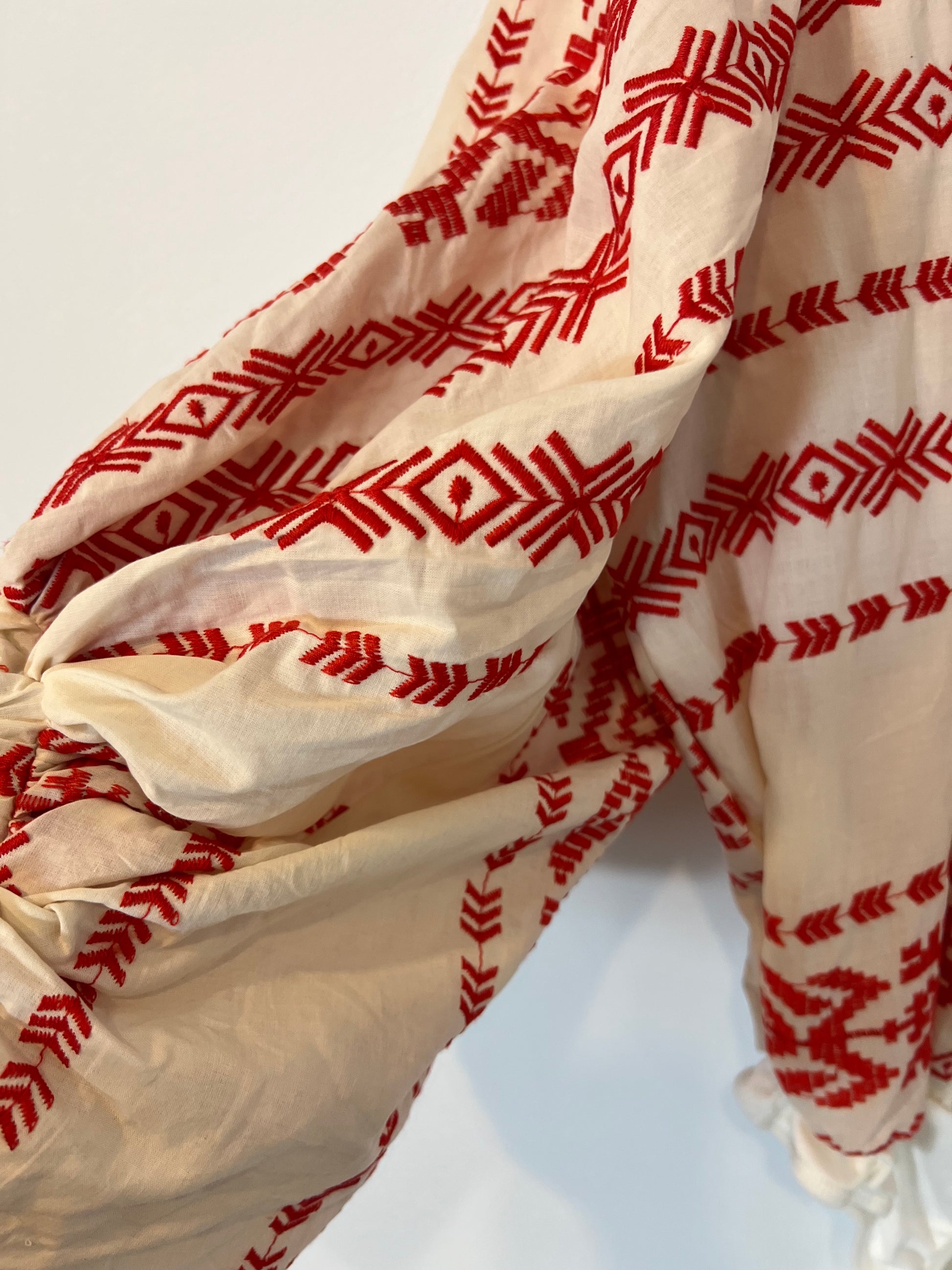 PADOVA. Red embroidered puff-sleeve top. XS