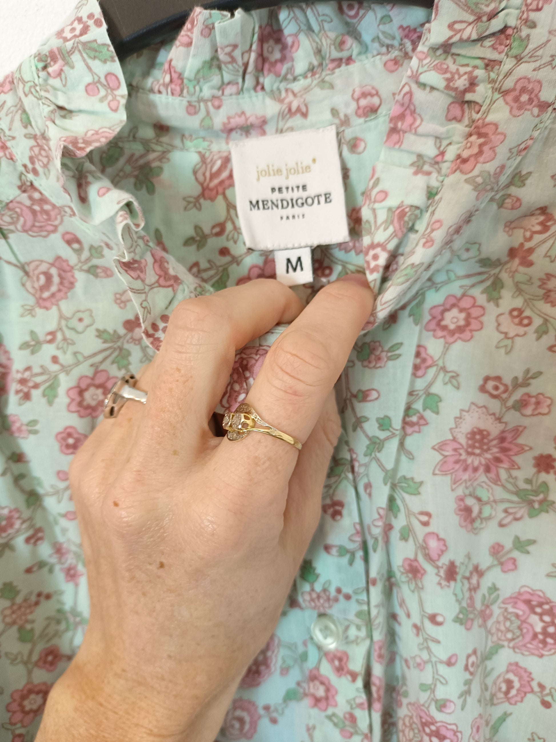 PETITE MENDIGOTE. Blus azul con flores T.m