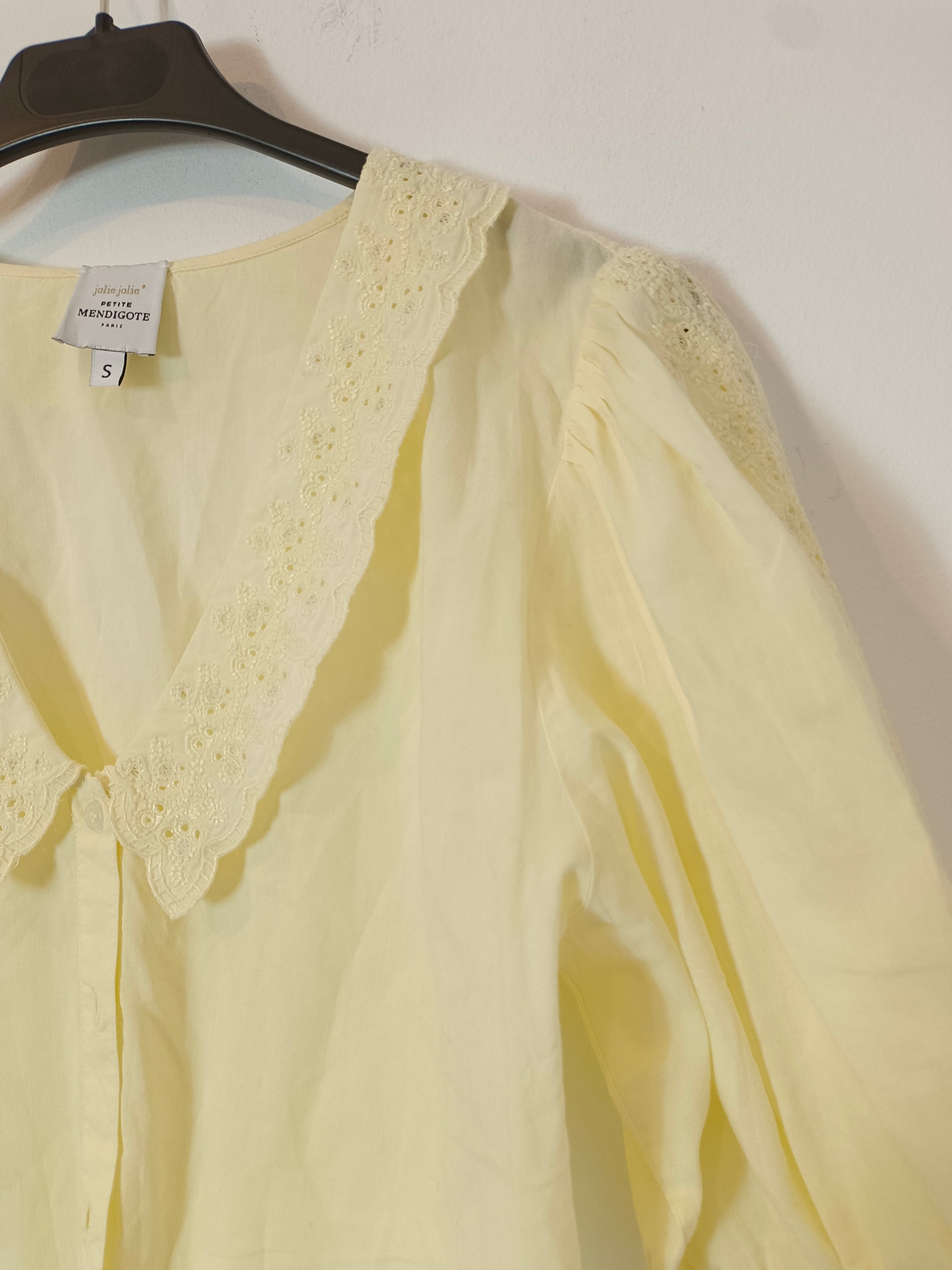 PETITE MENDIGOTE. Blusa amarilla cuello bordado T.s