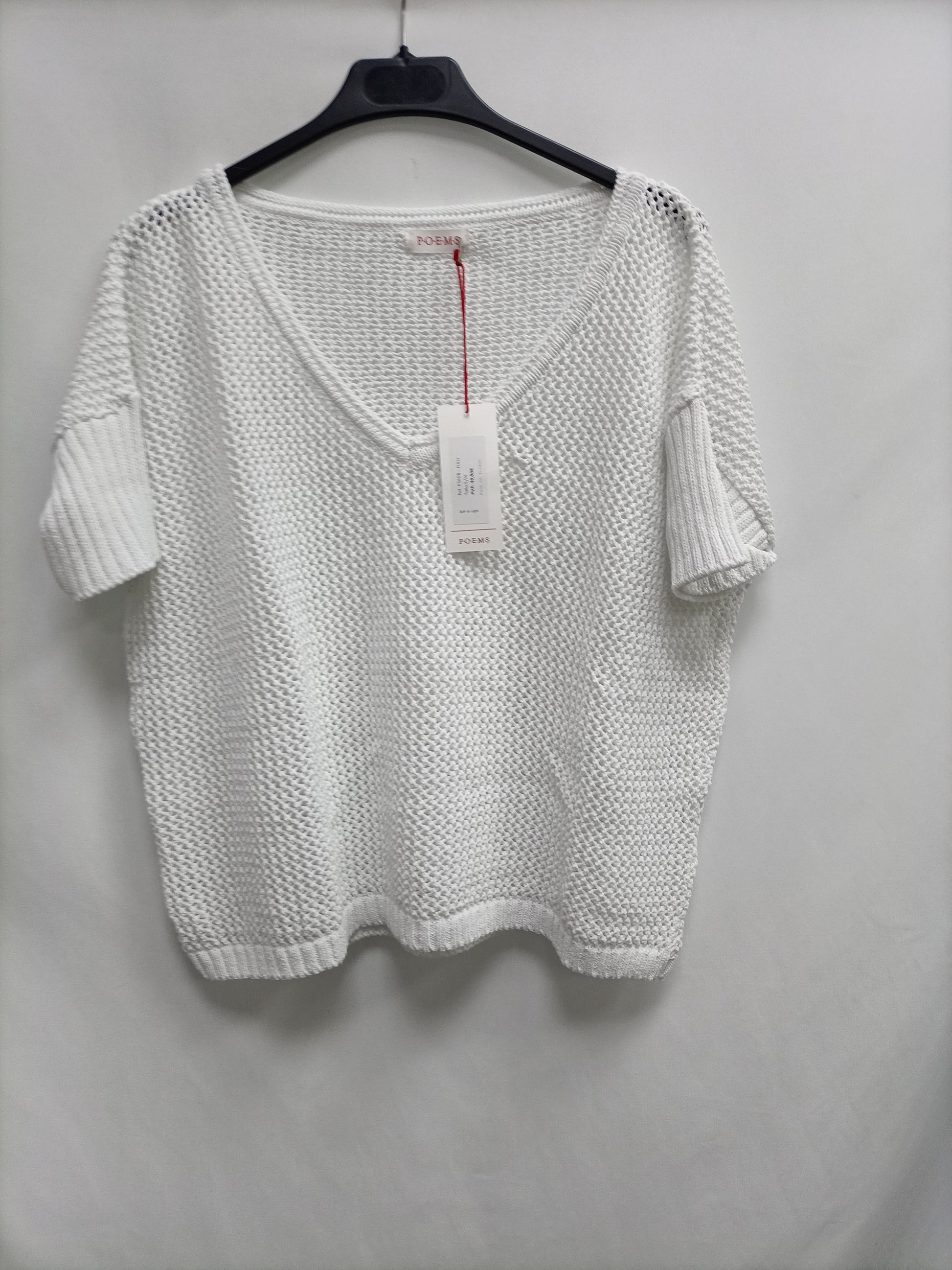 NEW WITH TAG. White open-knit sweater. Length 52 cm.