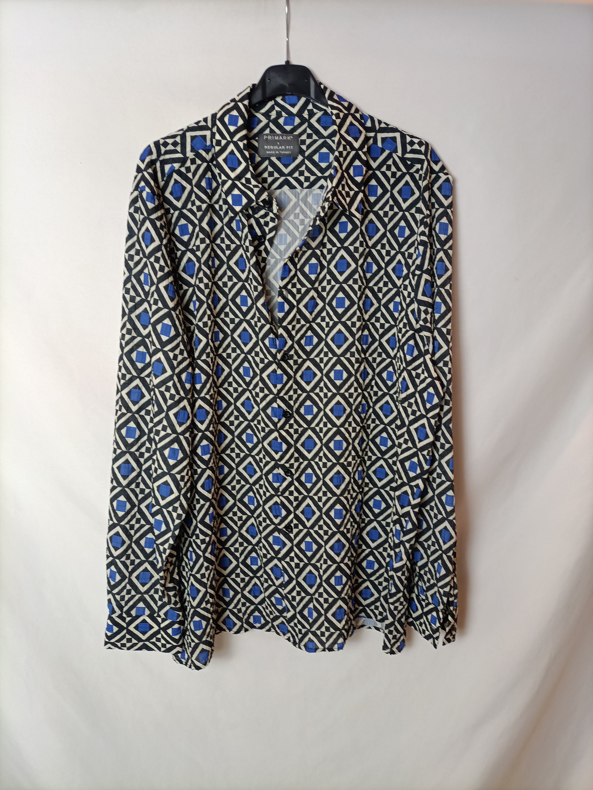 Flowing blouse made of pleated fabric and a geometric print. 83 cm long.