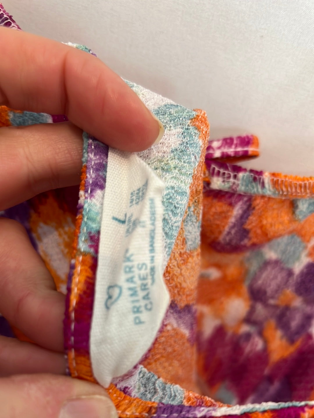Floral short jumpsuit with adjustable straps. 80cm long, 50cm from armpit to armpit.