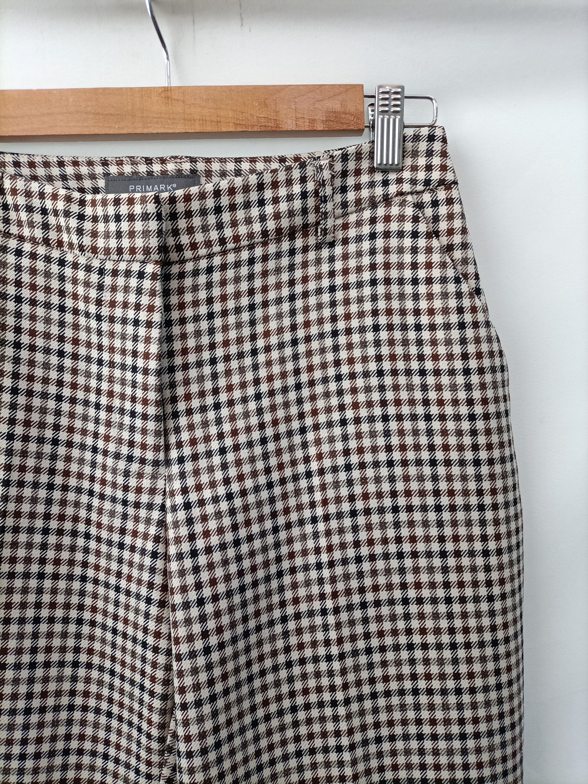 Straight-cut dress pants with a brown houndstooth print. Waist: 36 cm, length: 92 cm.