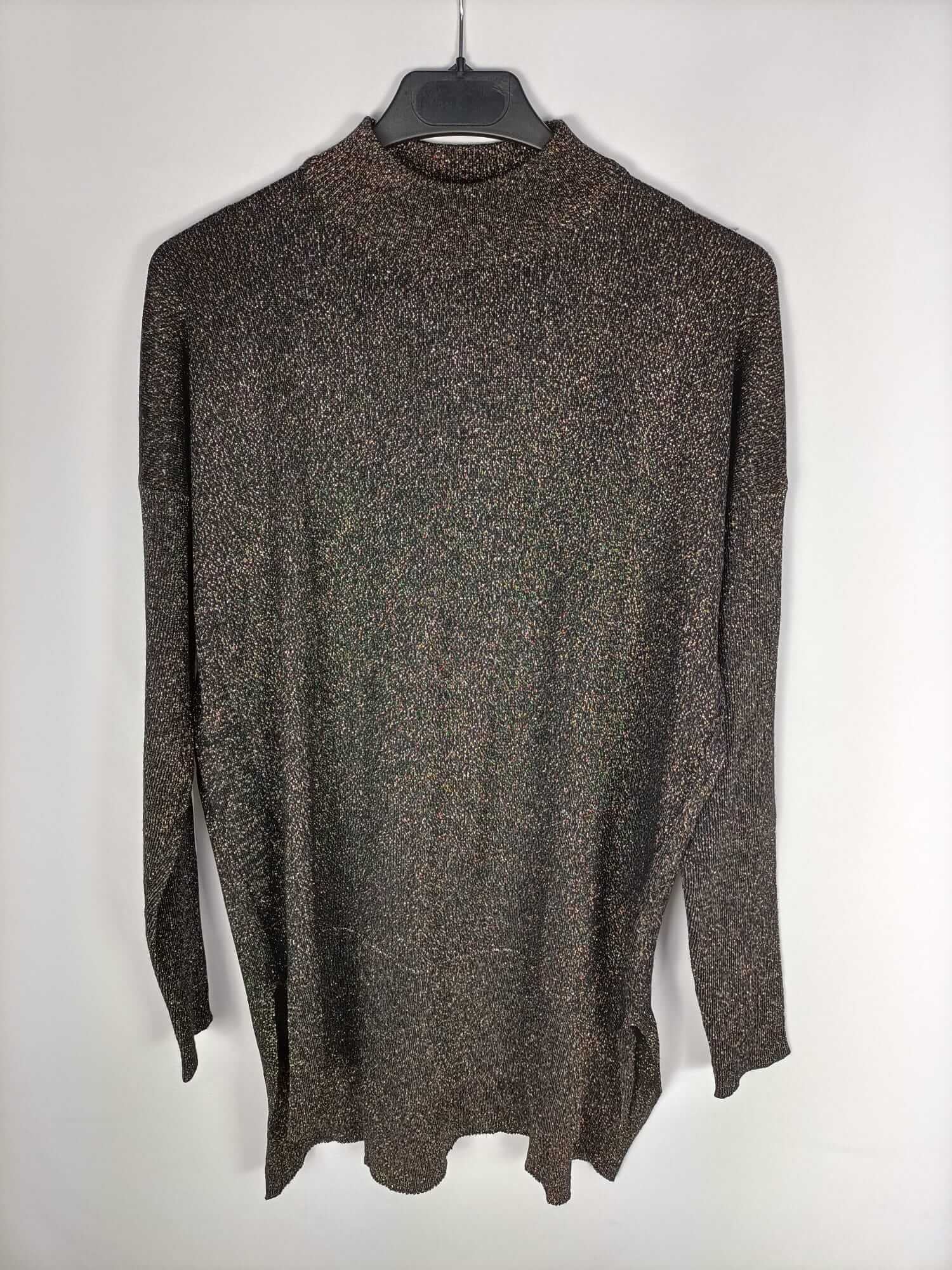 Primark. Black sweater with ochre threads. Perkins collar. Elastic and long. Length 78 cm.