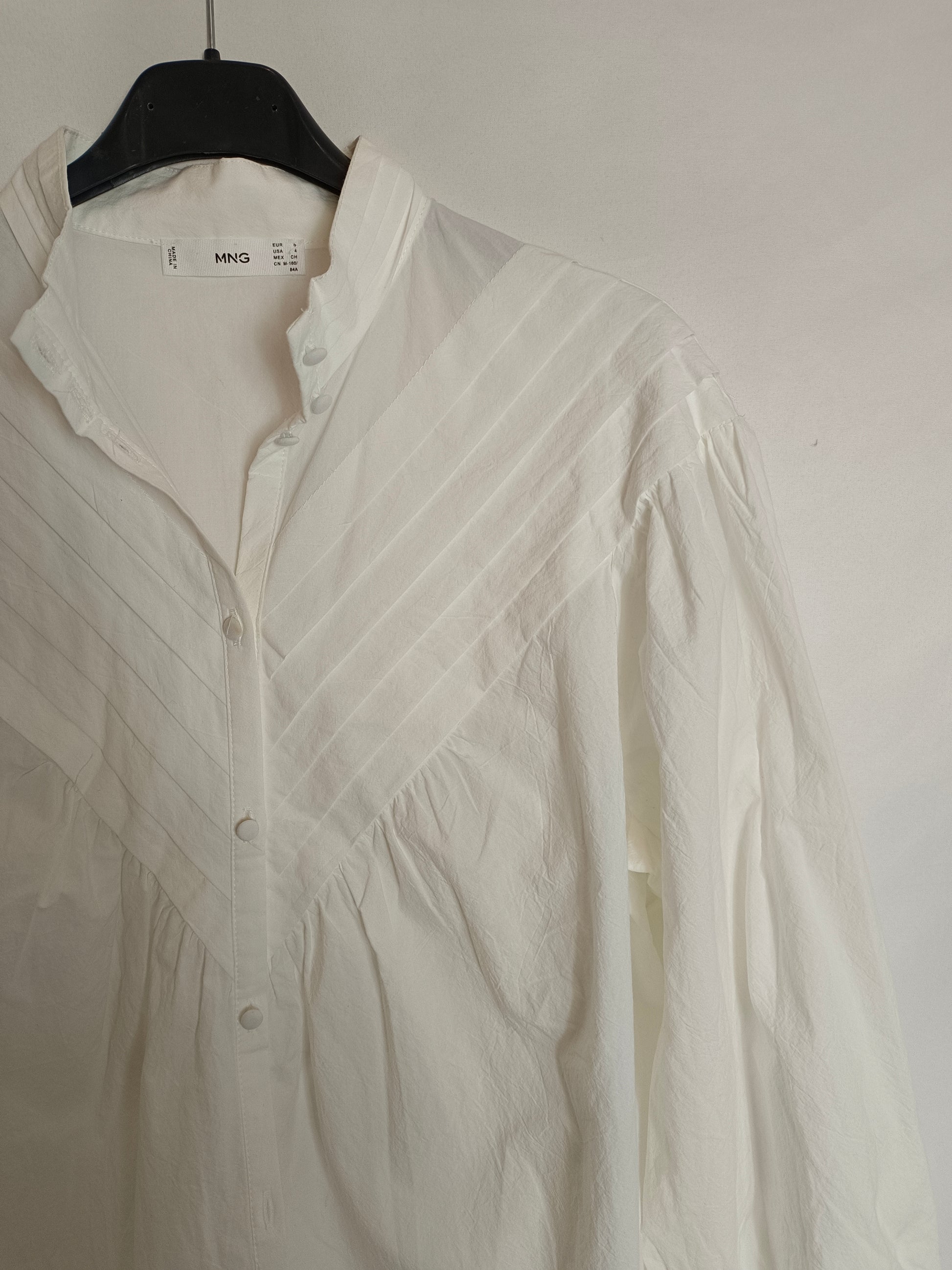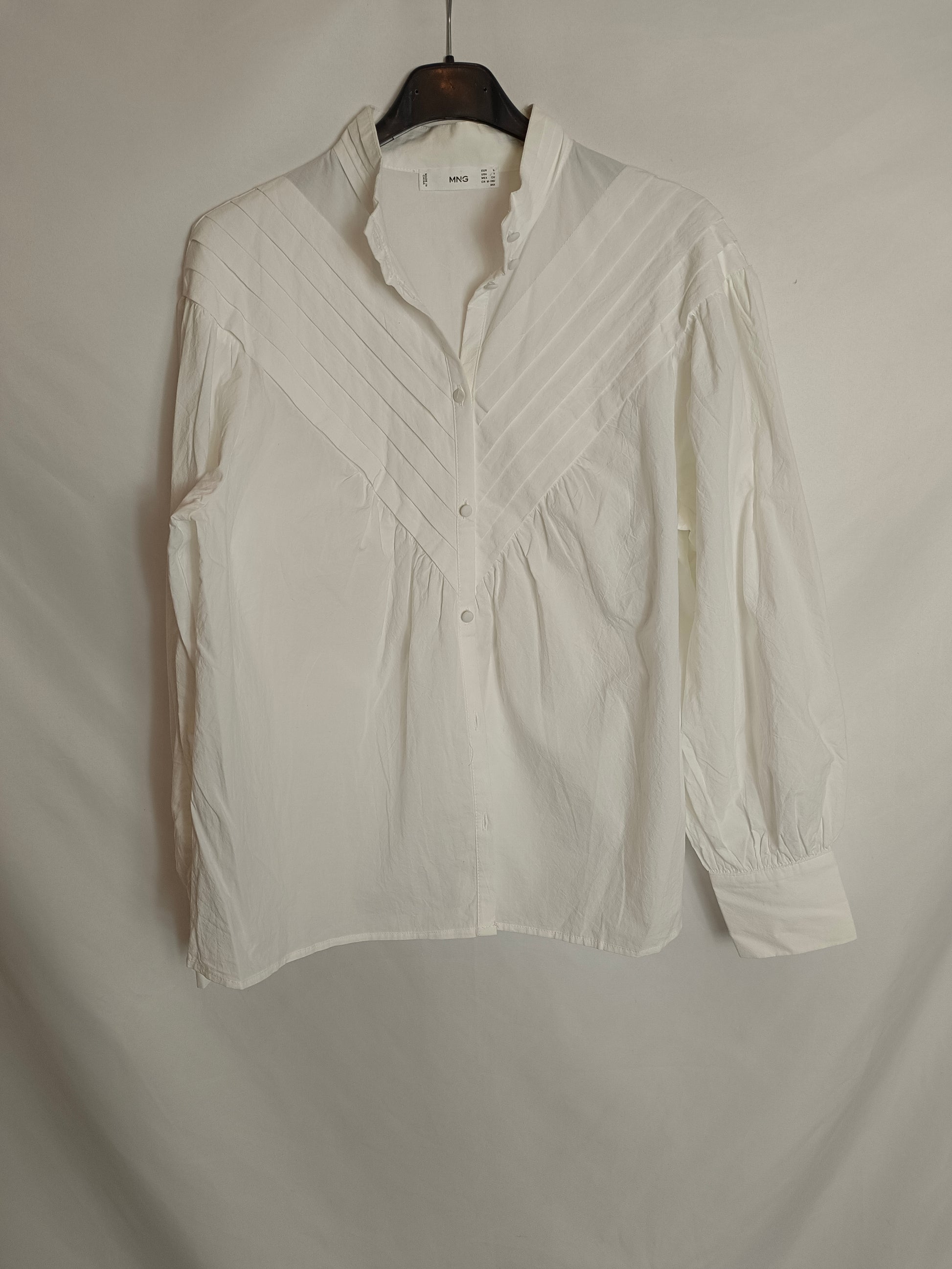 MANGO. Blusa blanca crudo plisado T.s