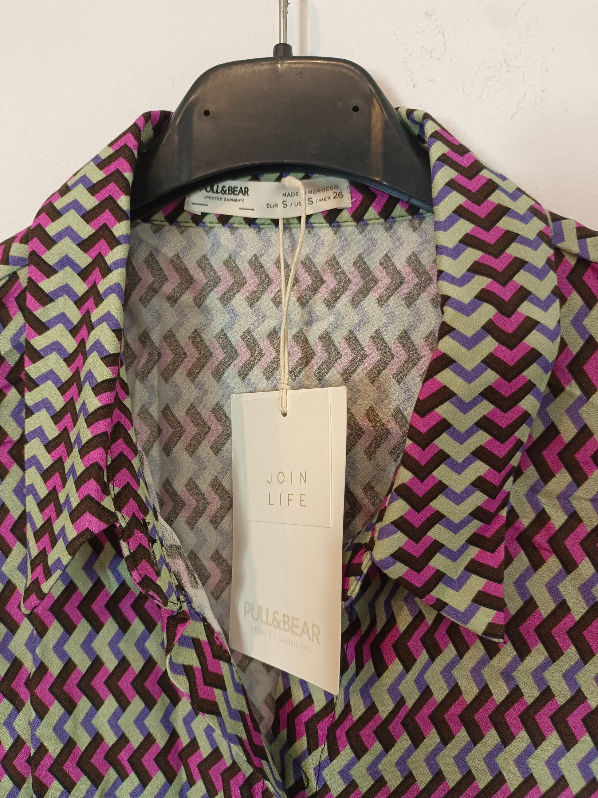 NEW WITH TAG. Flowy blouse with a colorful zigzag print.