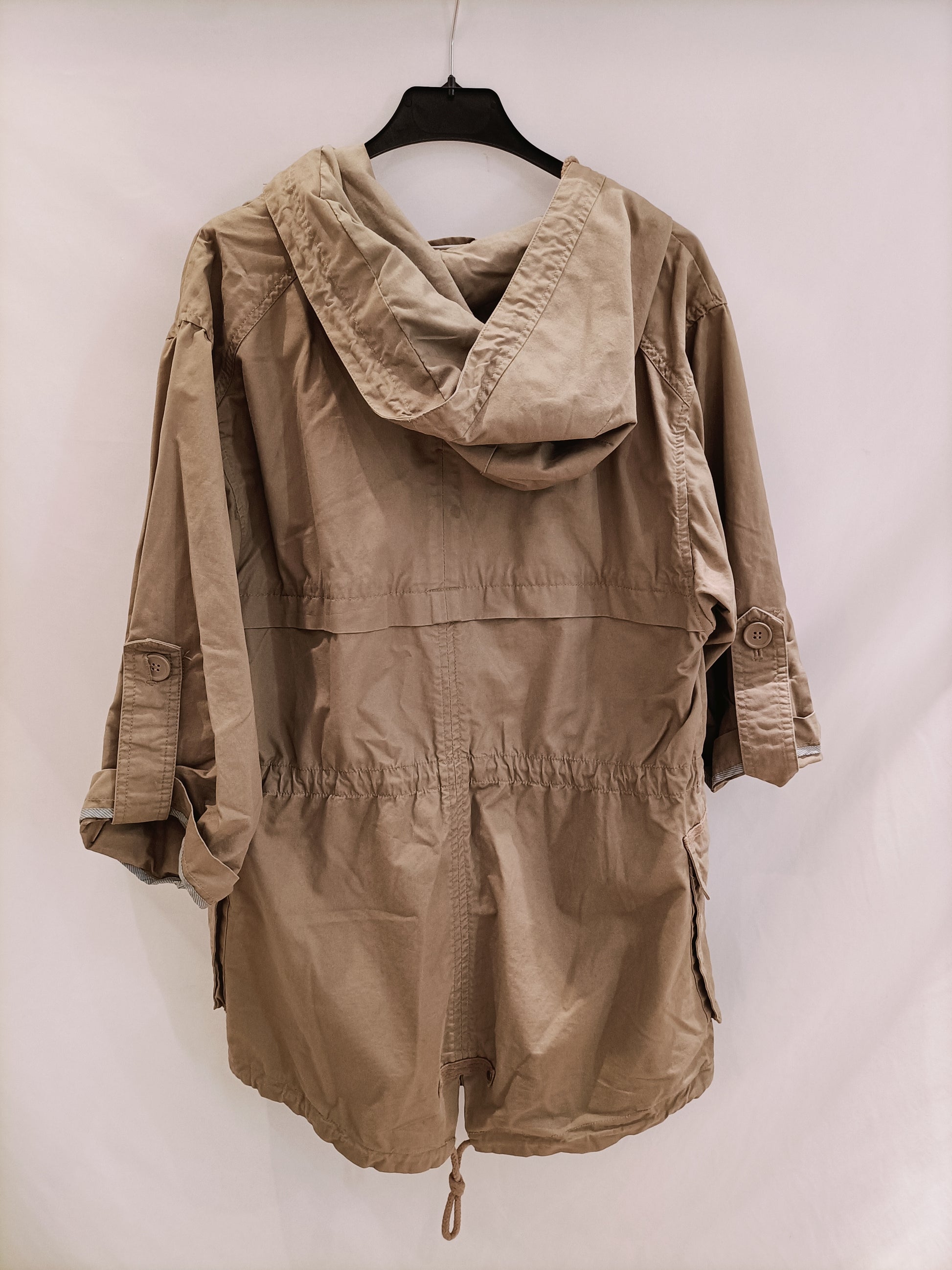 Beige thin parka with hood and zipper. From armpit to armpit cm length cm
