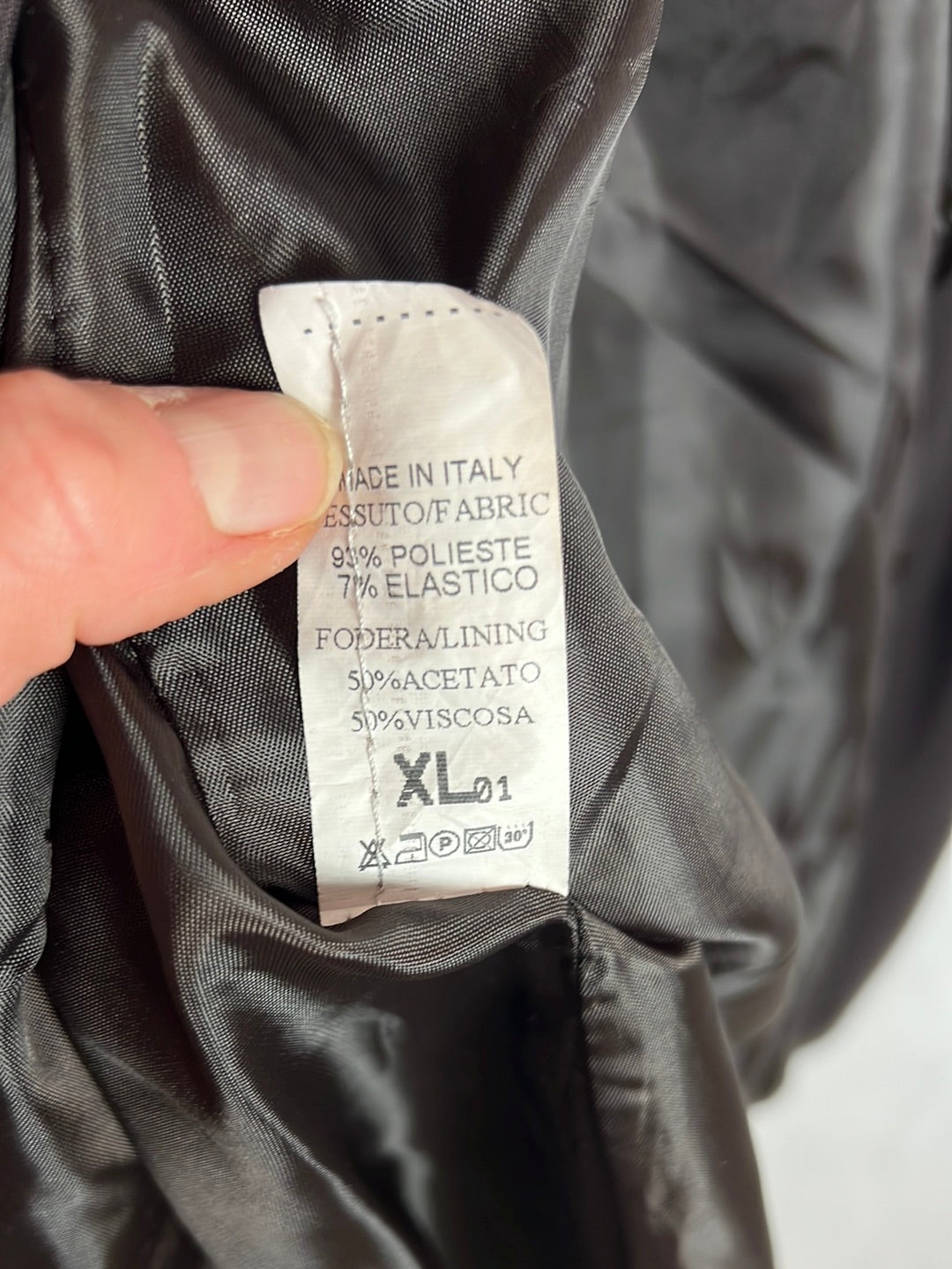 Total look: brown stretch dress and jacket. Shoulders: 43 cm, armhole to armhole: 43 cm, length: 84 cm. Jacket: shoulders: 43 cm, with small shoulder pads.
