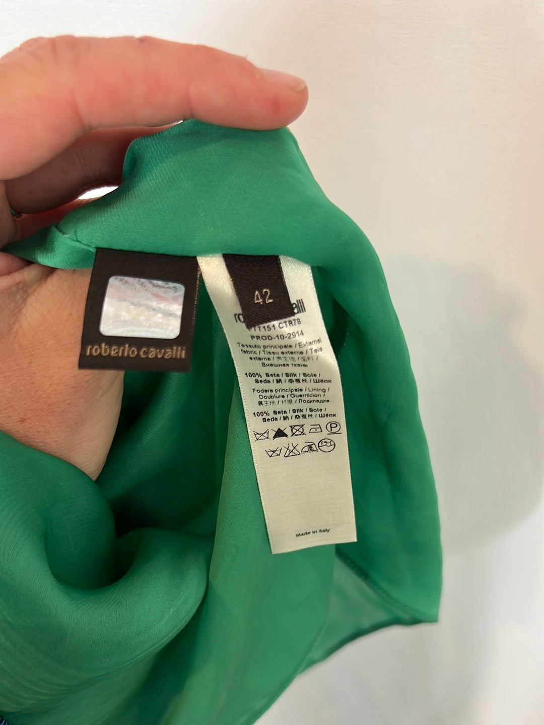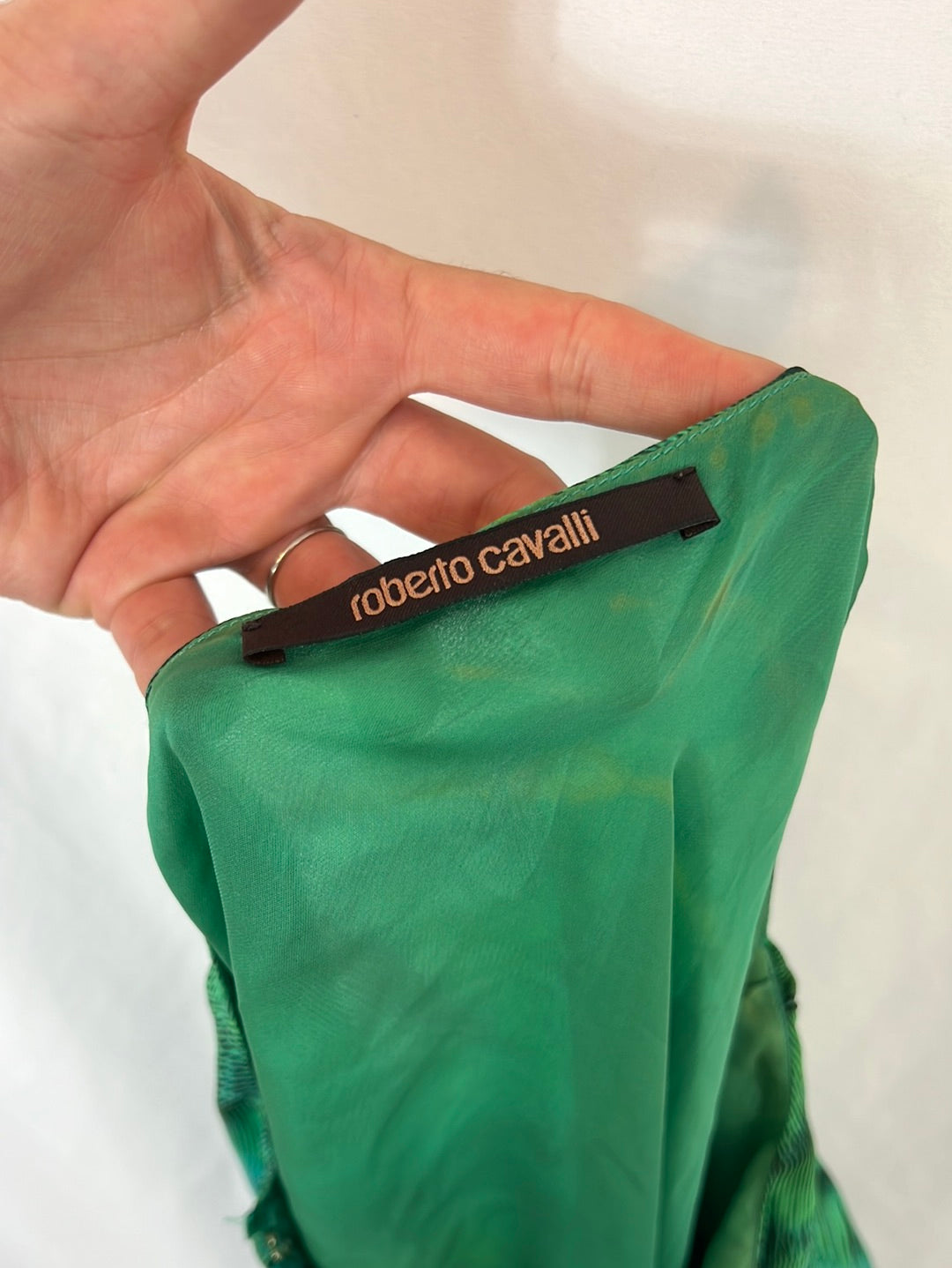 ROBERTO CAVALLI. Asymmetrical silk short dress. Size 40