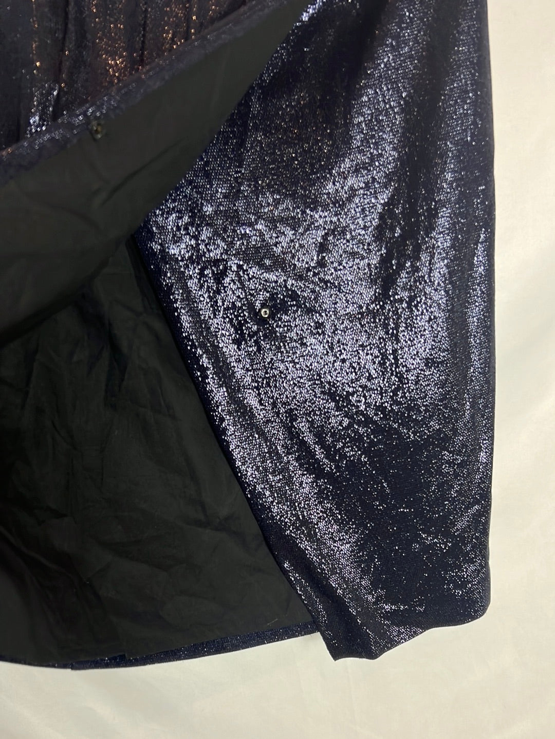 Wrap skirt with a shiny texture. Waist 38 cm, Length 56 cm, non-elastic.