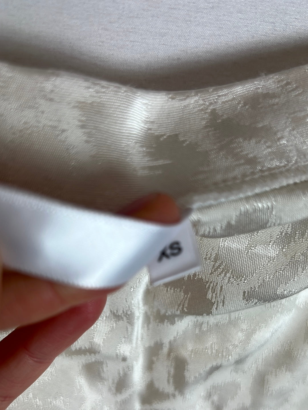 Off-white print midi skirt with opening. Waist 31cm, length 90cm. Inelastic
