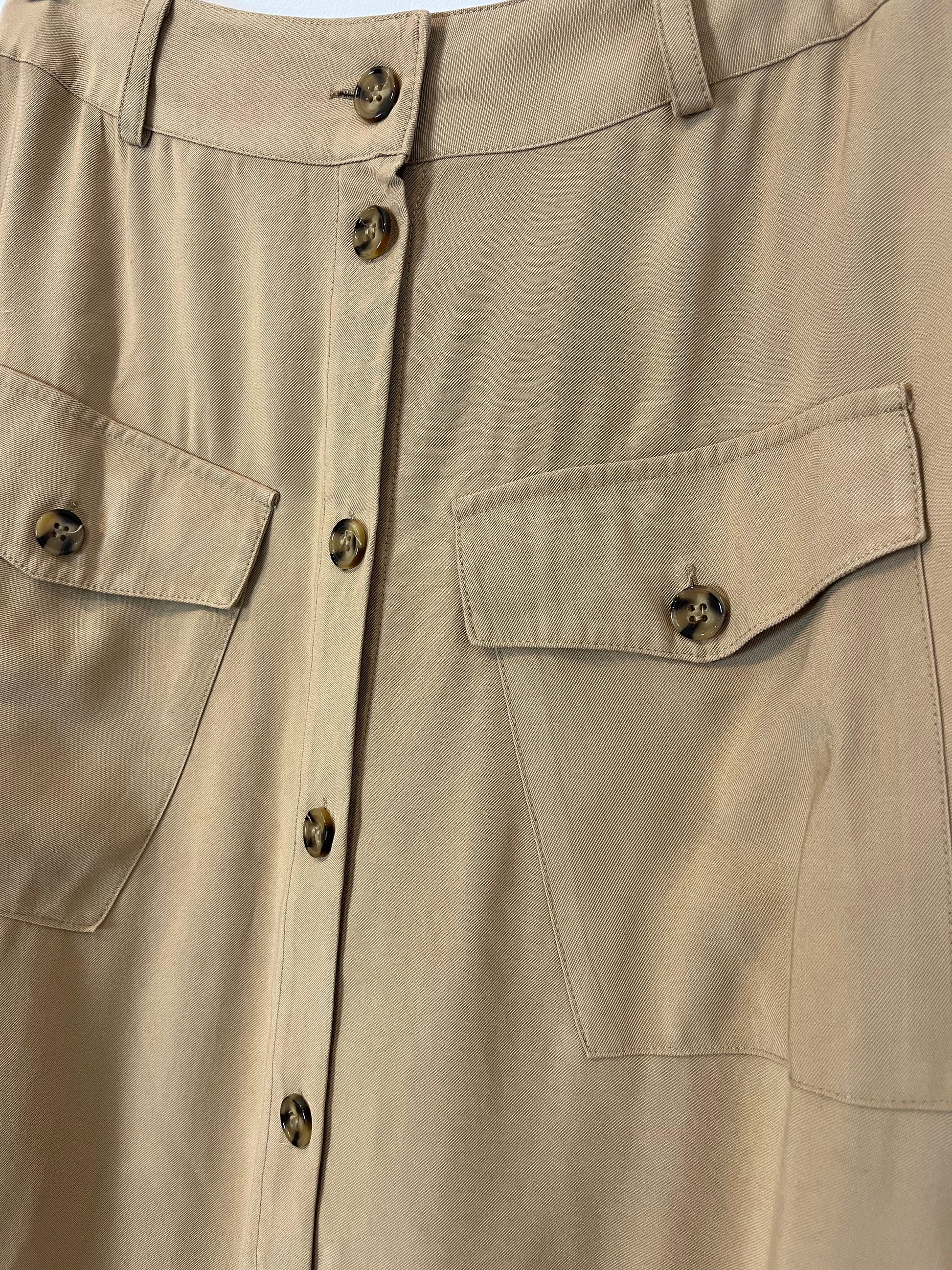 Beige buttoned midi skirt. Non-stretchy.