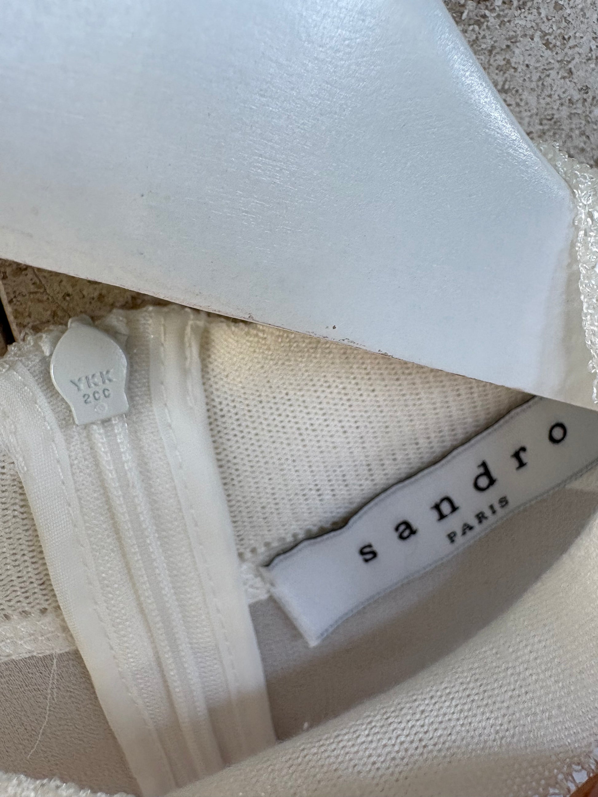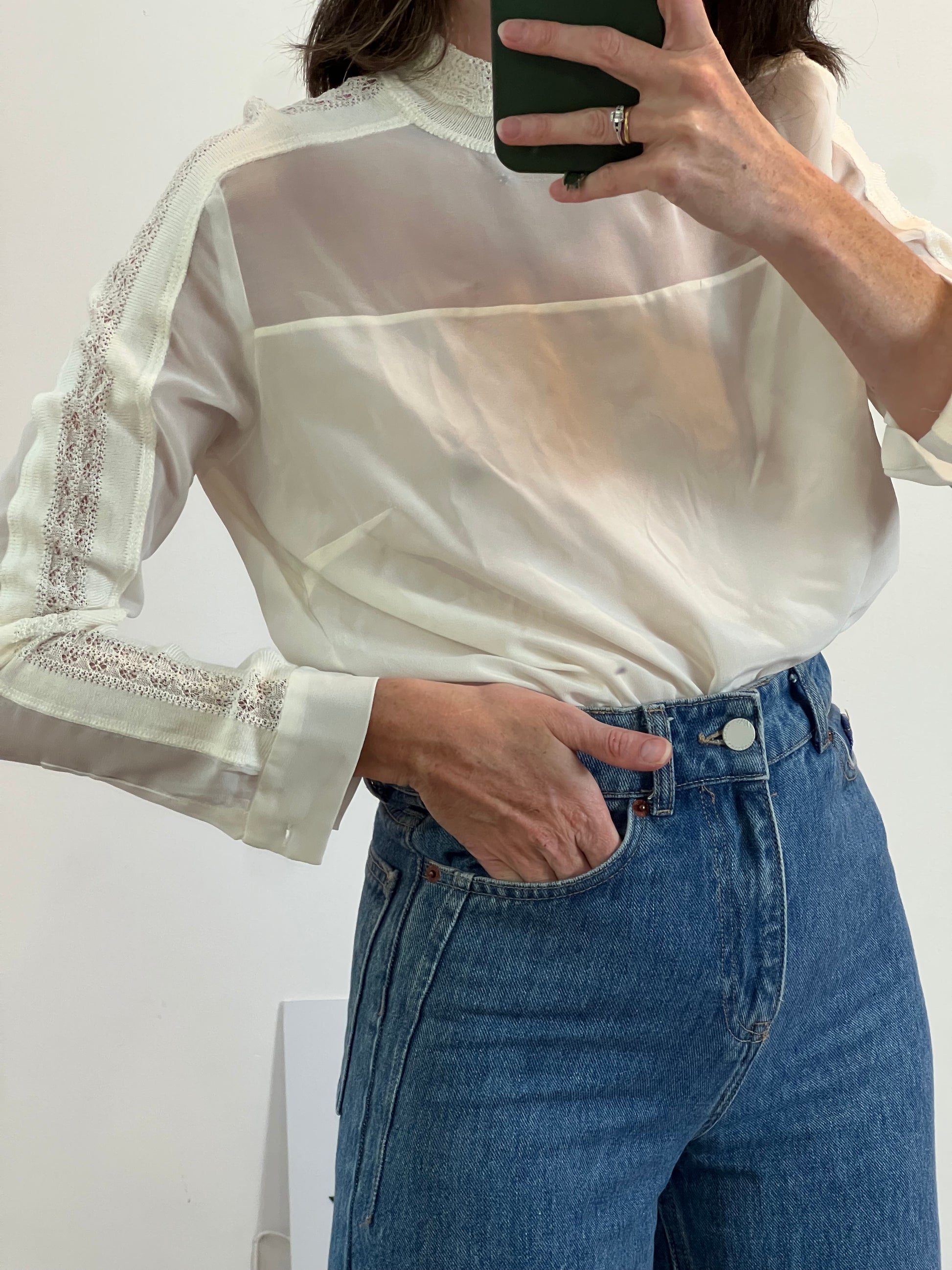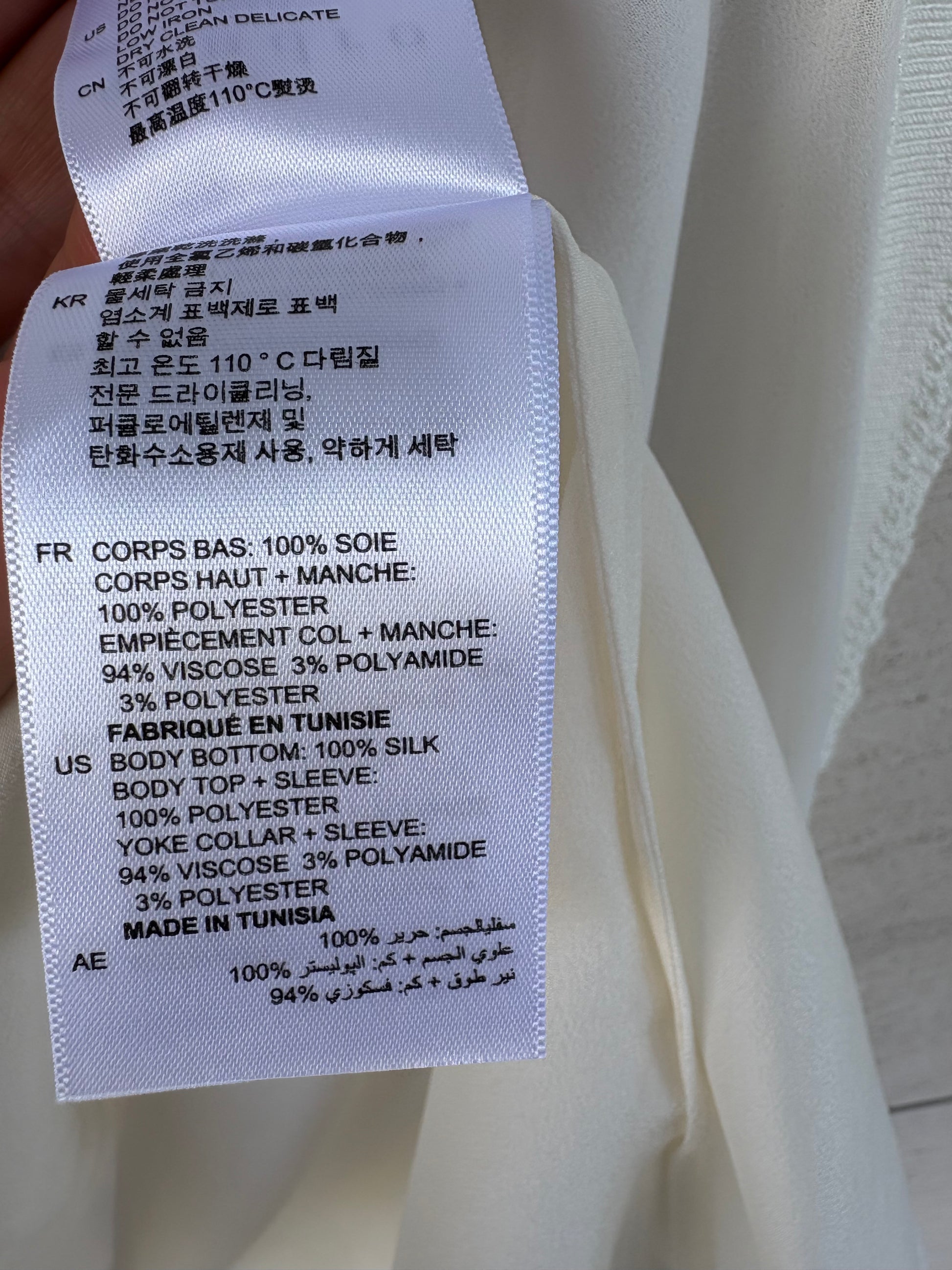 Blusa en blanco roto con seda y angas con hilo. No elástico. Espalda 49 cm, largo 61 cm