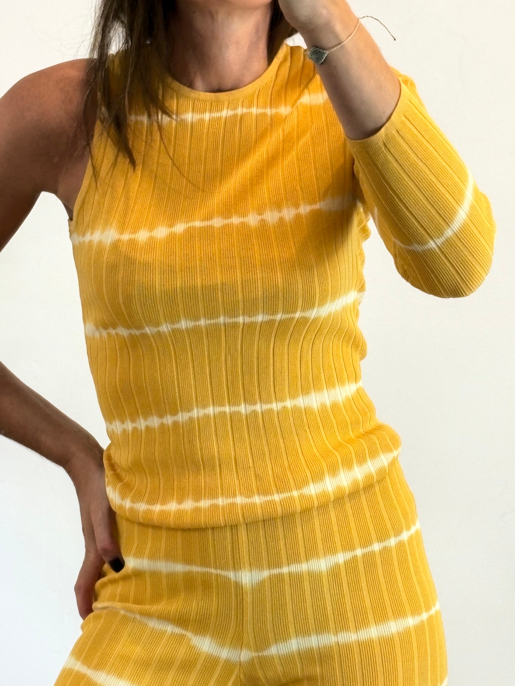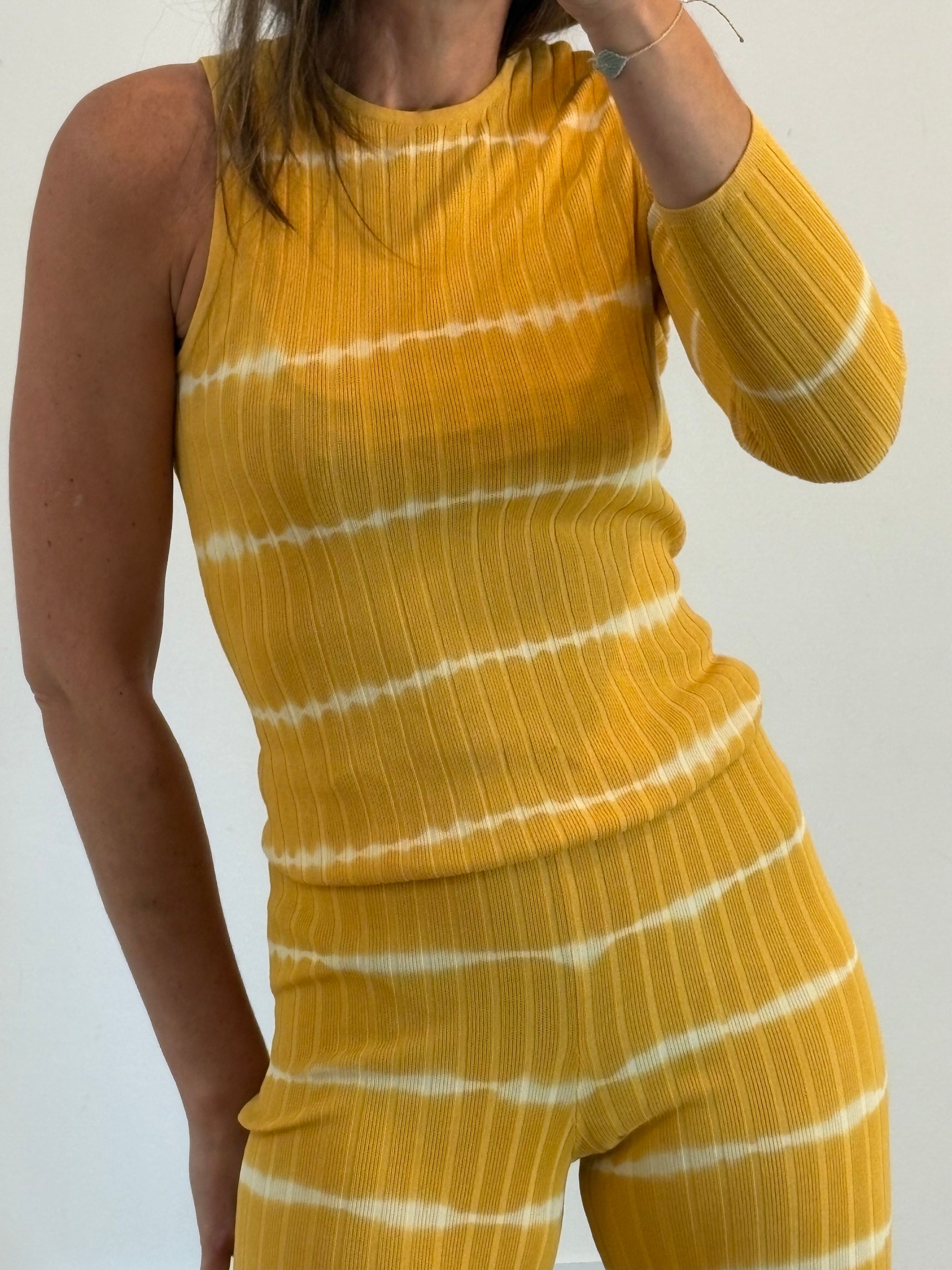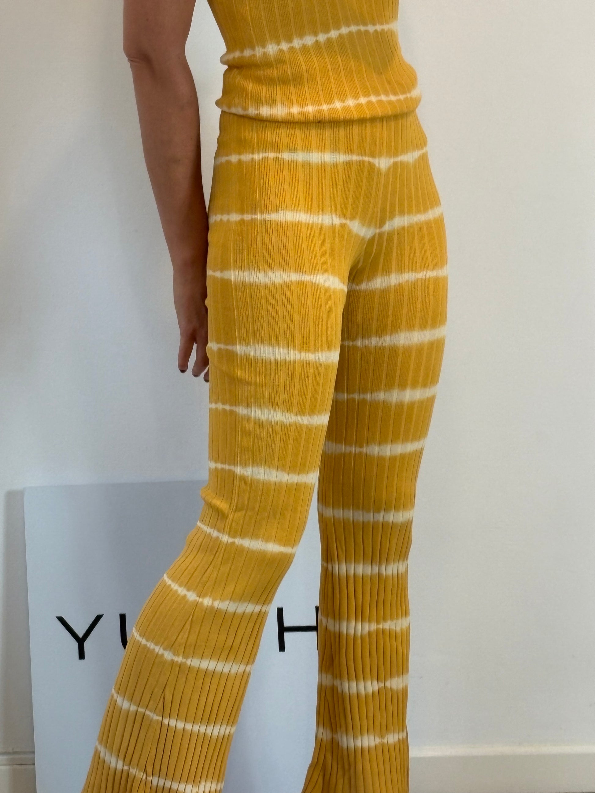 Mustard tie-dye ribbed total look. 36 M top pants.