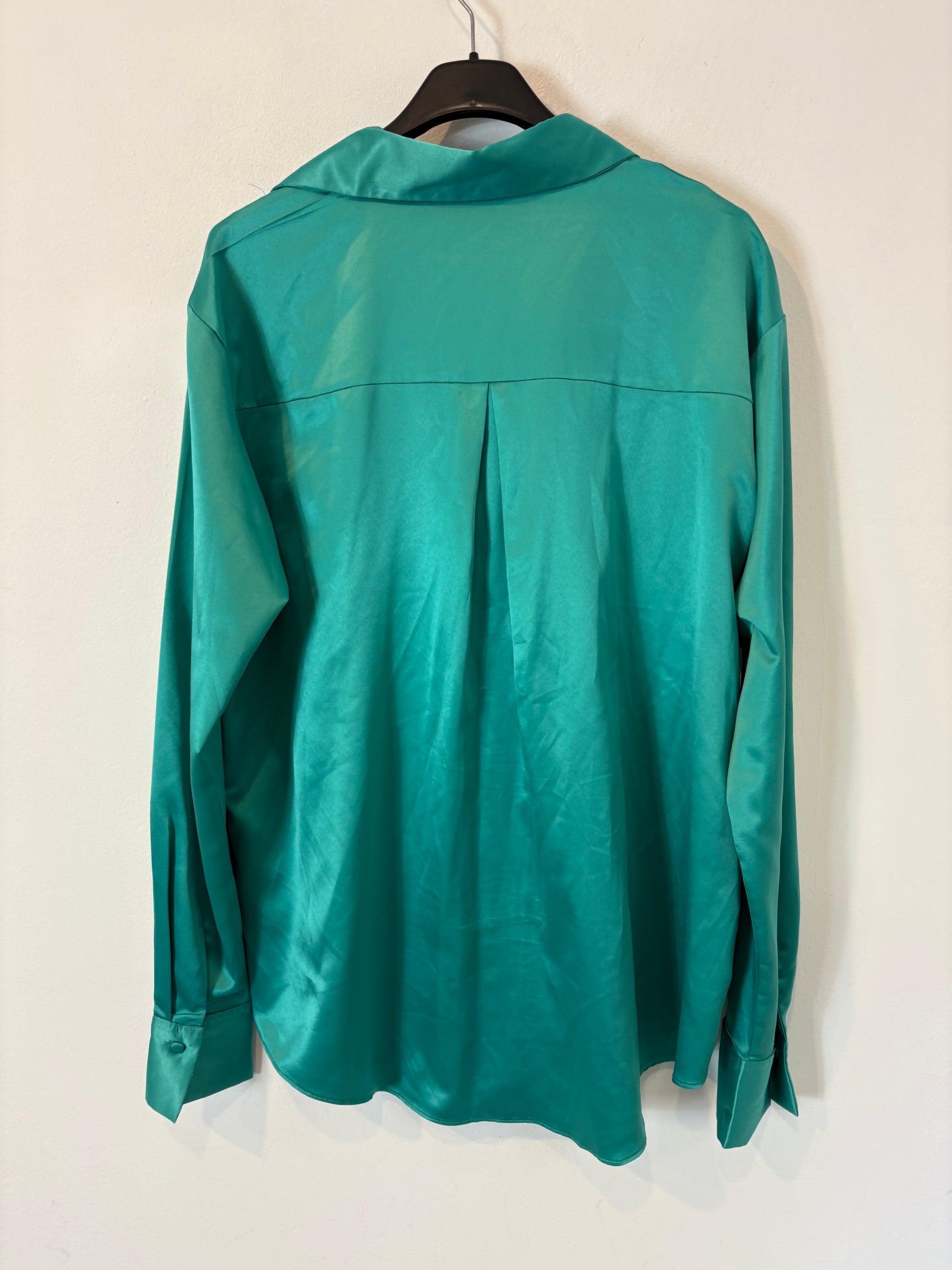 SANTANA DE MORA. Turquoise satin shirt. Size 36