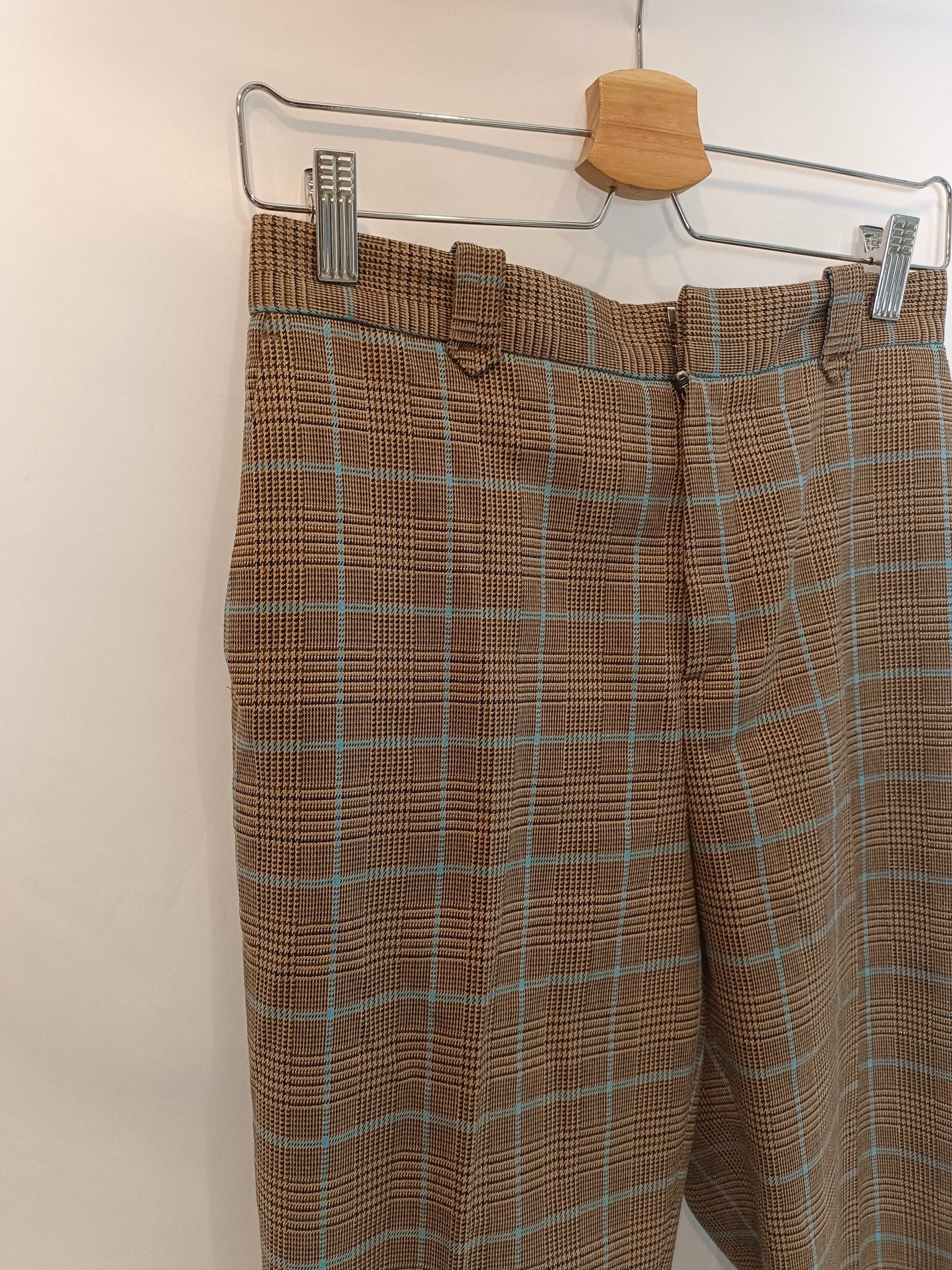 Earth-toned checked trousers with metallic thread detailing