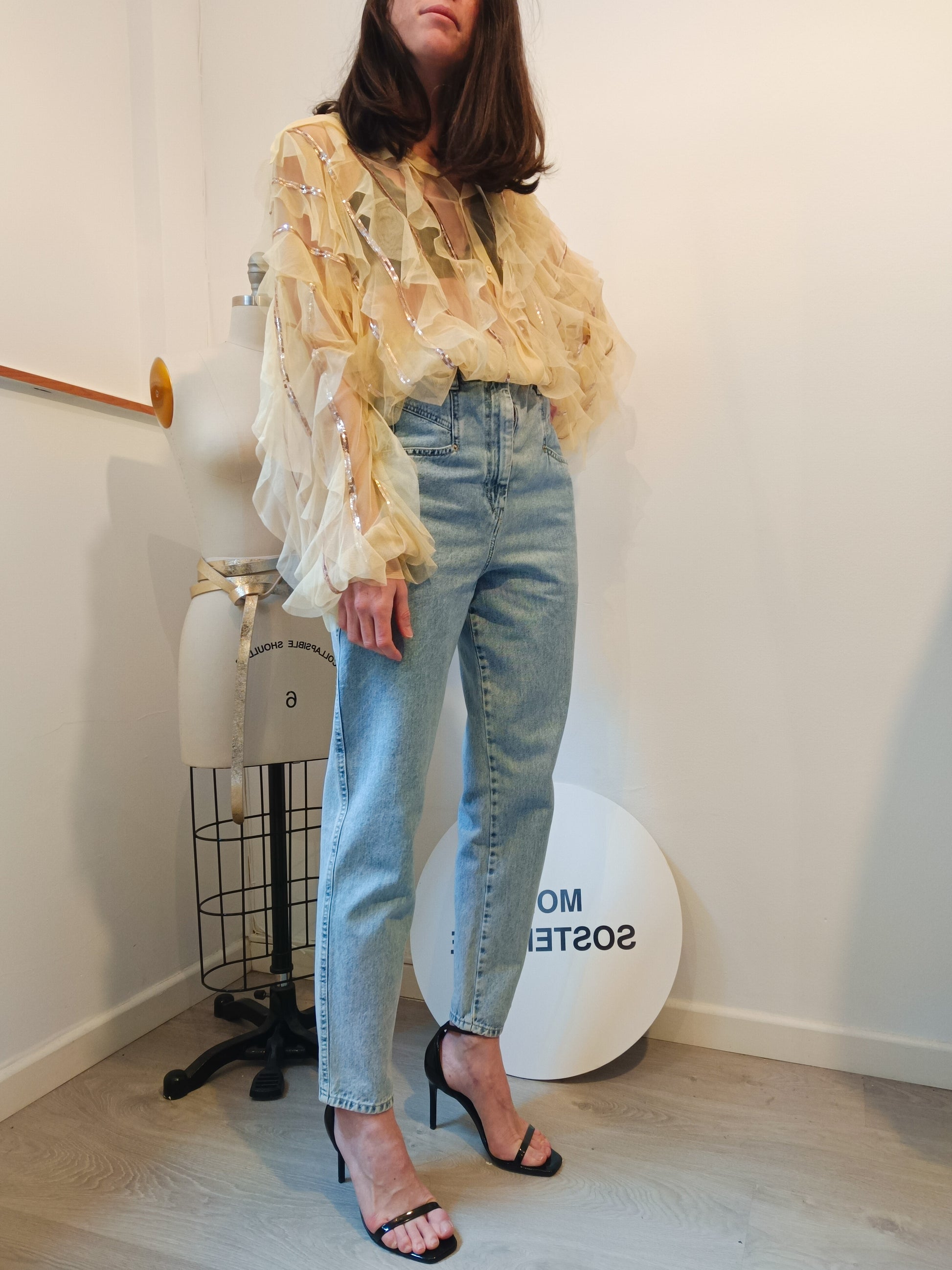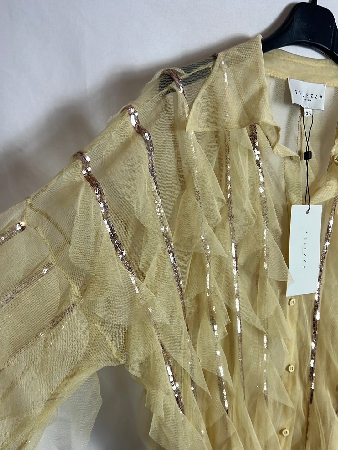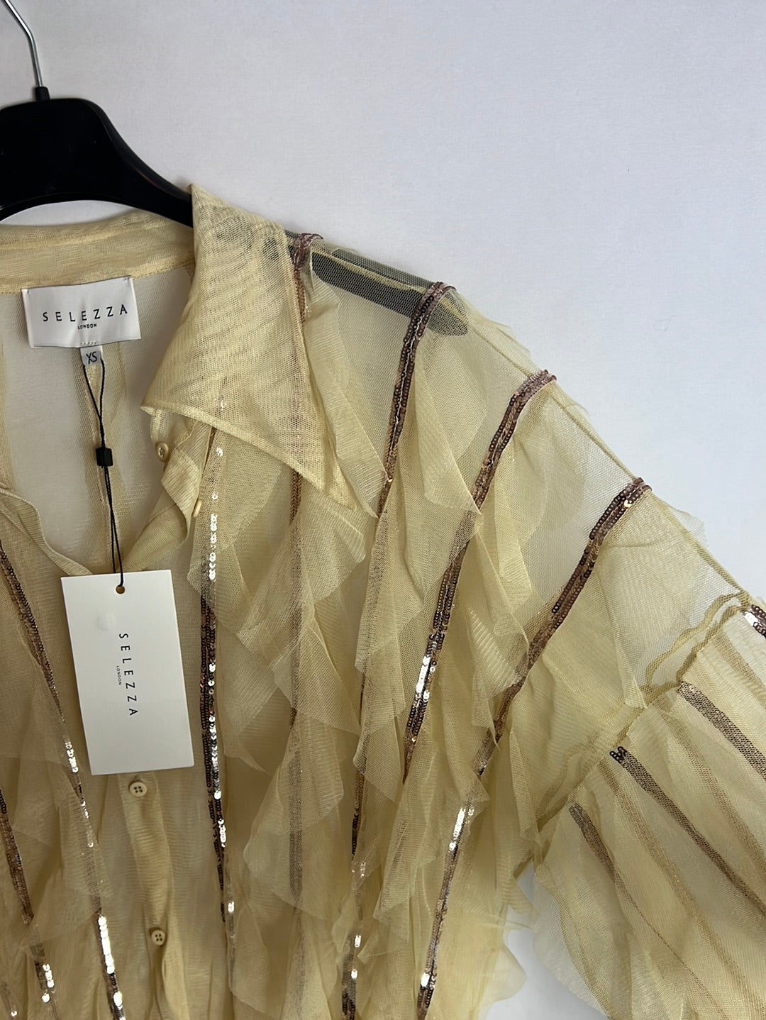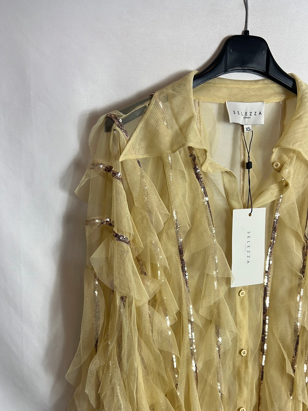 SELEZZA. Pastel sequin tulle blouse. T XS